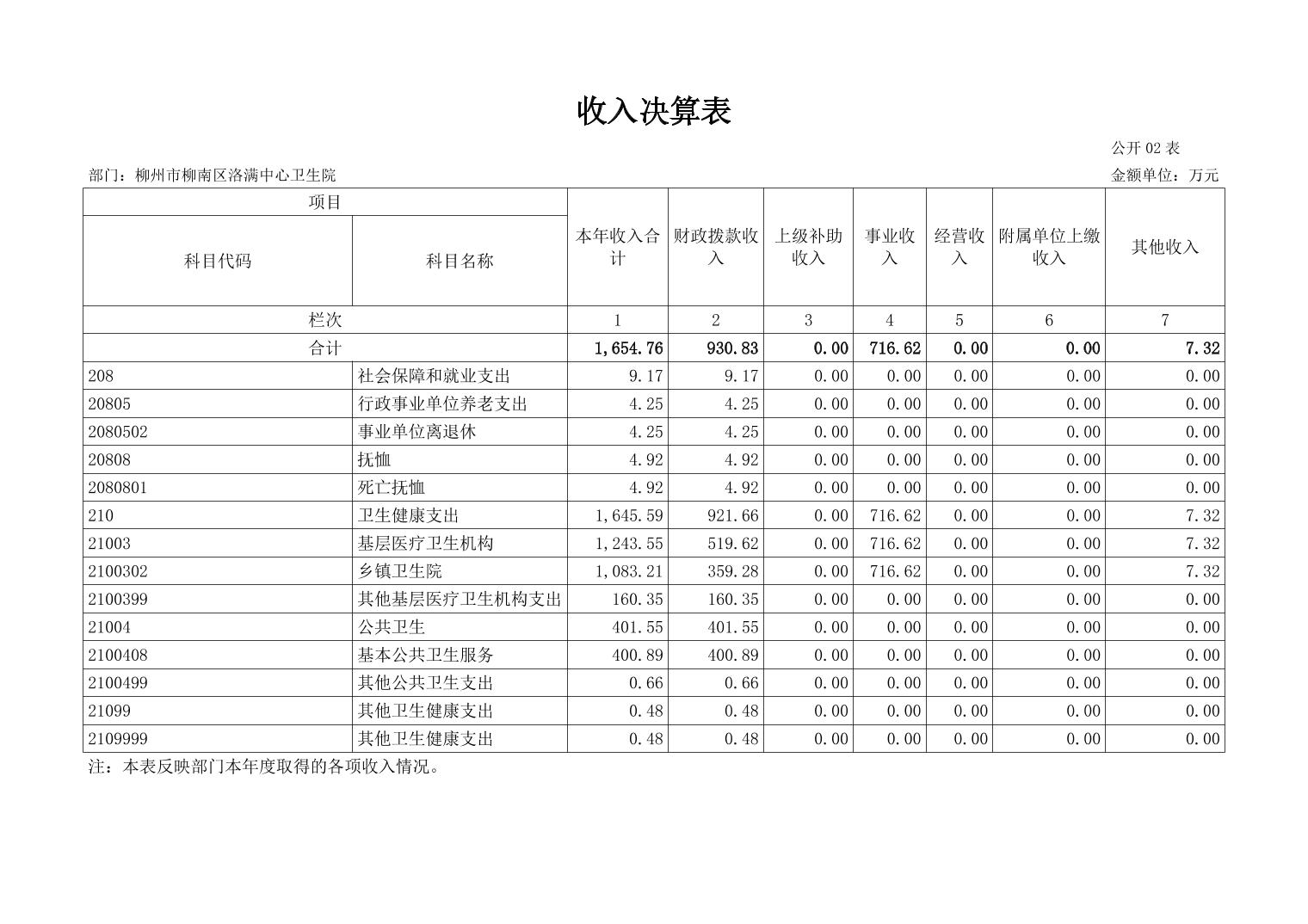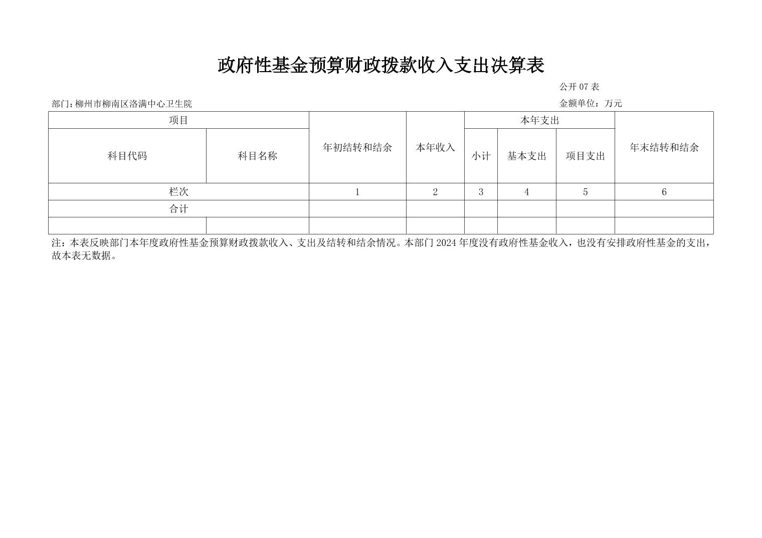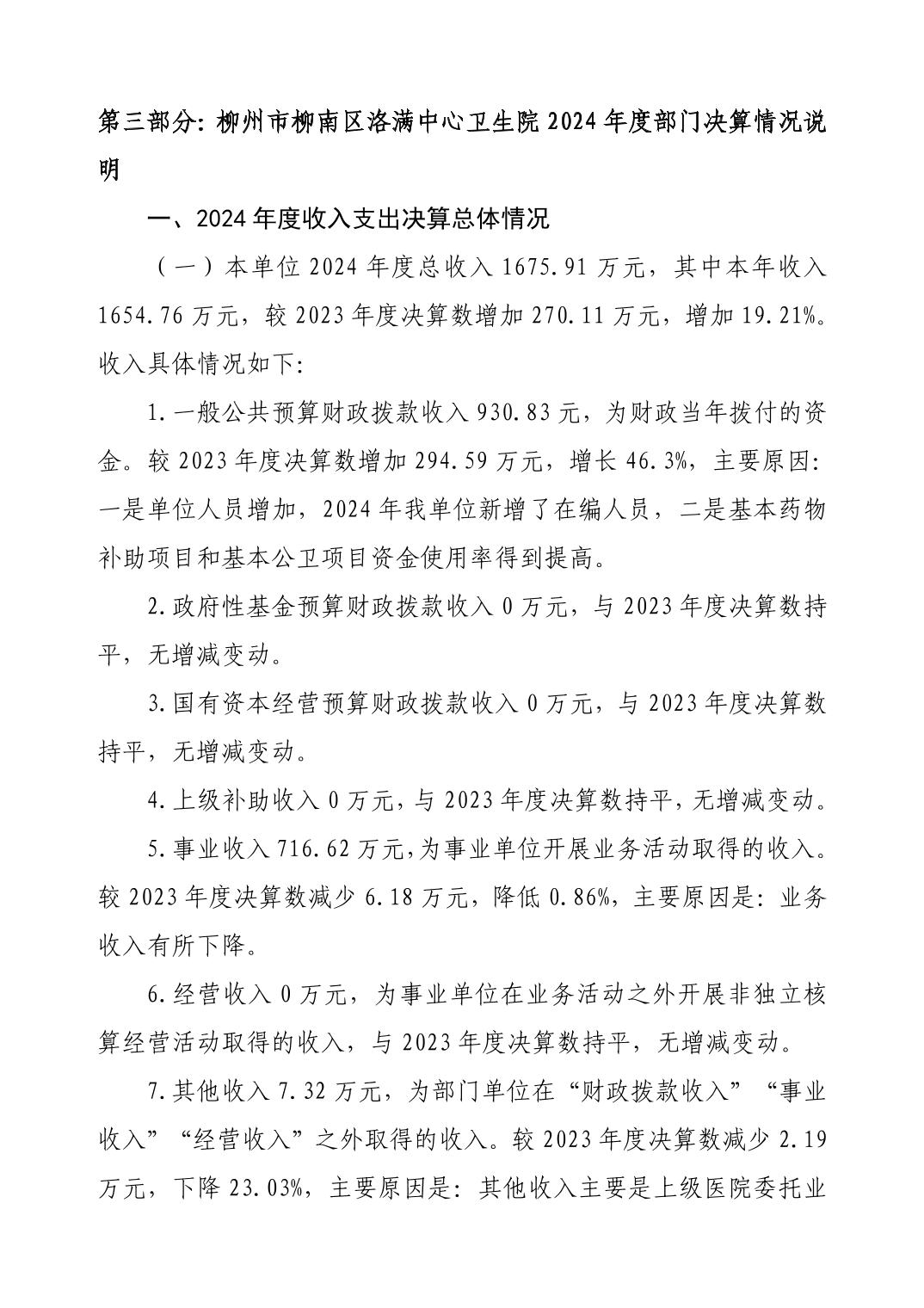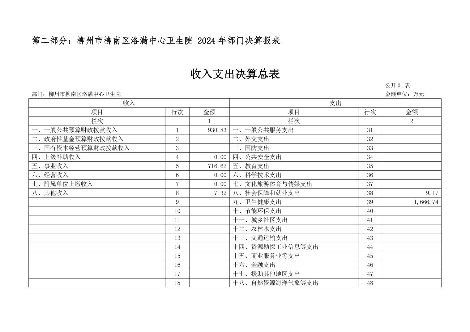柳州市柳南区洛满中心卫生院2024年度单位决算公开