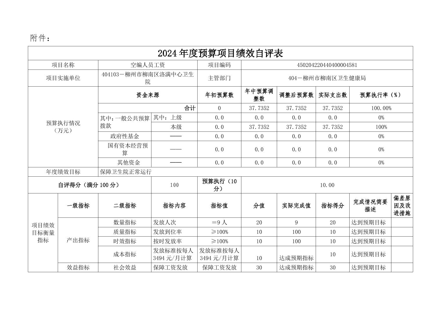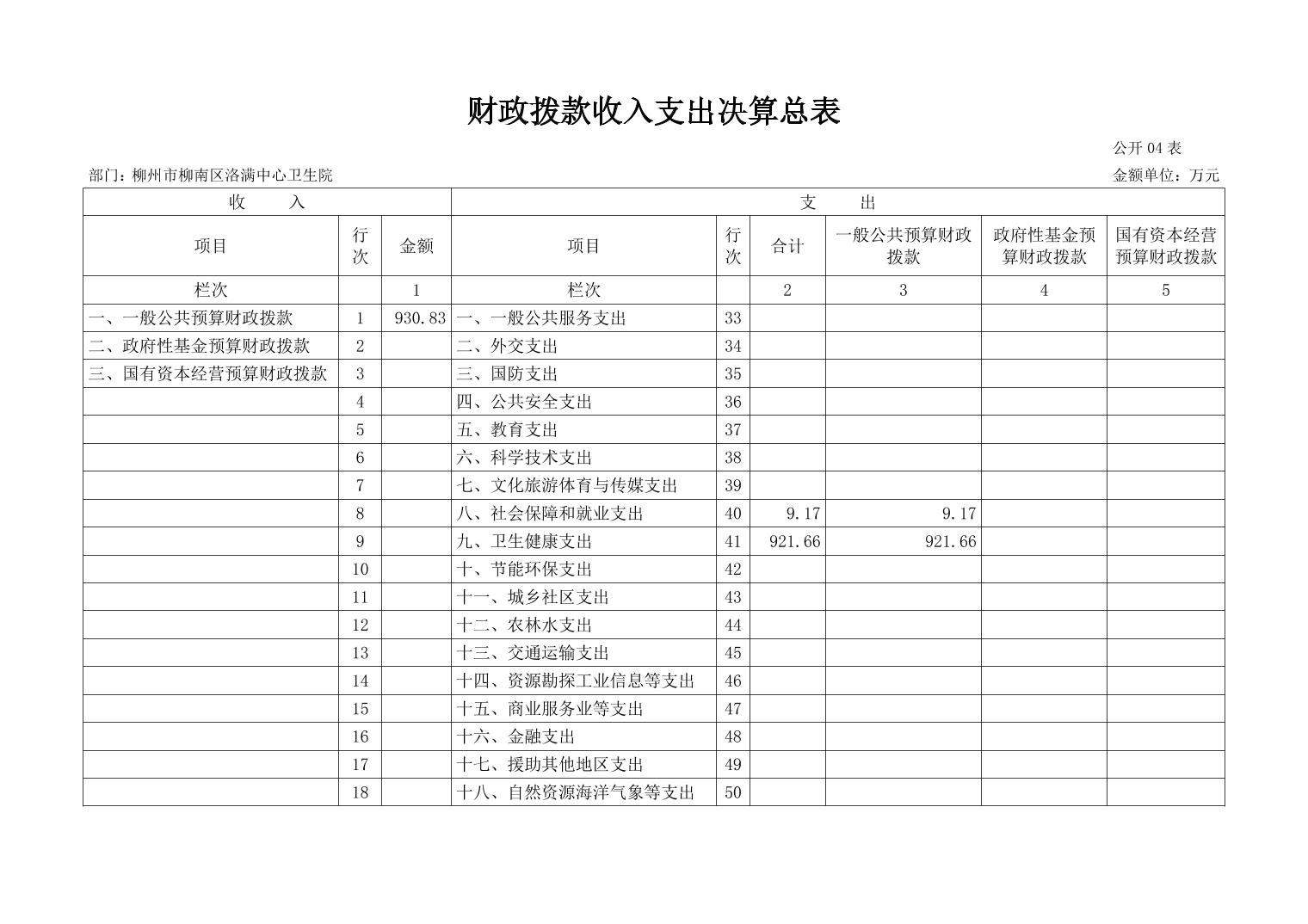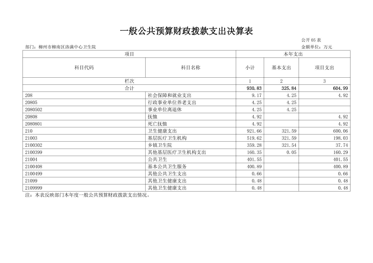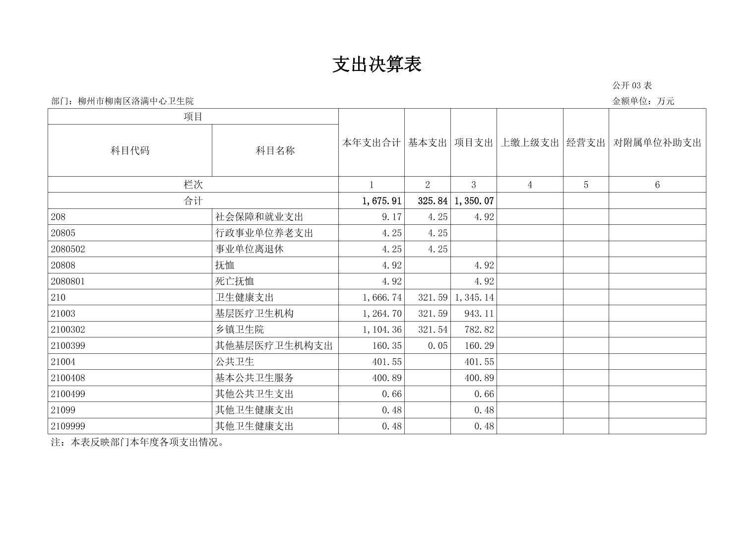 柳州市柳南区洛满中心卫生院2024年度单位决算公开