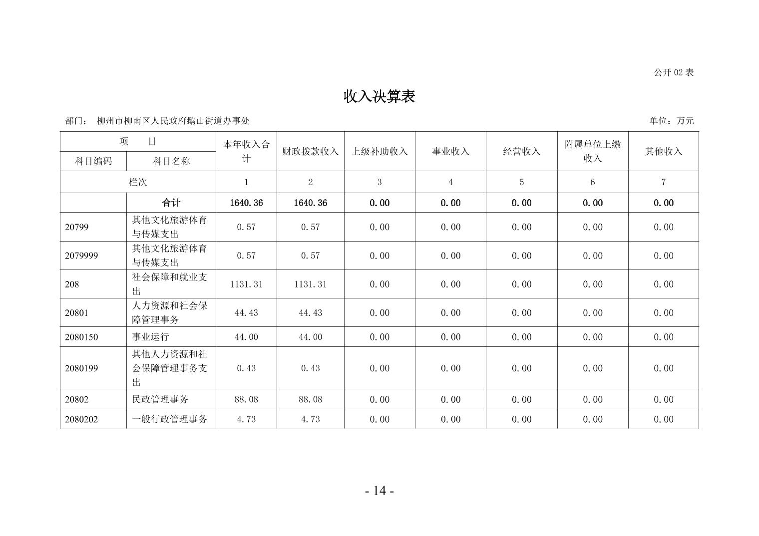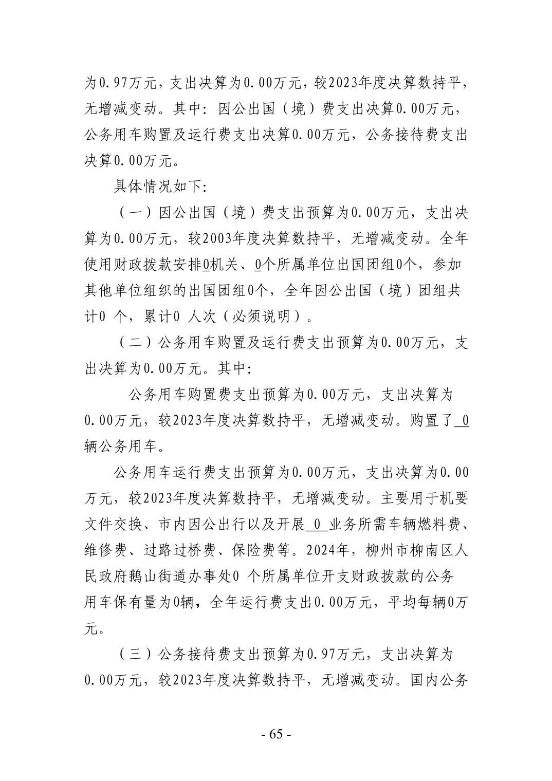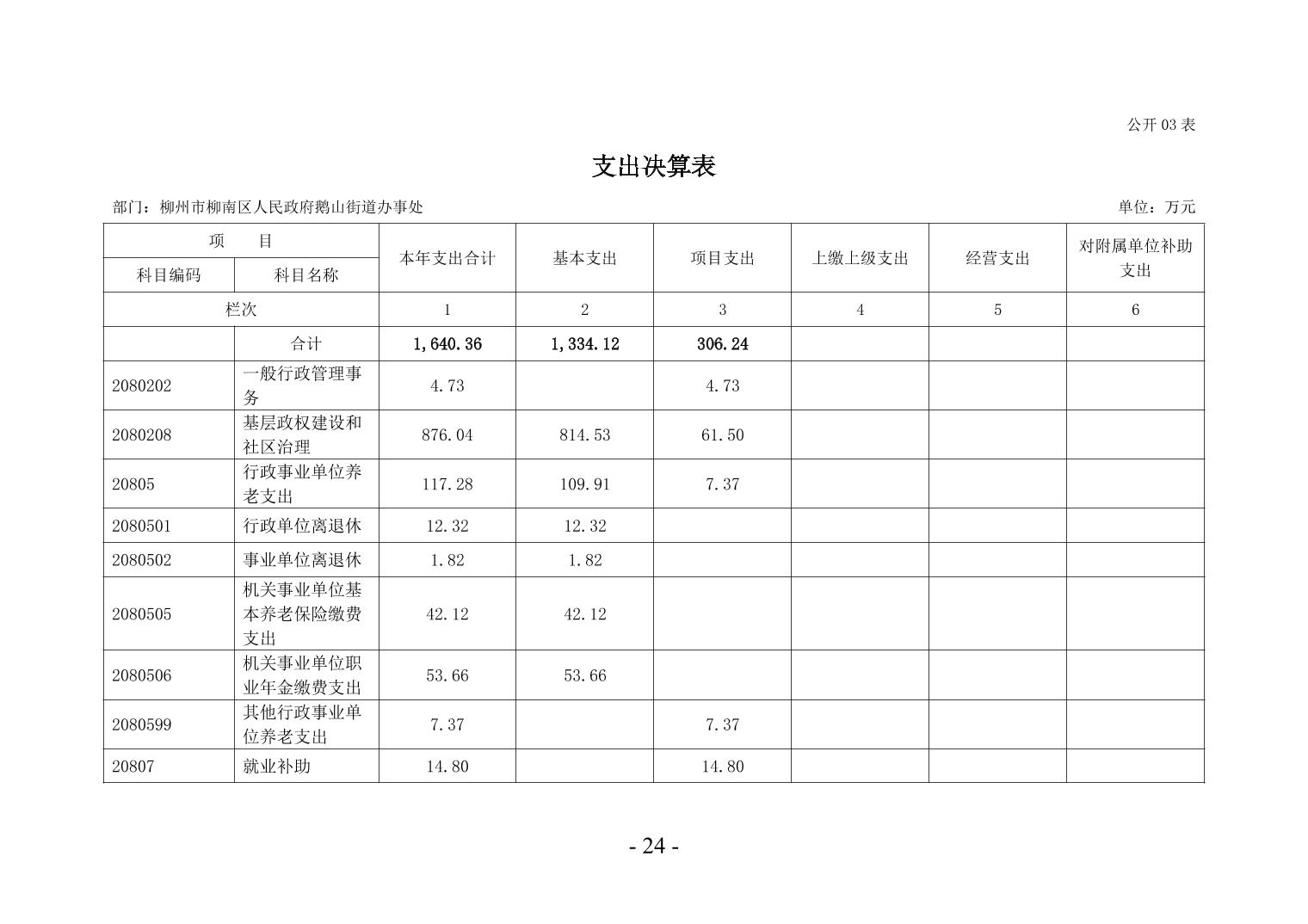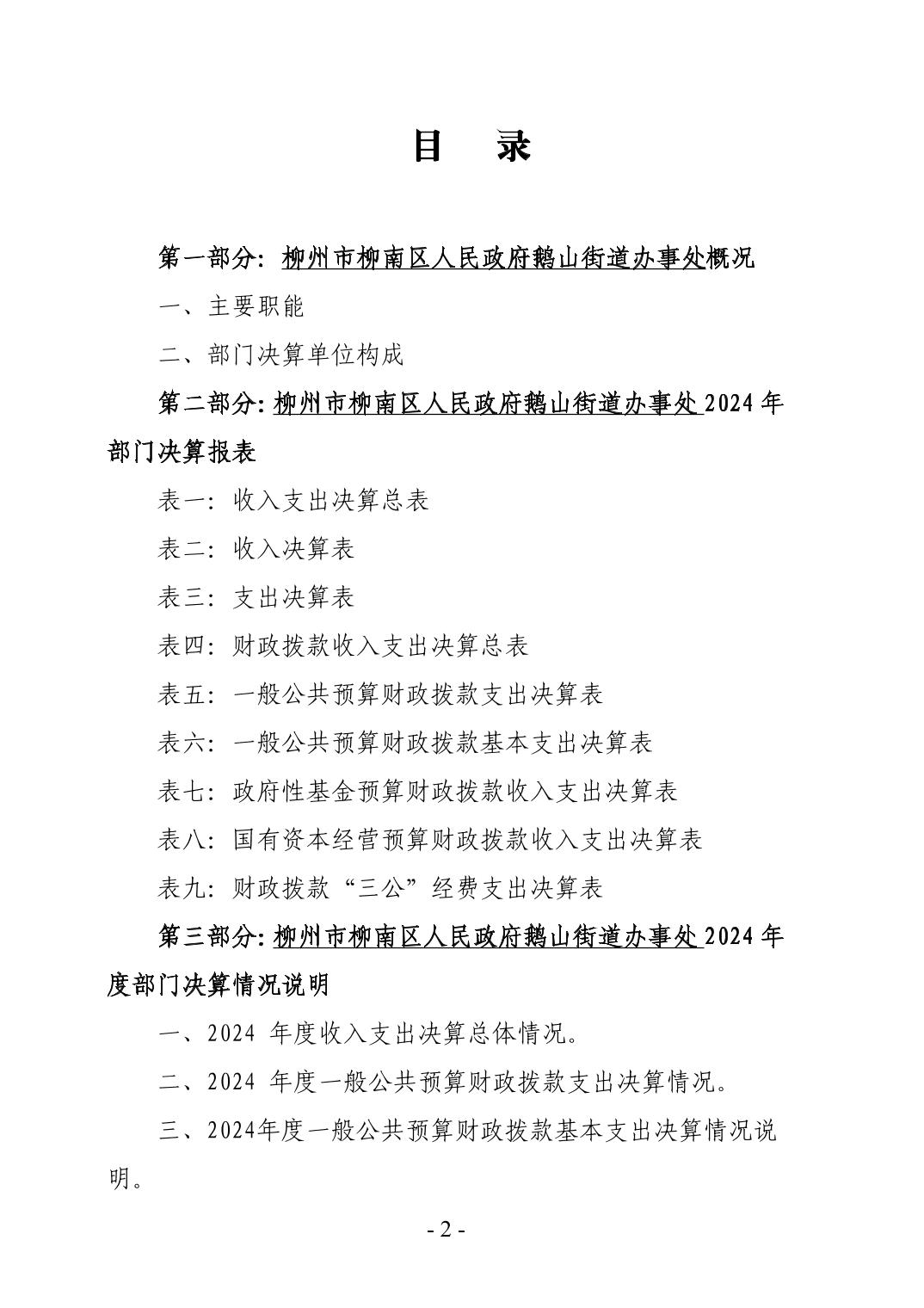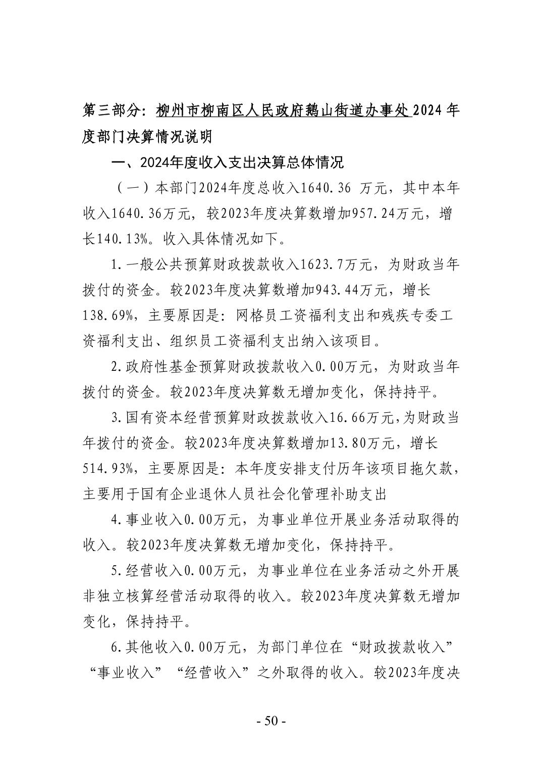 柳州市柳南区人民政府鹅山街道办事处2024年度部门决算公开