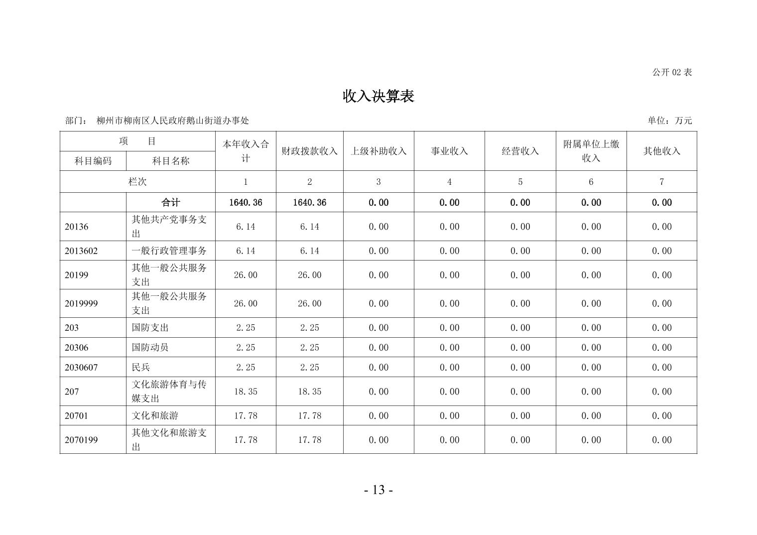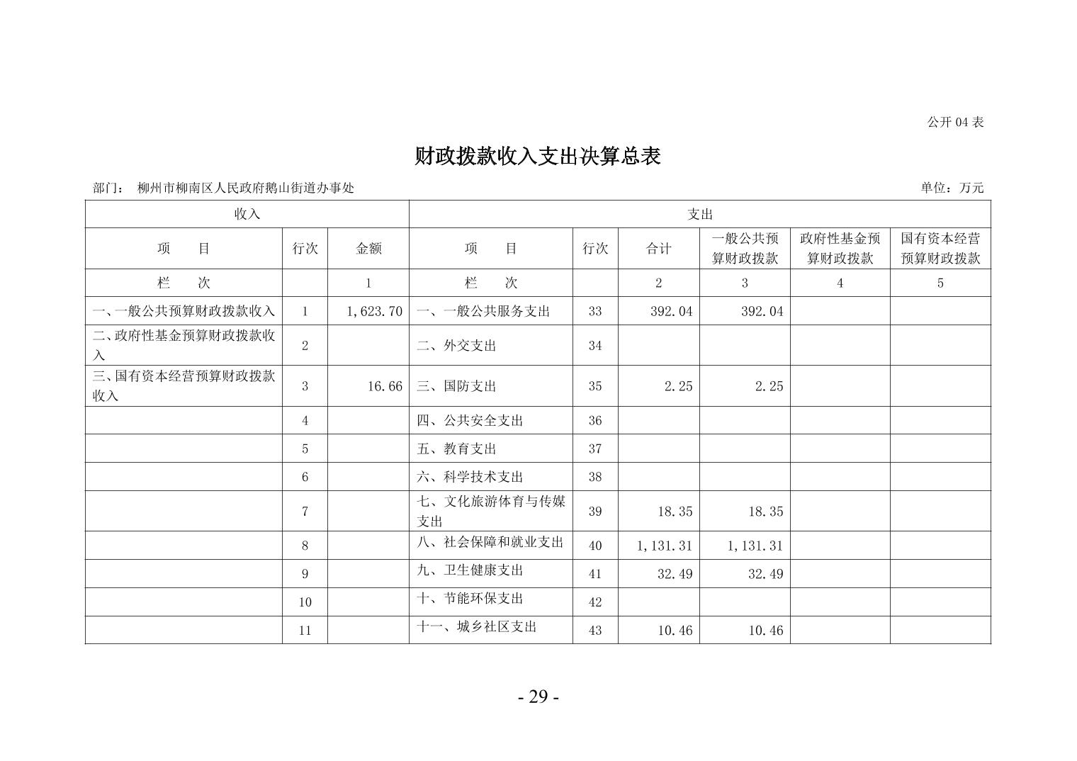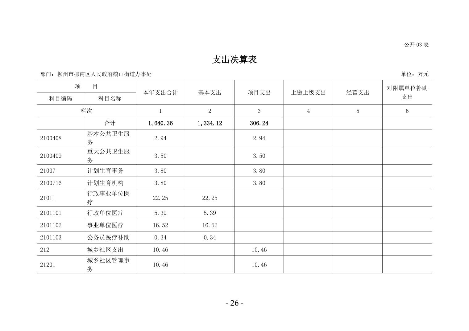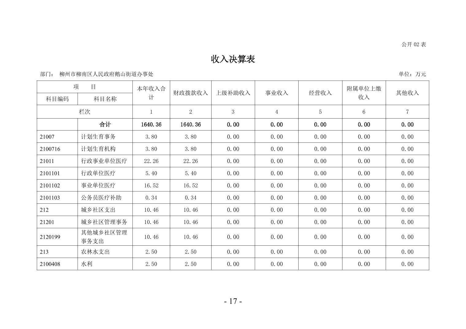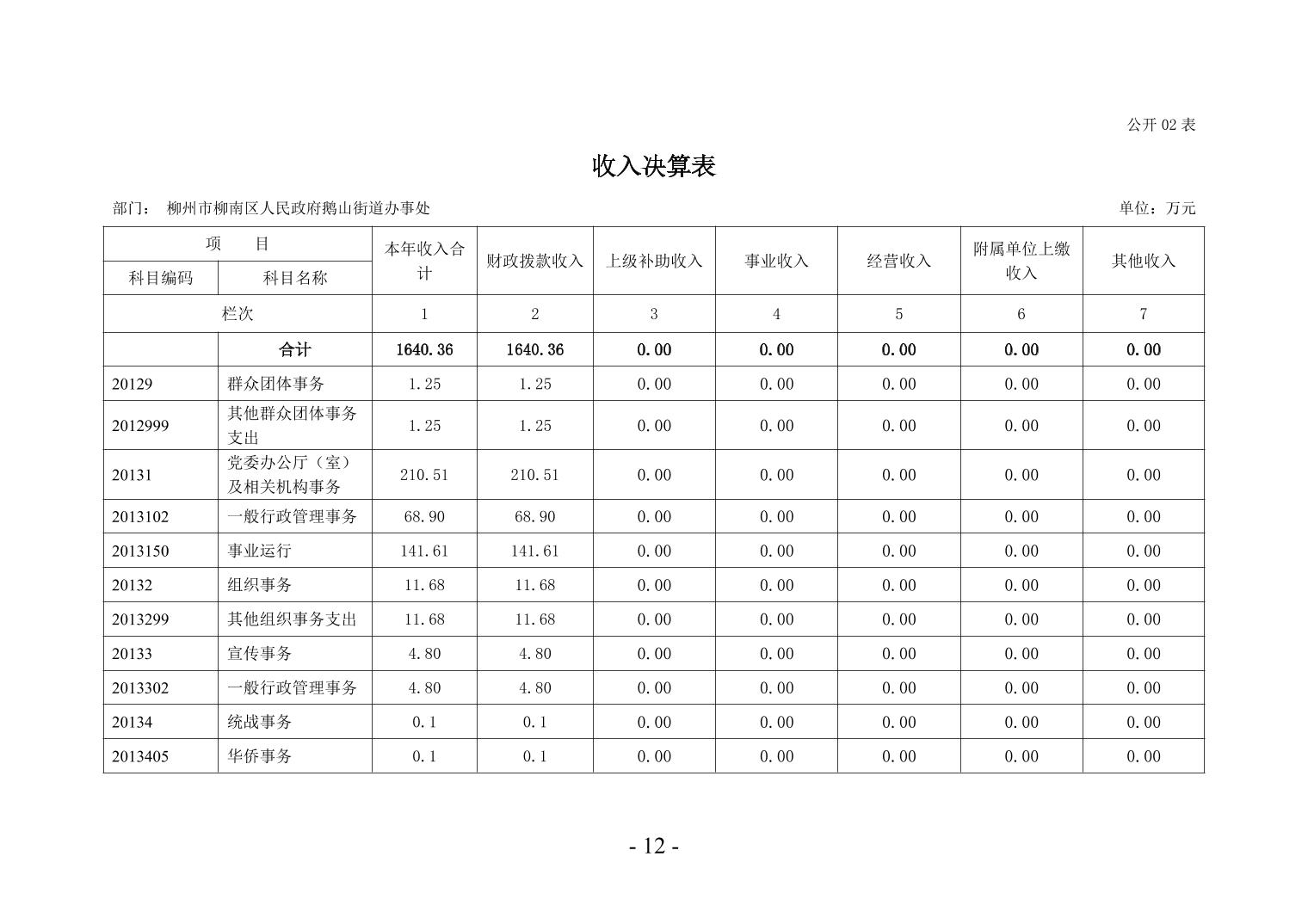 柳州市柳南区人民政府鹅山街道办事处2024年度部门决算公开