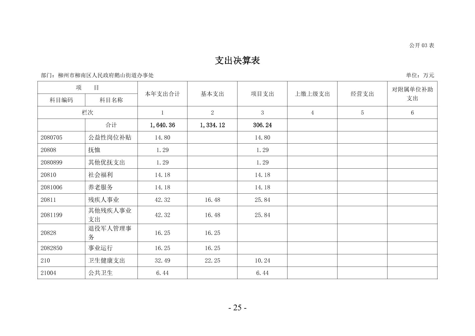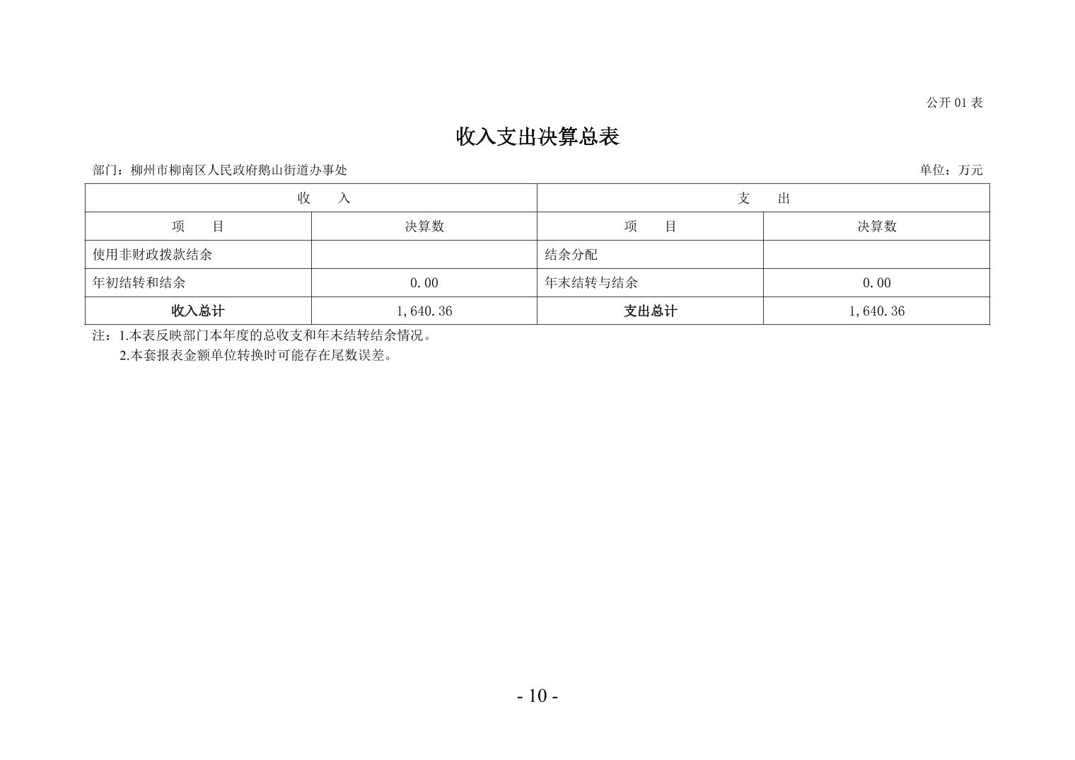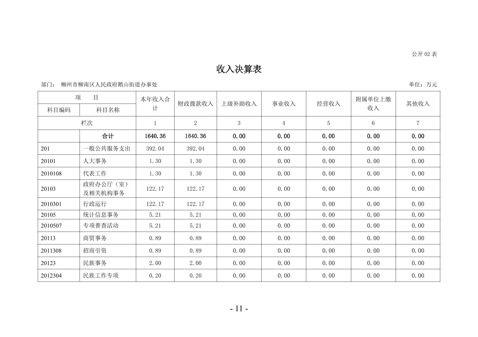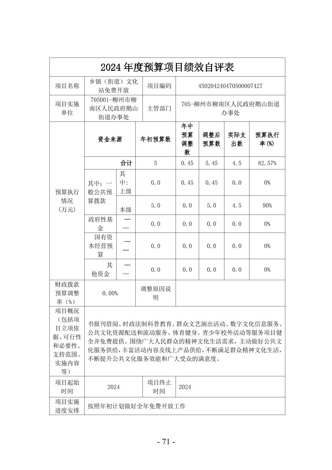 柳州市柳南区人民政府鹅山街道办事处2024年度部门决算公开