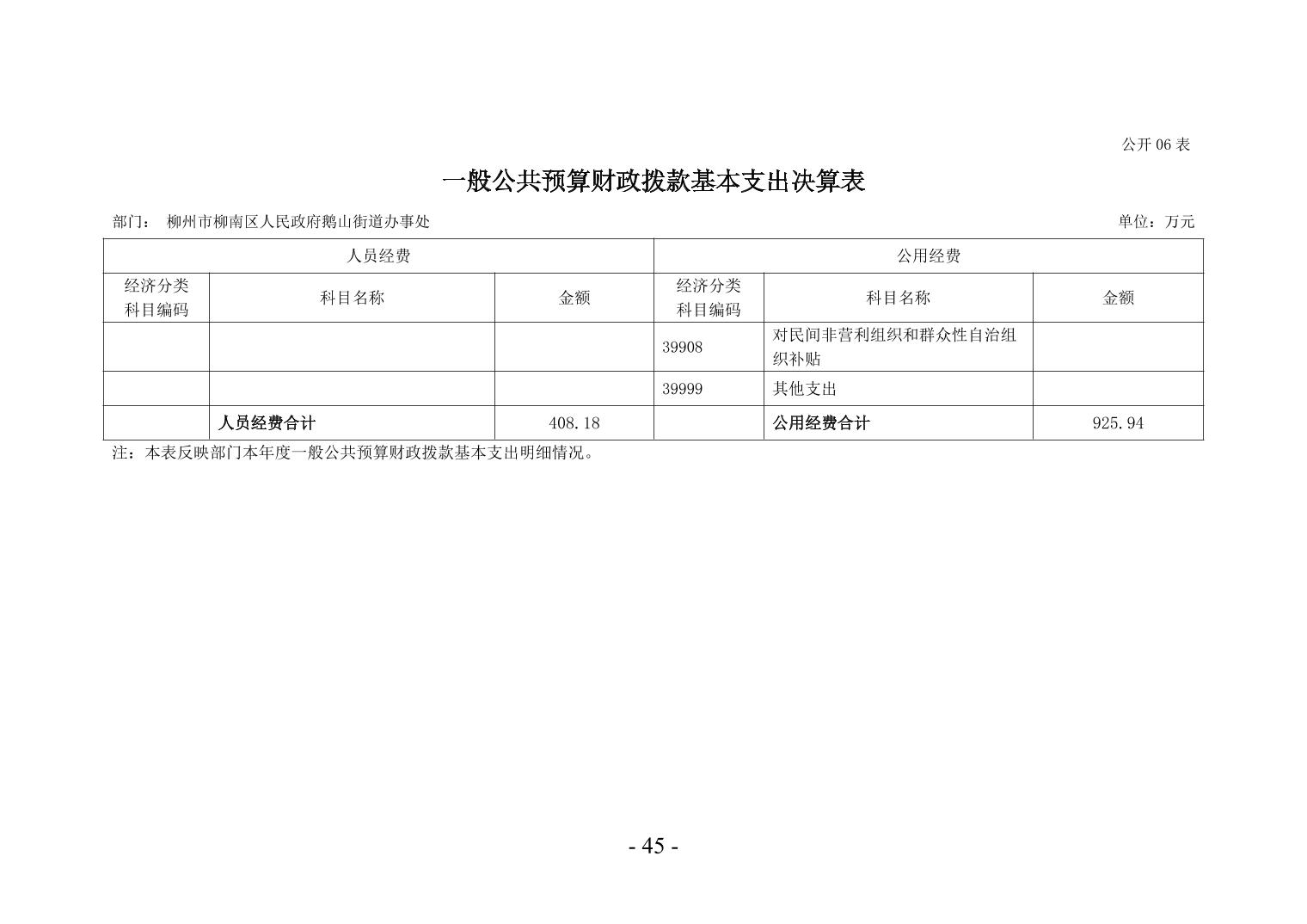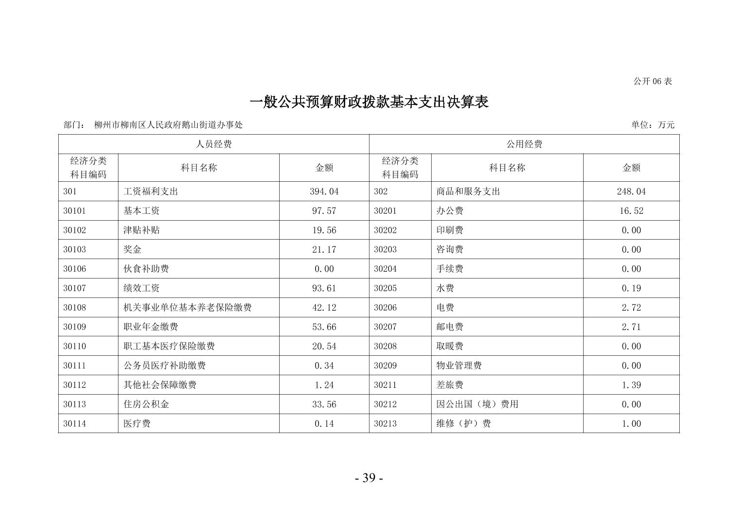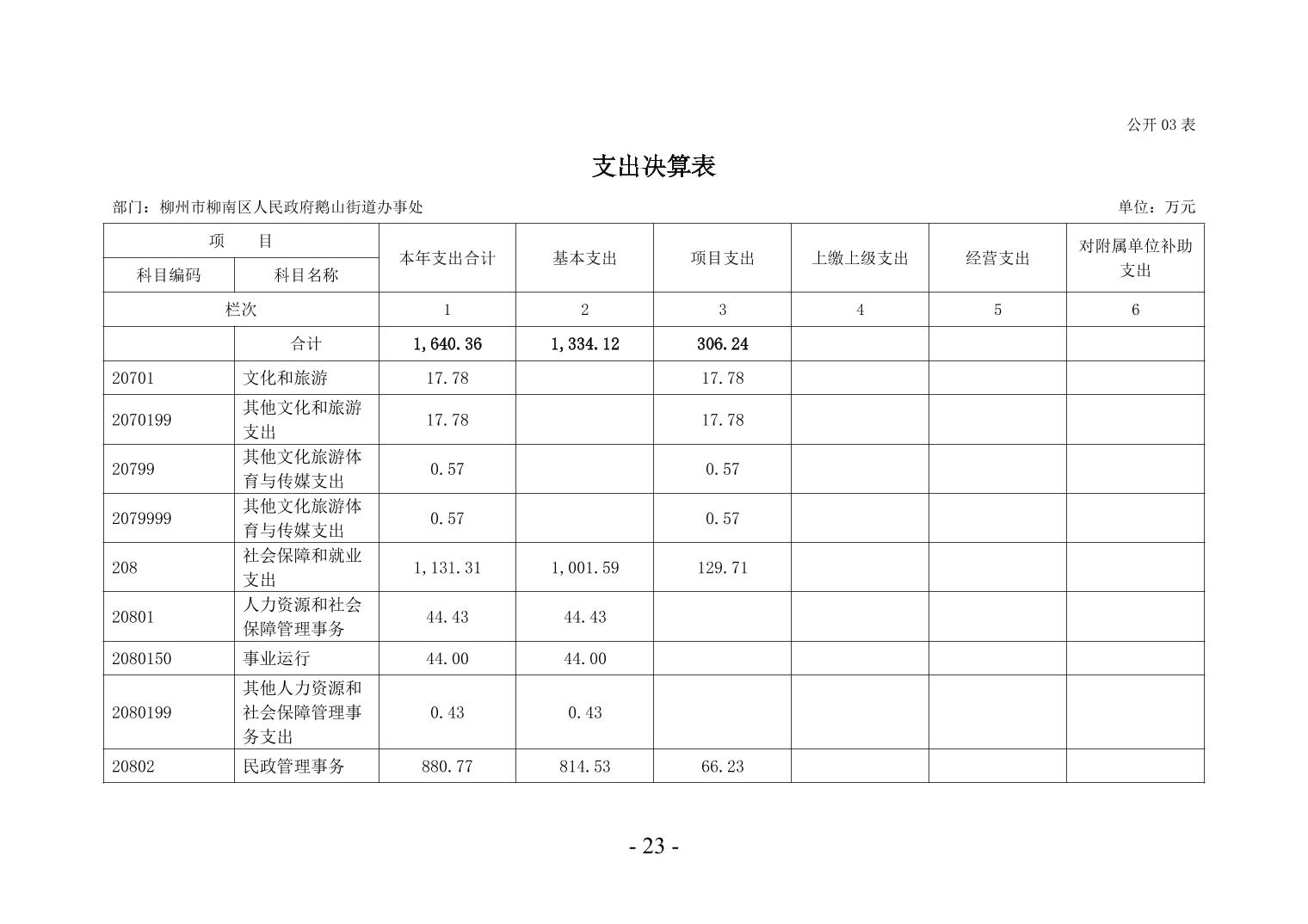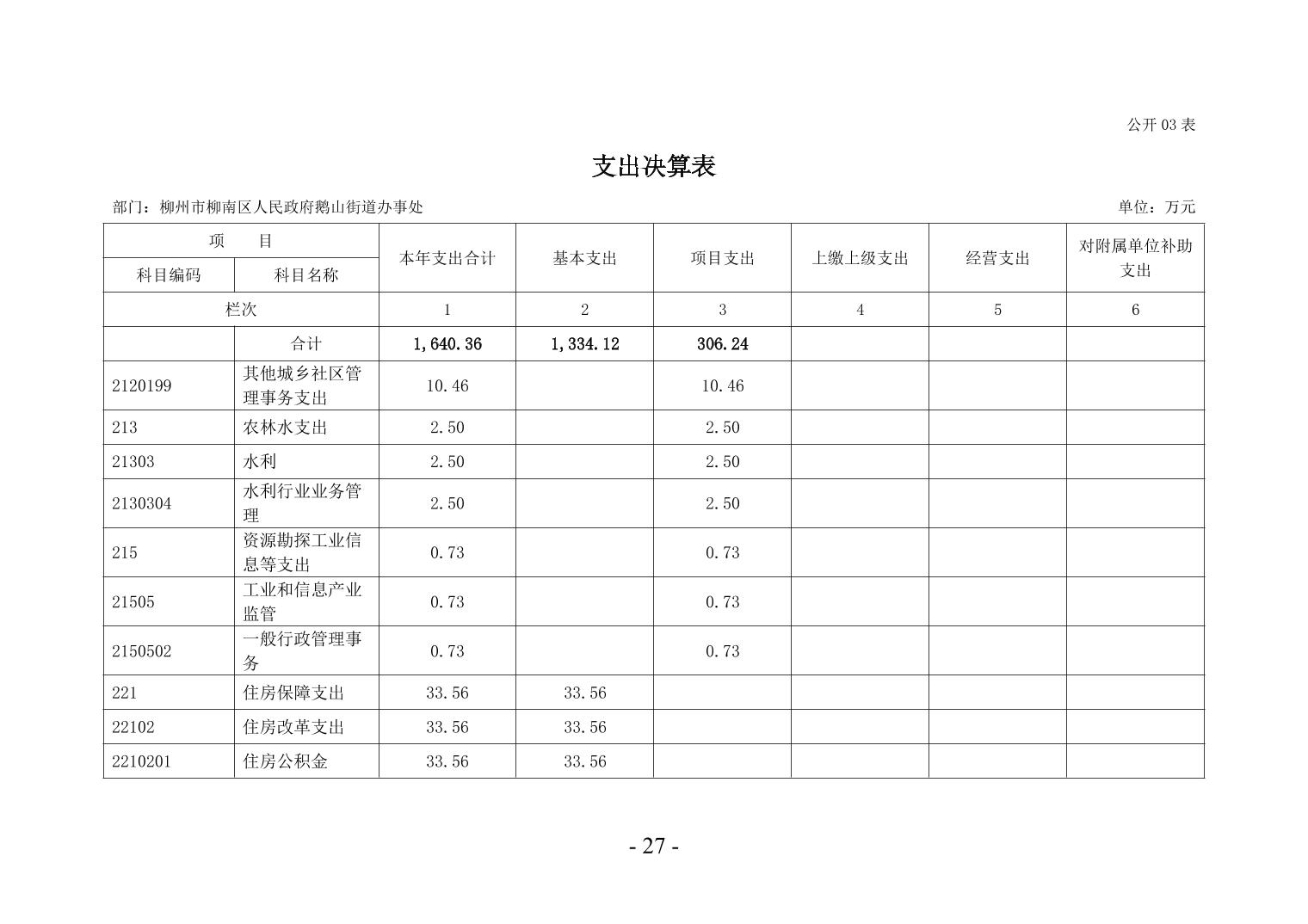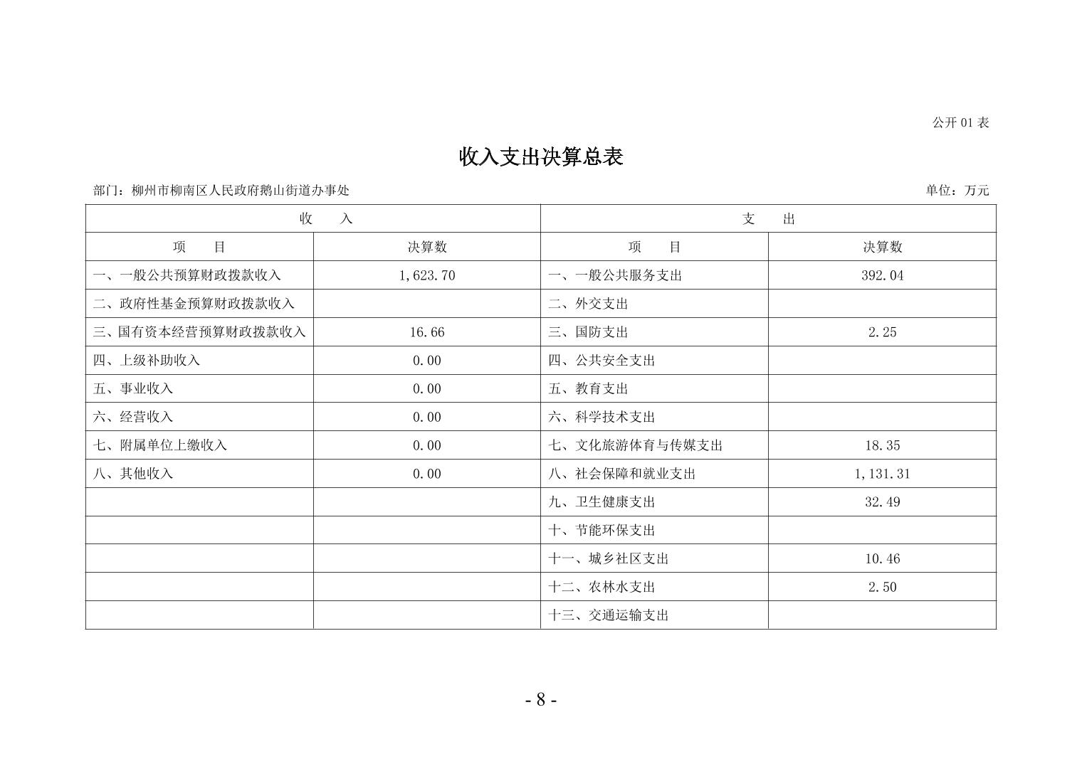 柳州市柳南区人民政府鹅山街道办事处2024年度部门决算公开