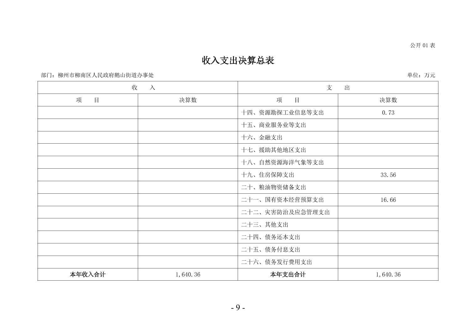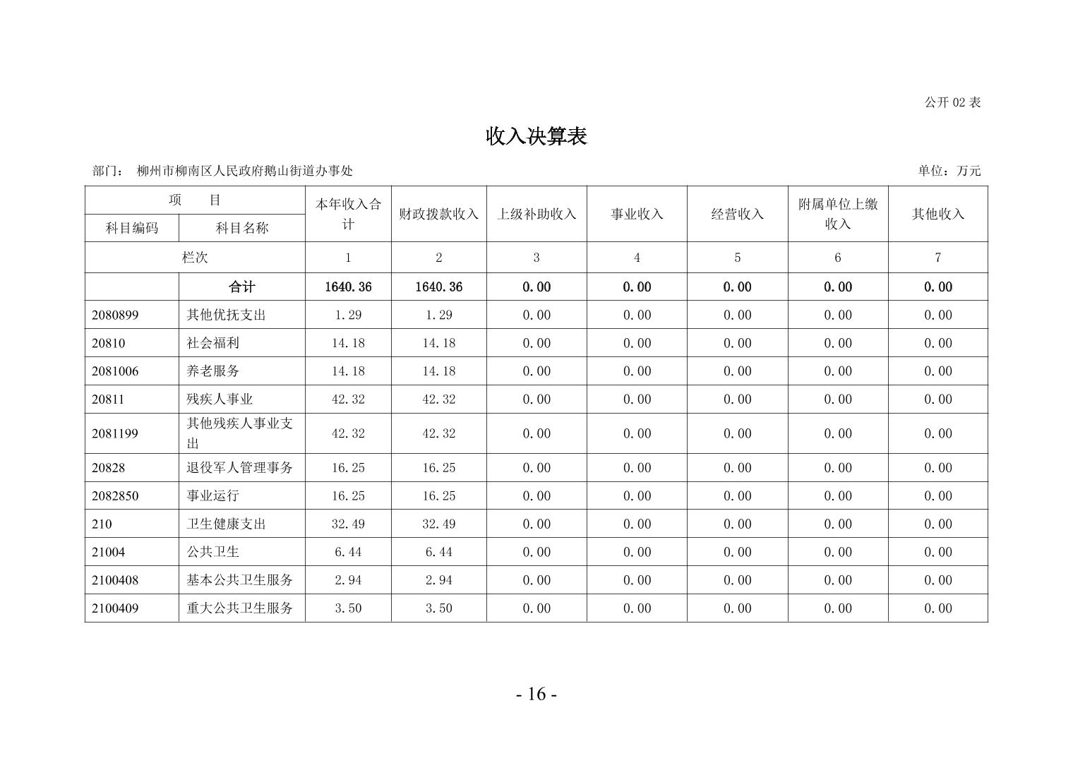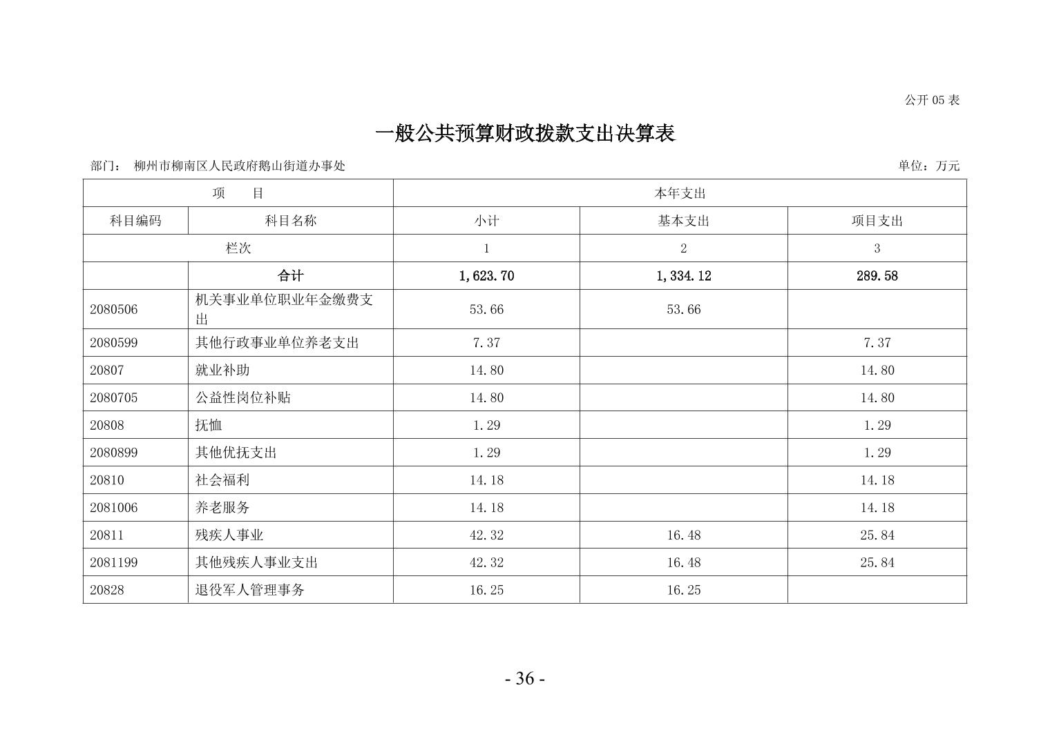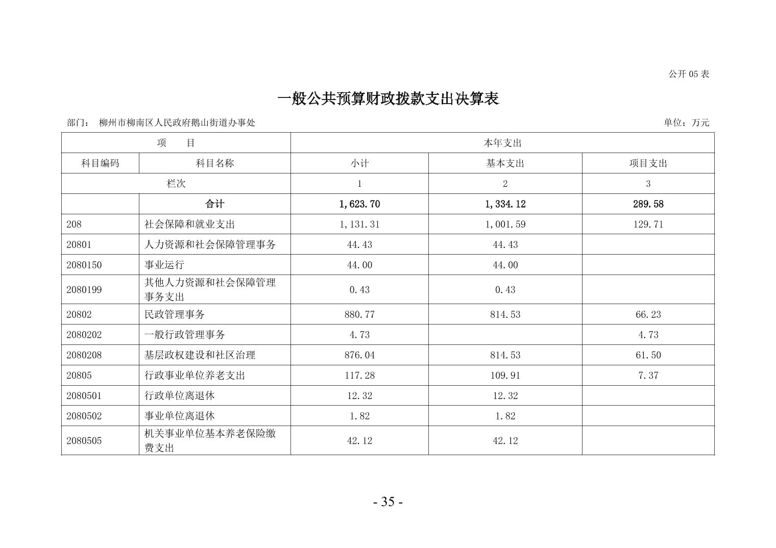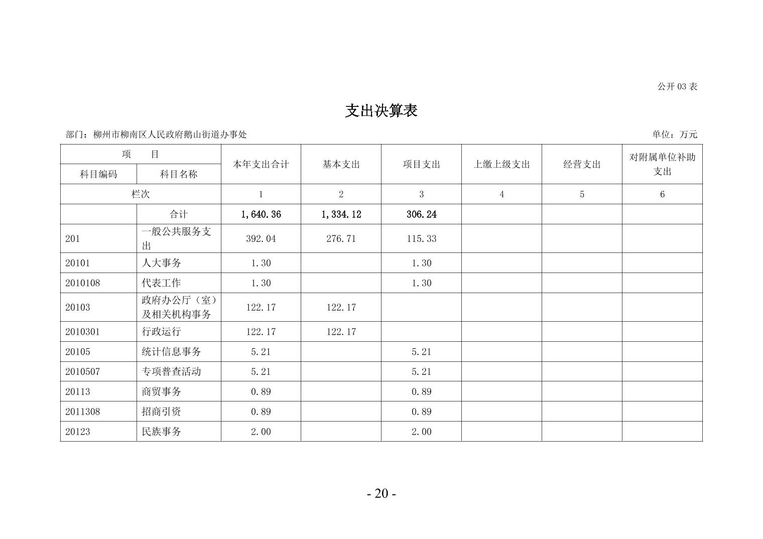 柳州市柳南区人民政府鹅山街道办事处2024年度部门决算公开