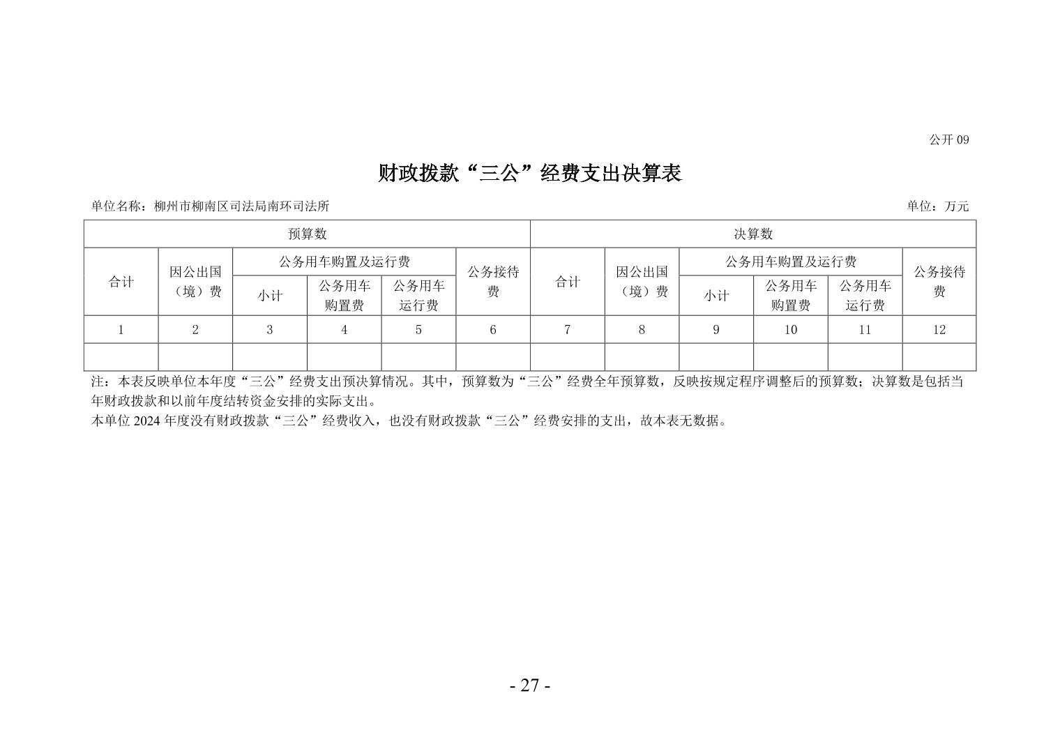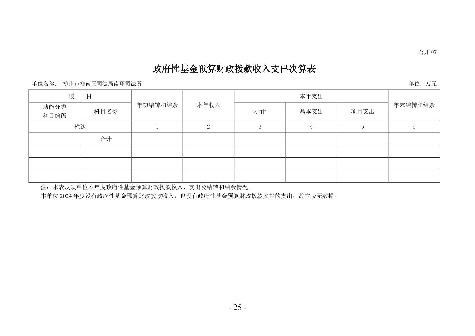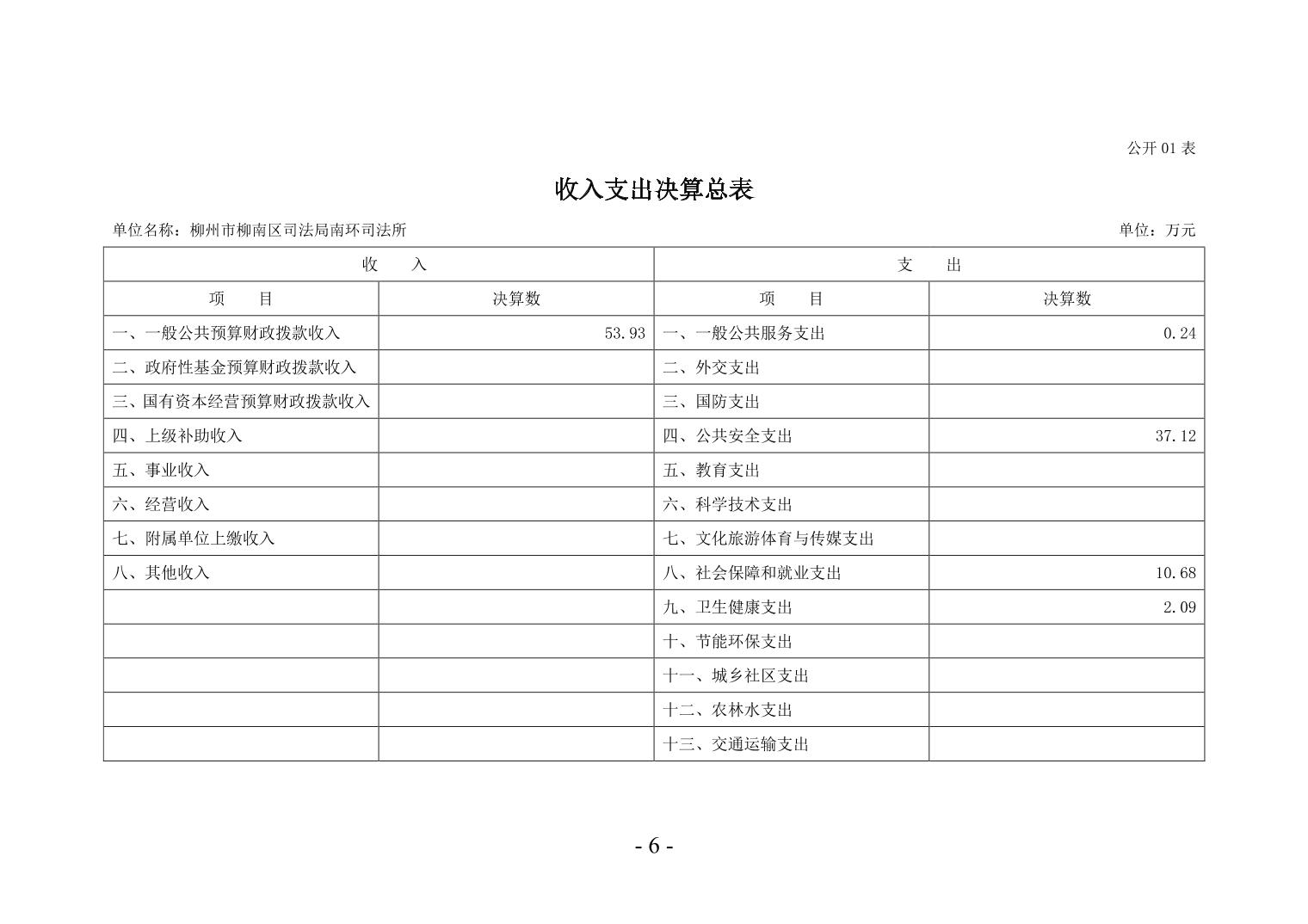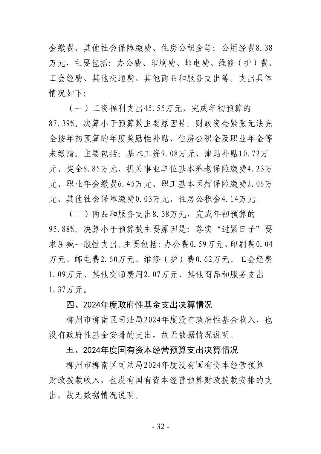 柳州市柳南区司法局南环司法所2024年度单位决算公开