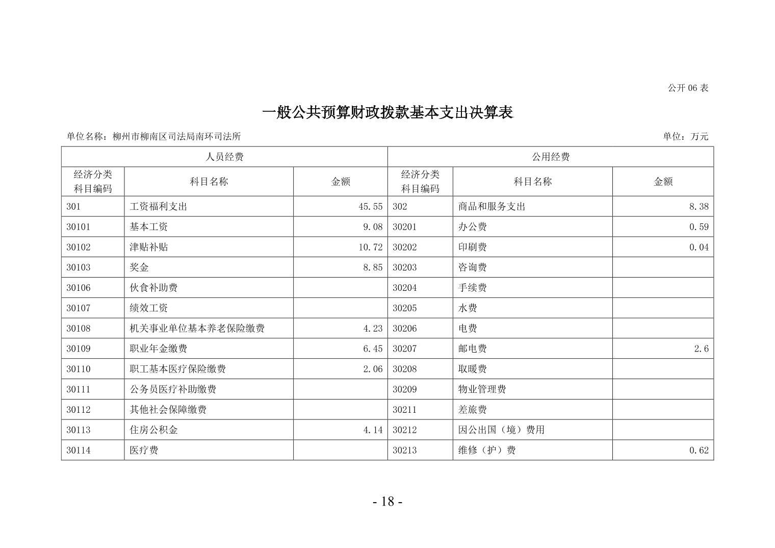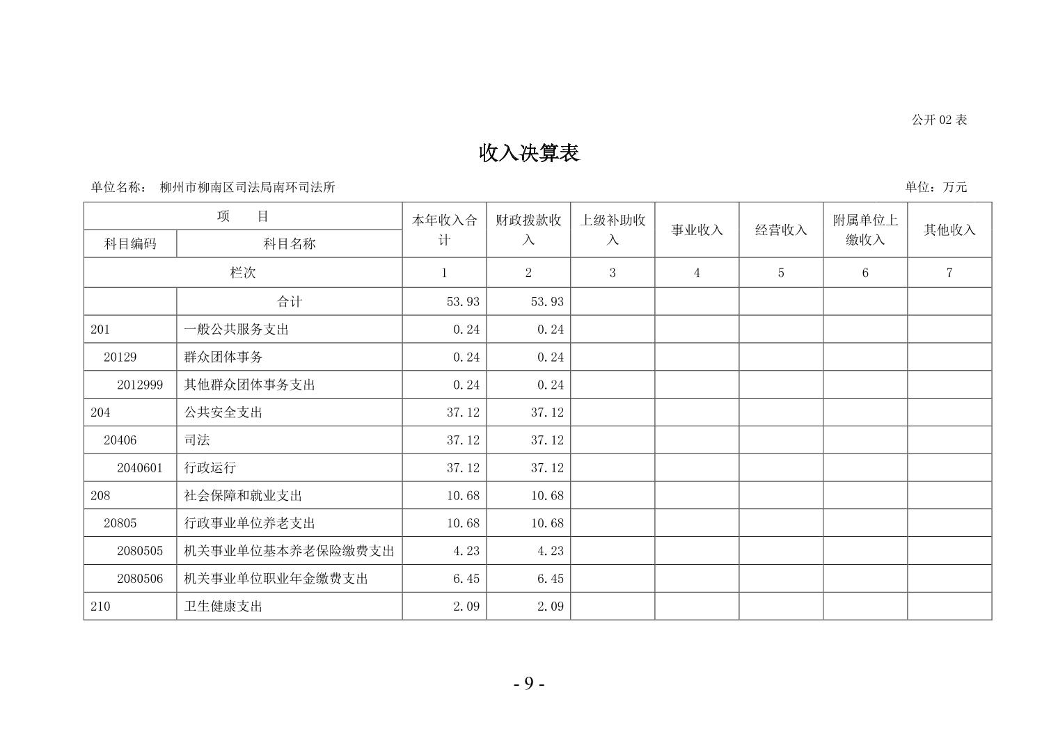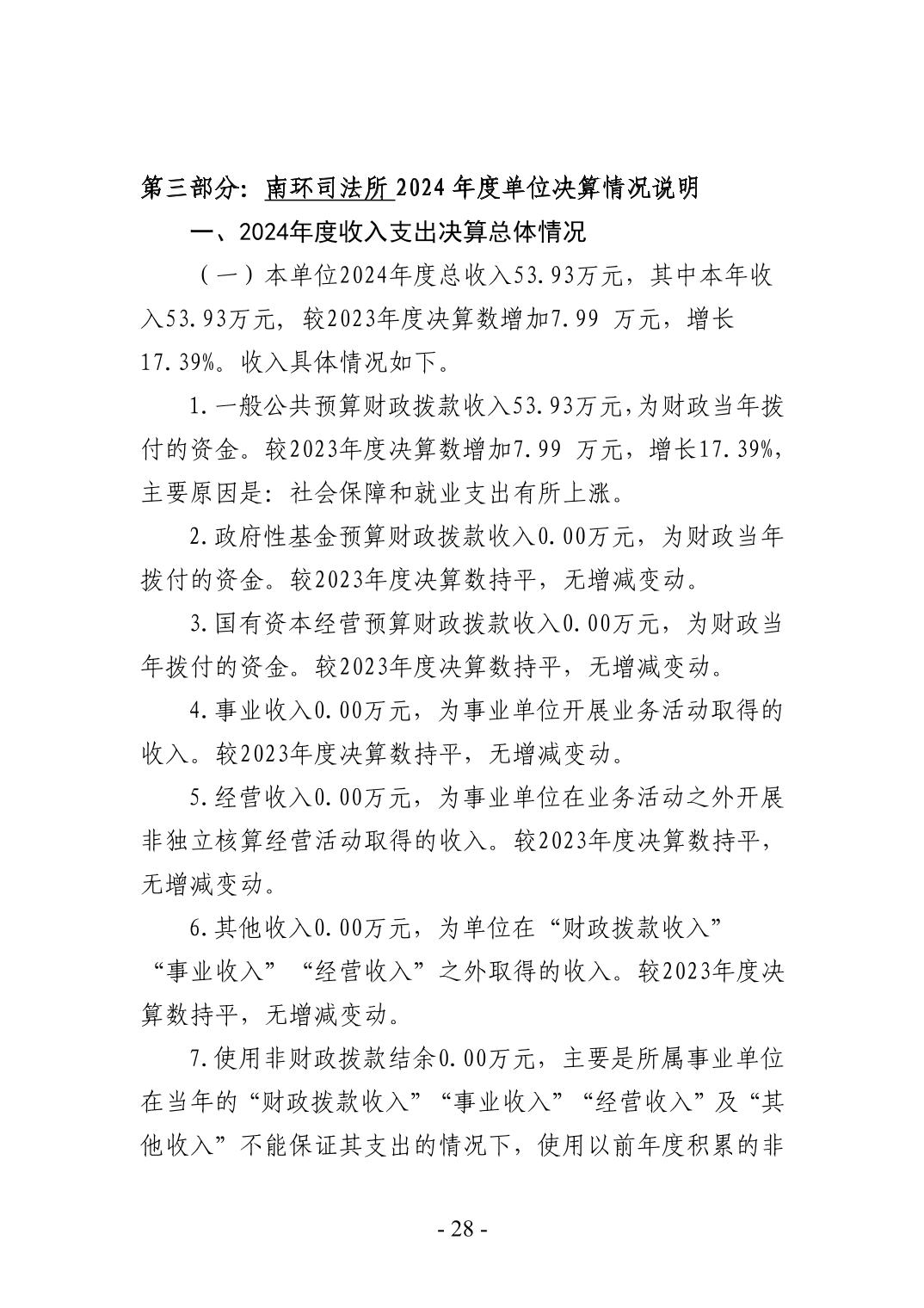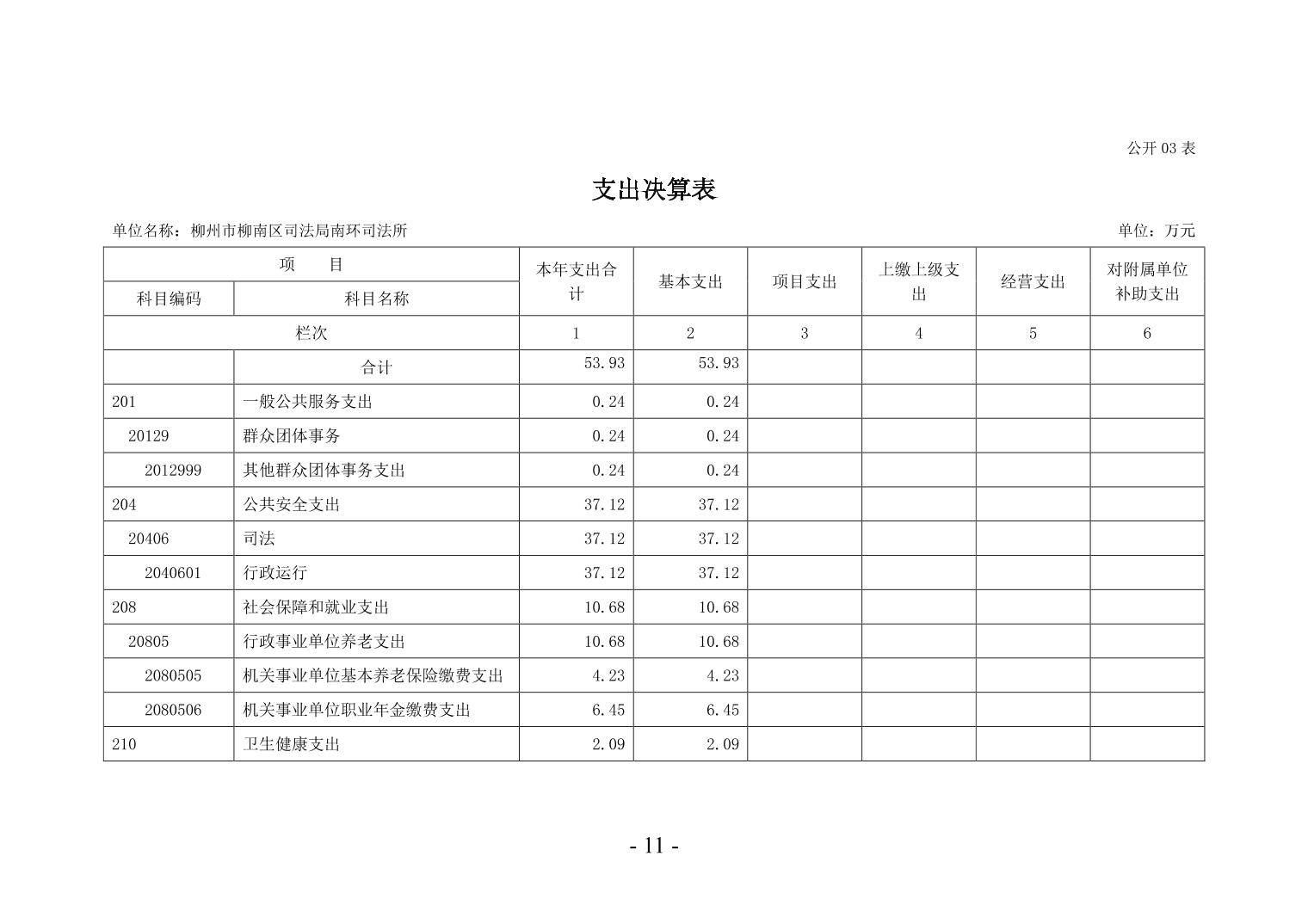 柳州市柳南区司法局南环司法所2024年度单位决算公开