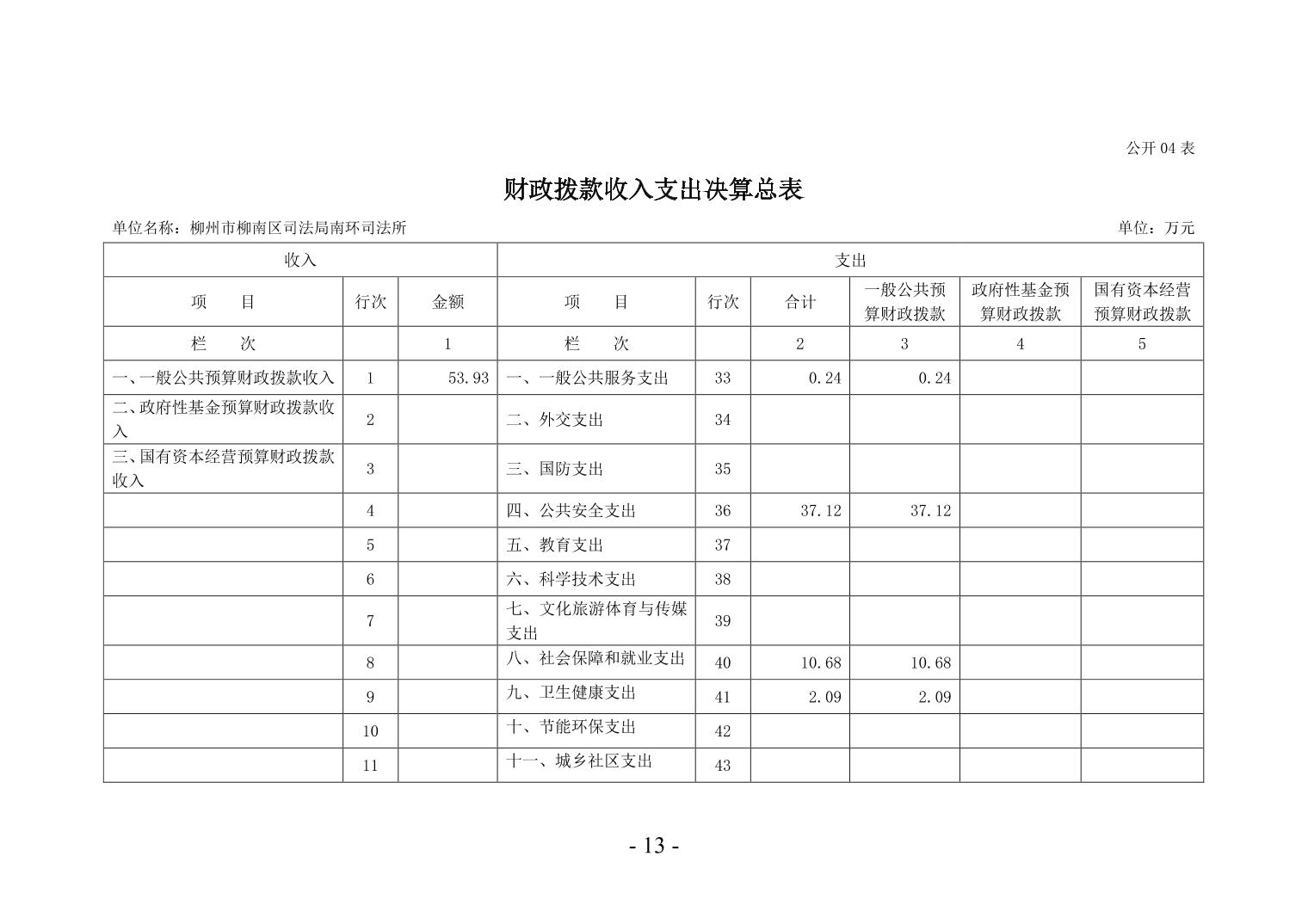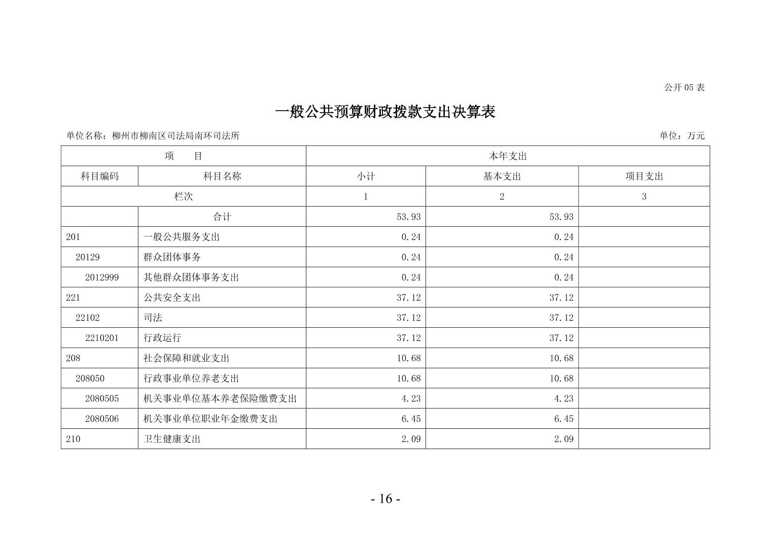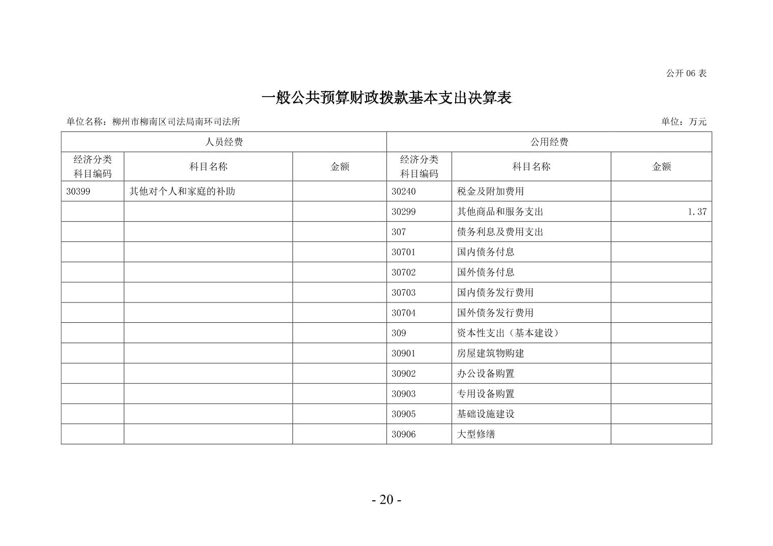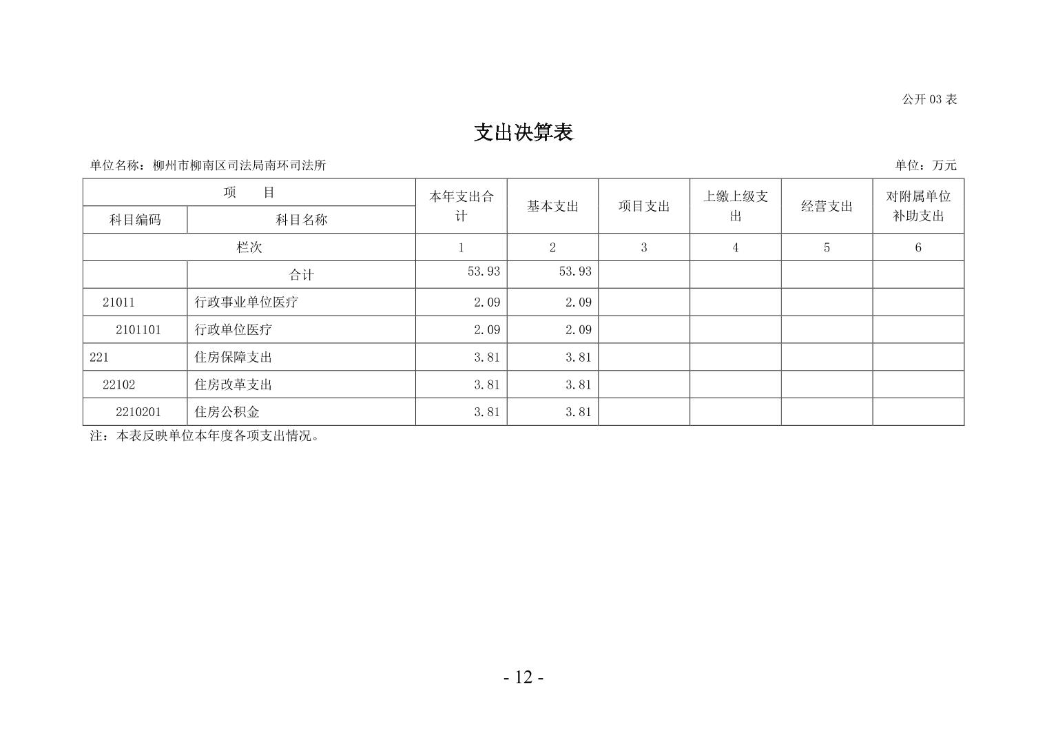 柳州市柳南区司法局南环司法所2024年度单位决算公开