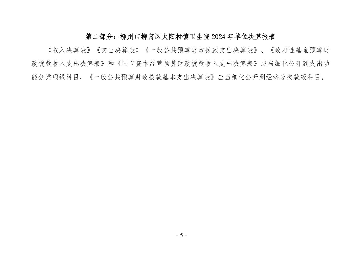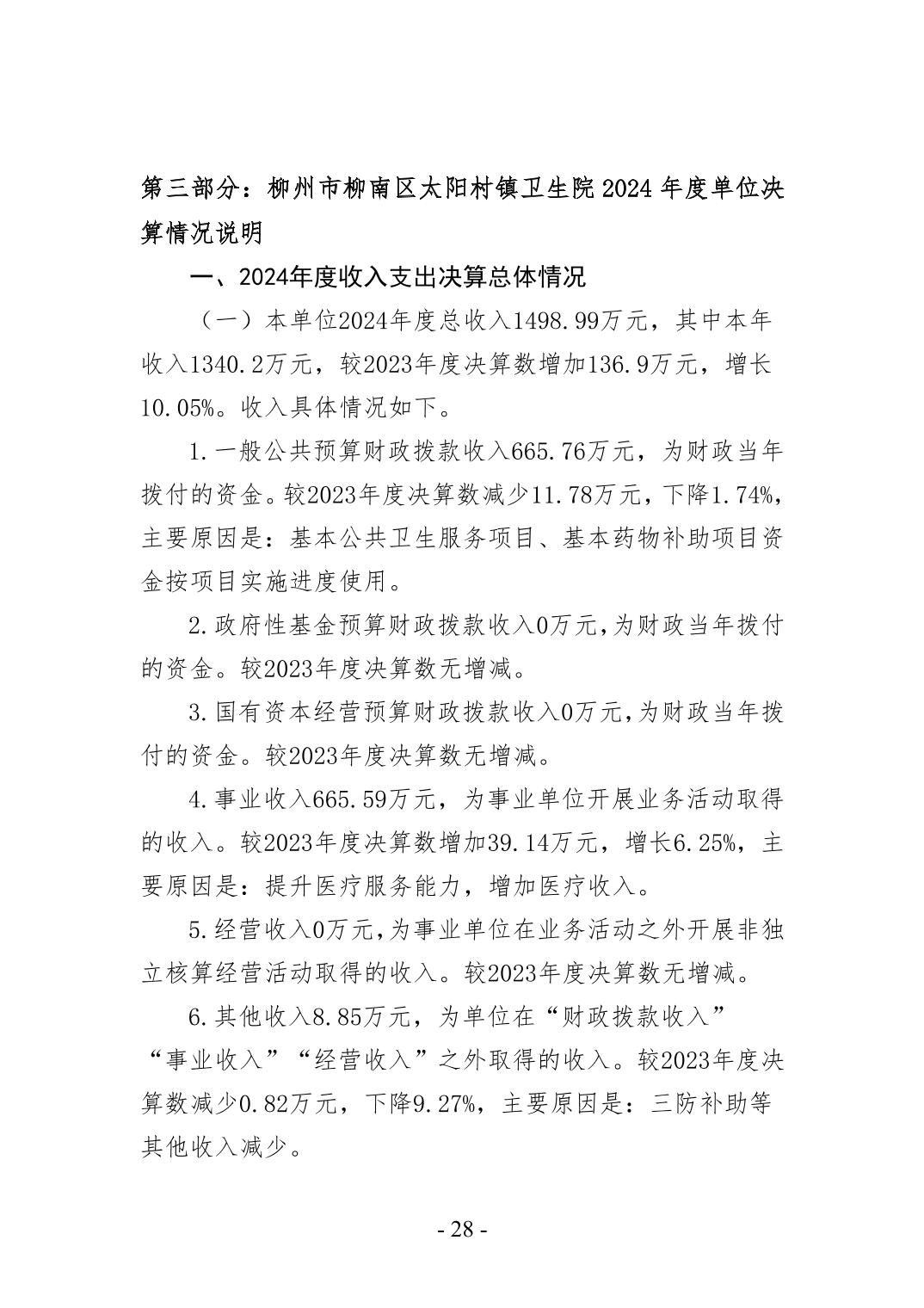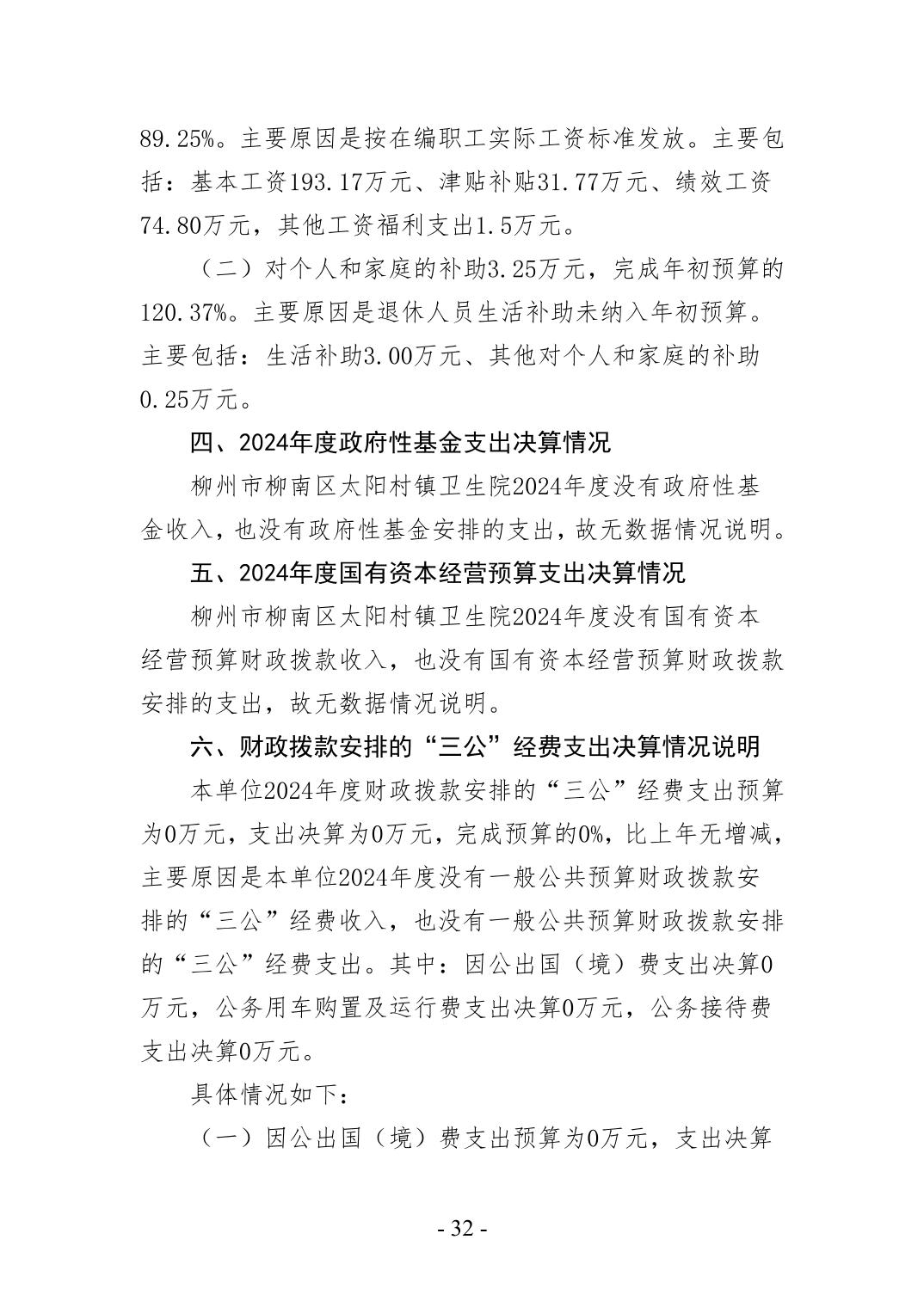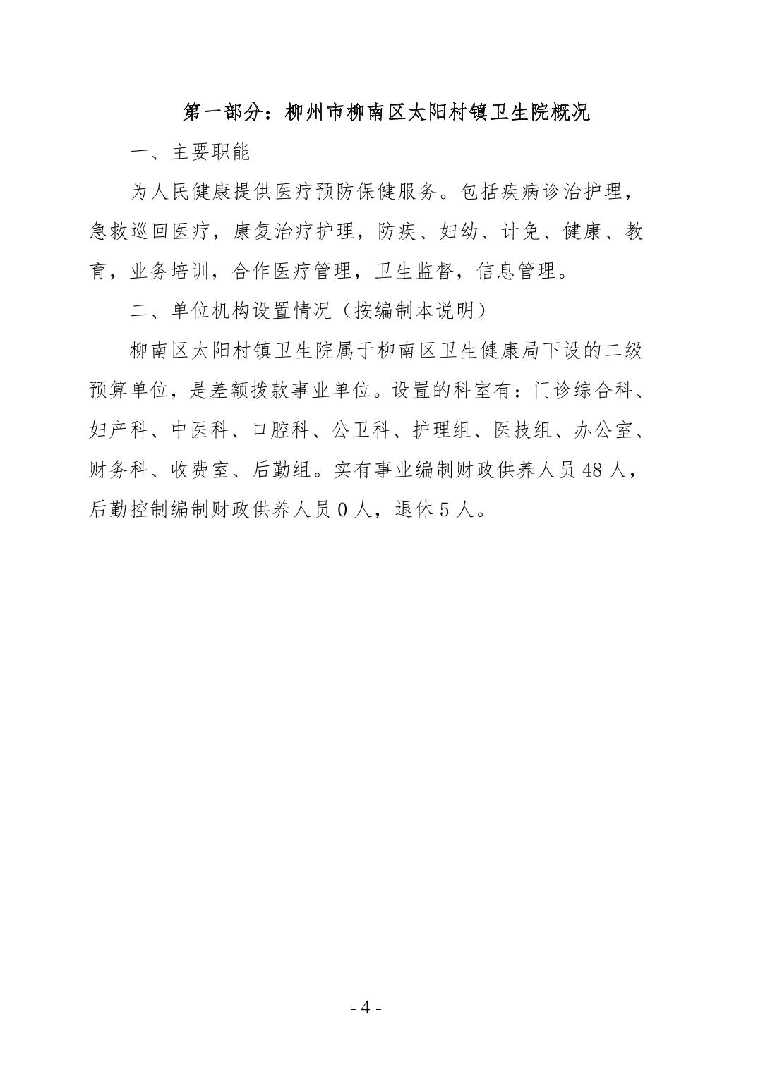 柳州市柳南区太阳村镇卫生院2024年度单位决算公开