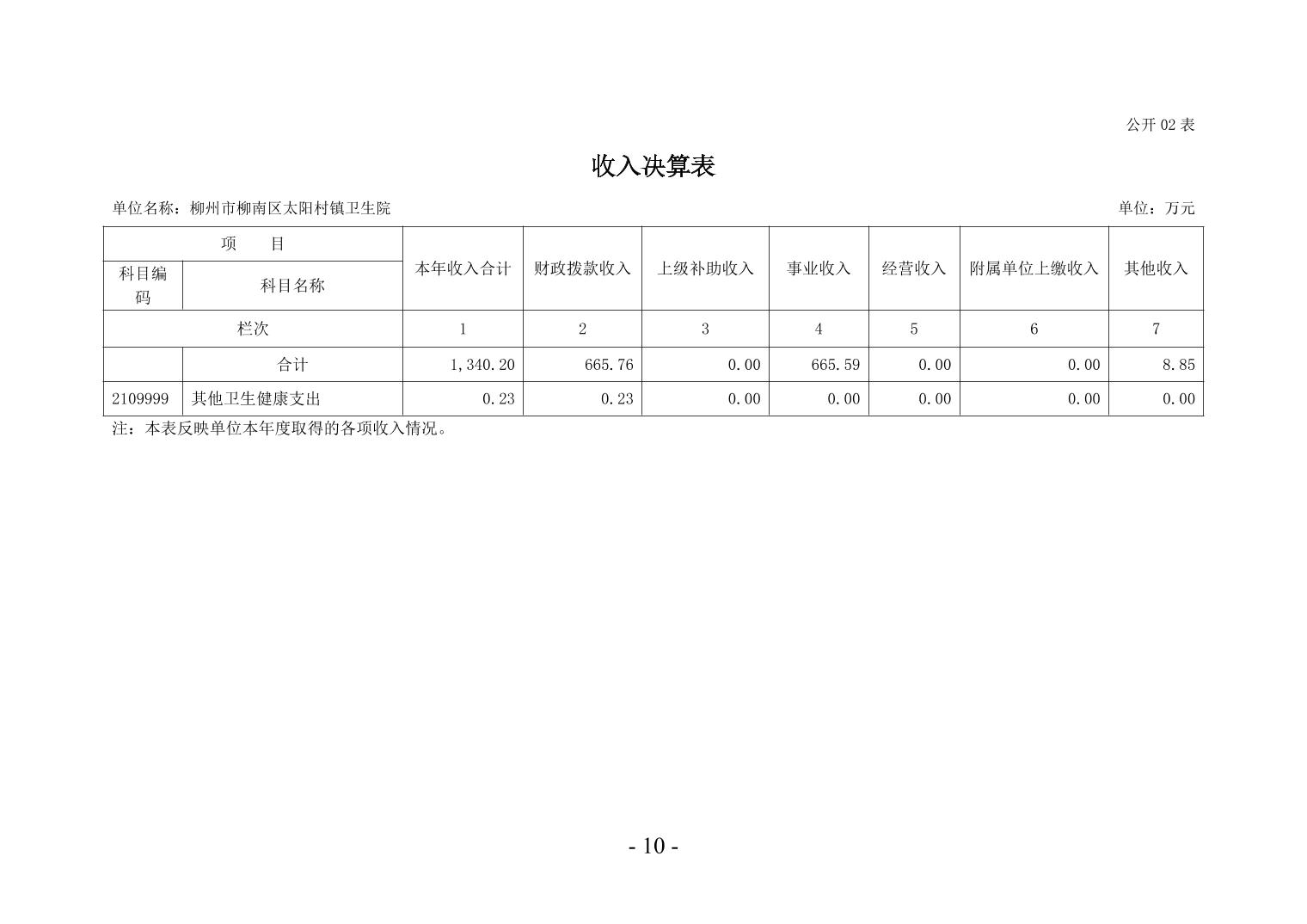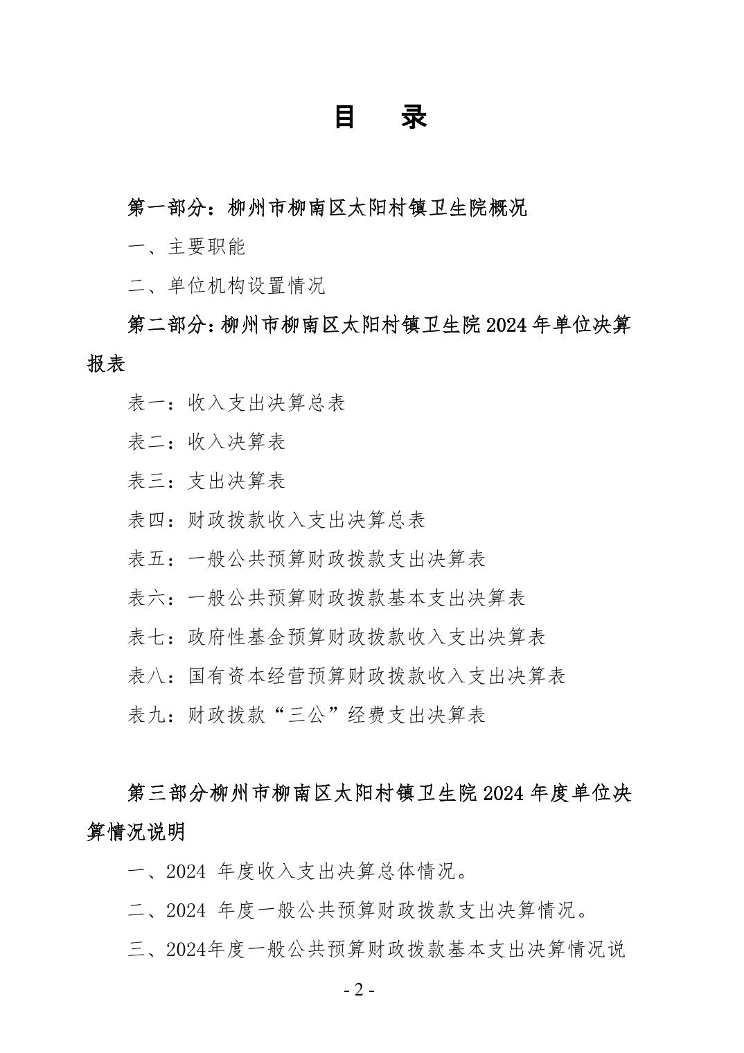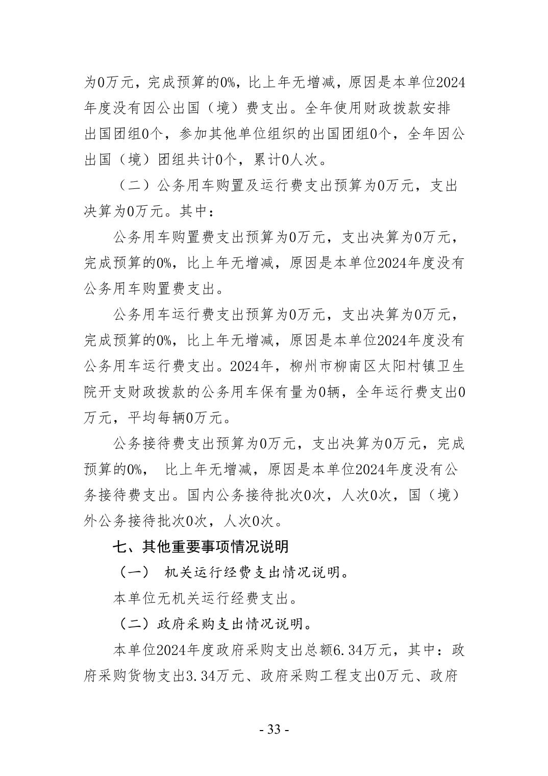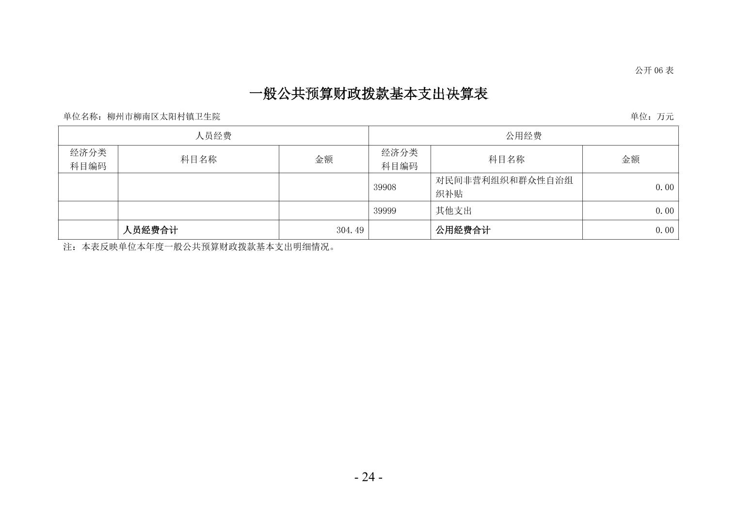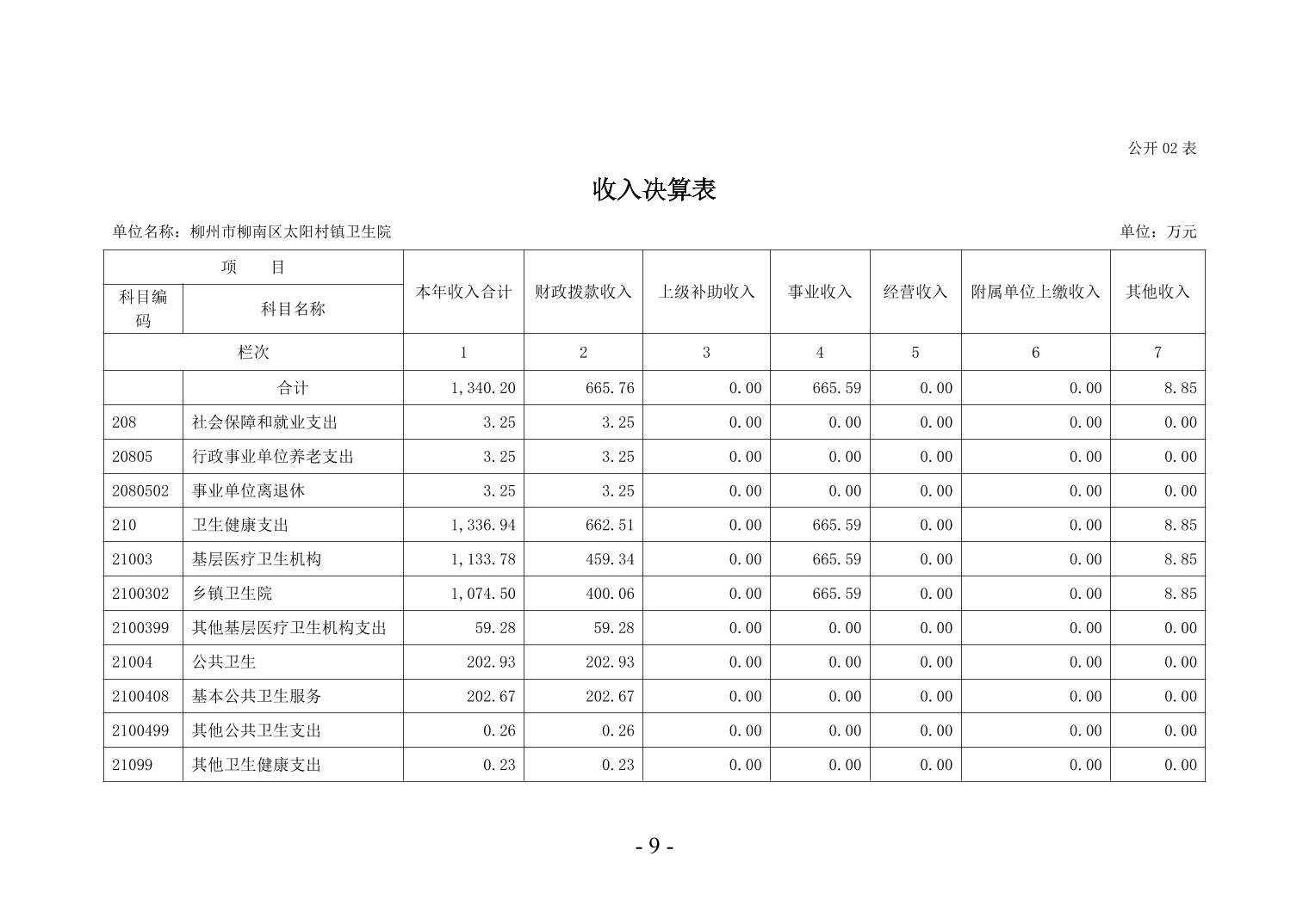 柳州市柳南区太阳村镇卫生院2024年度单位决算公开