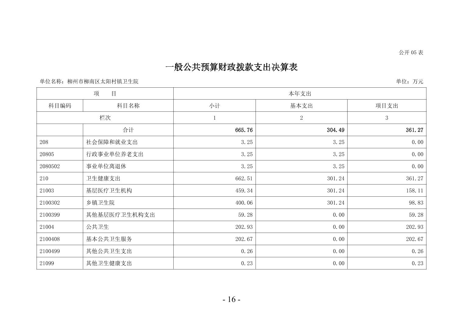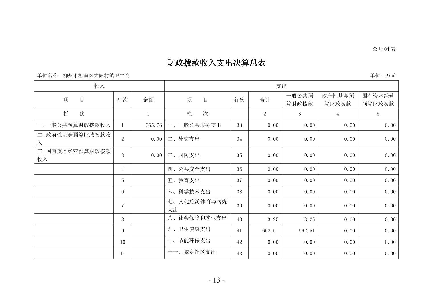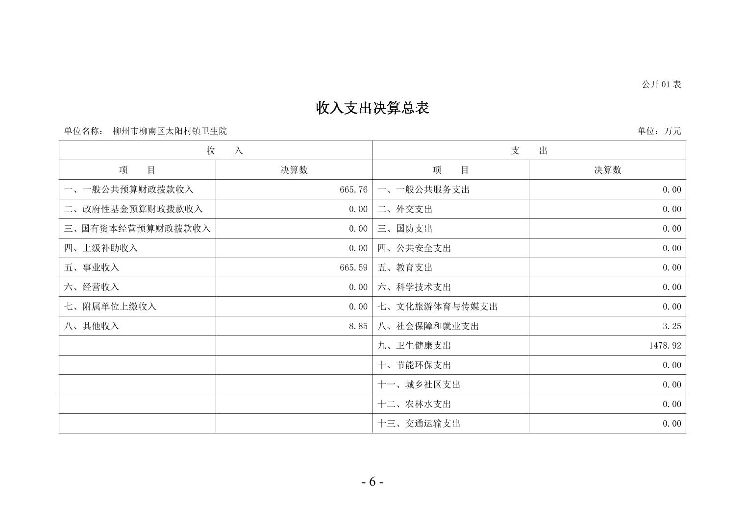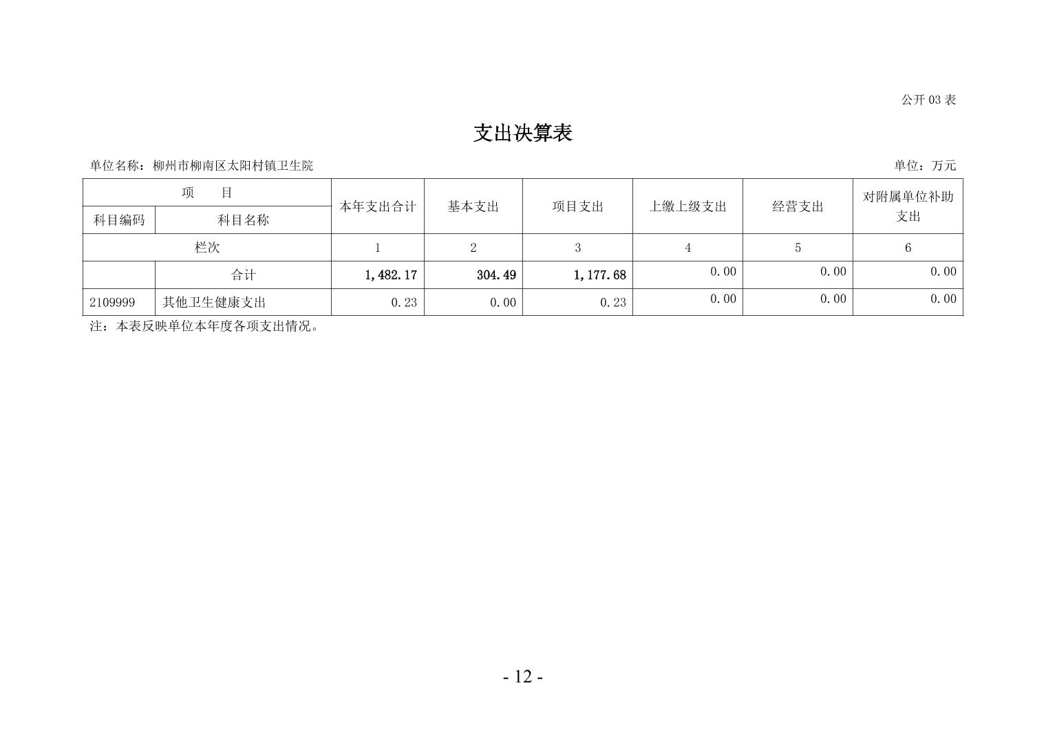 柳州市柳南区太阳村镇卫生院2024年度单位决算公开