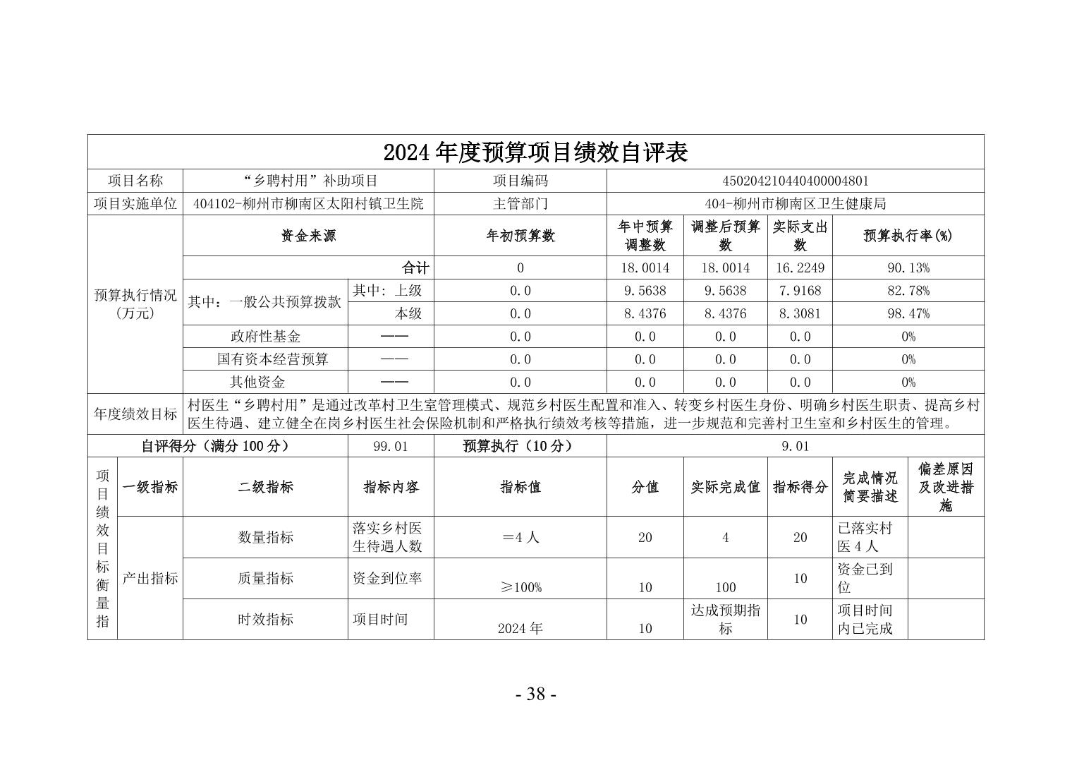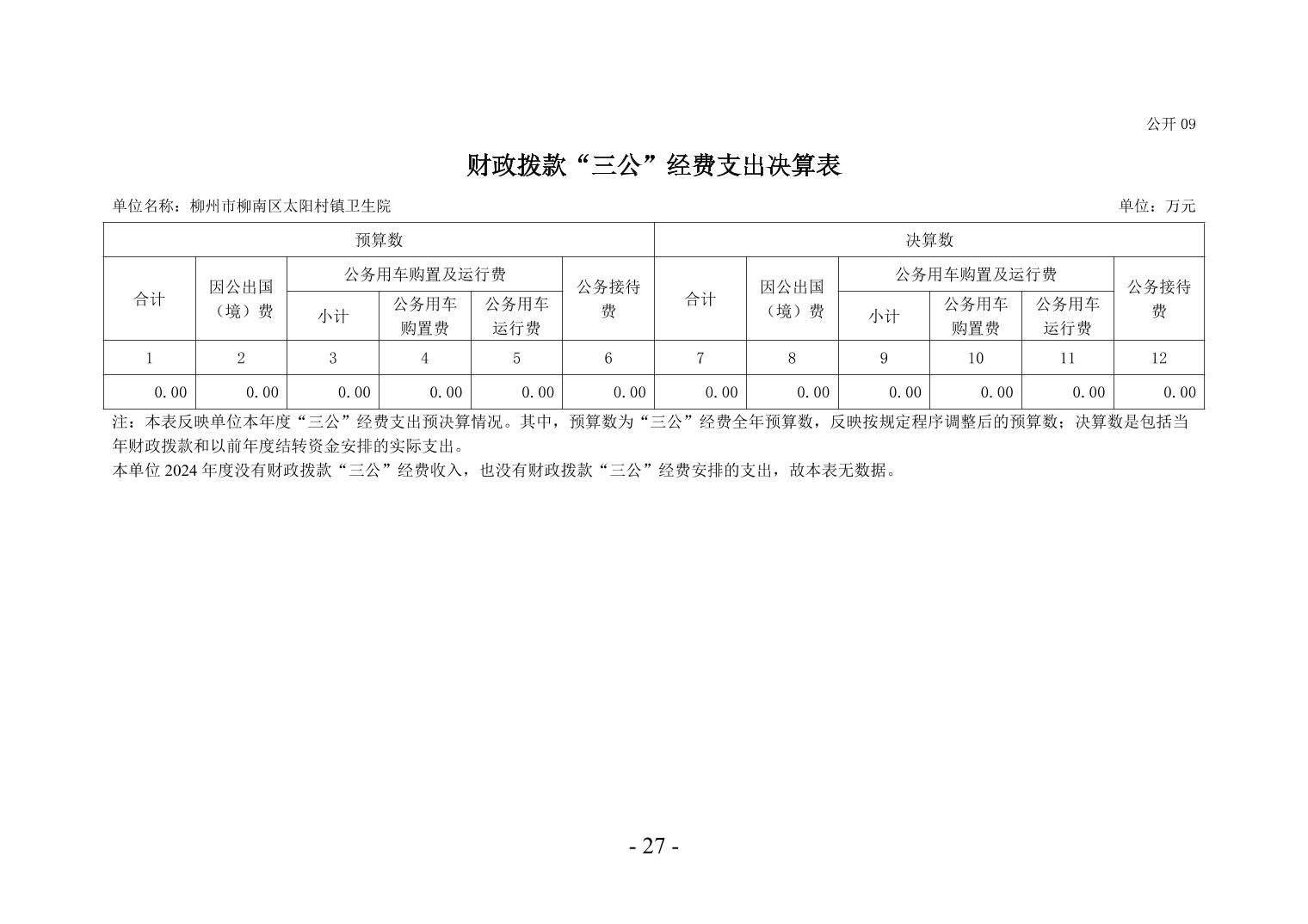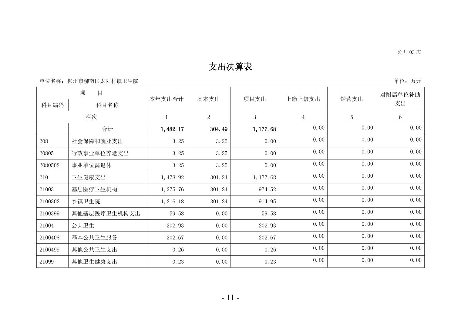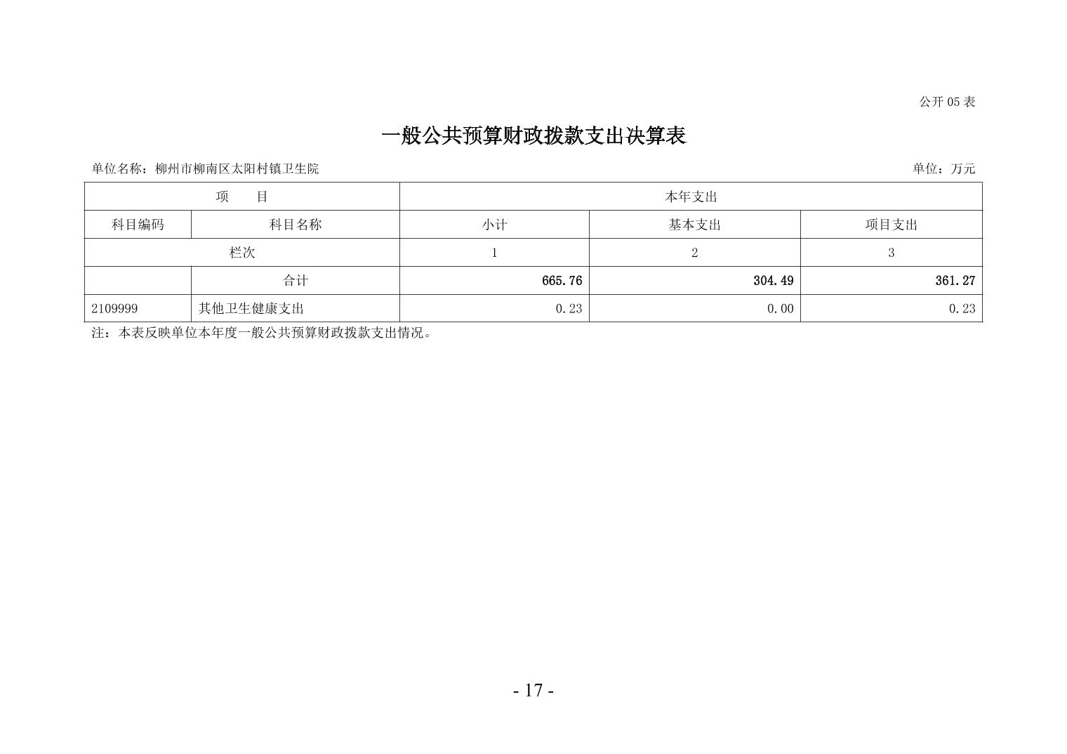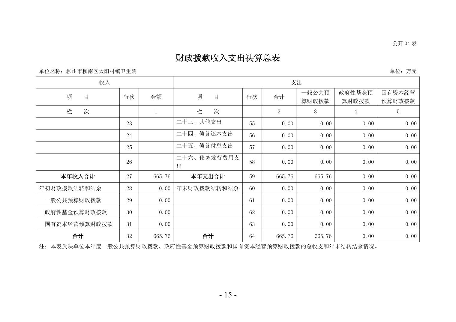 柳州市柳南区太阳村镇卫生院2024年度单位决算公开