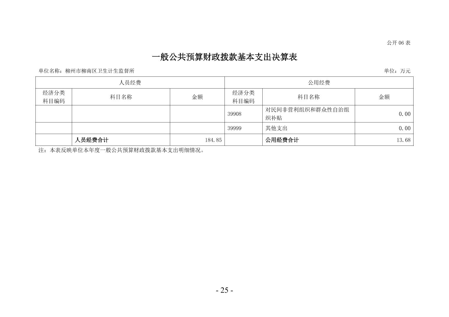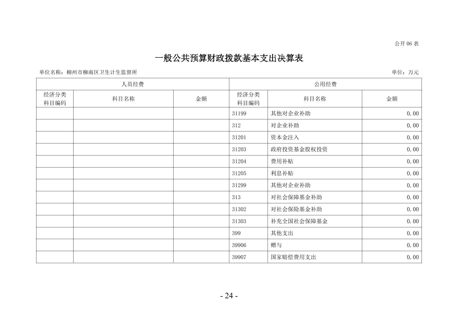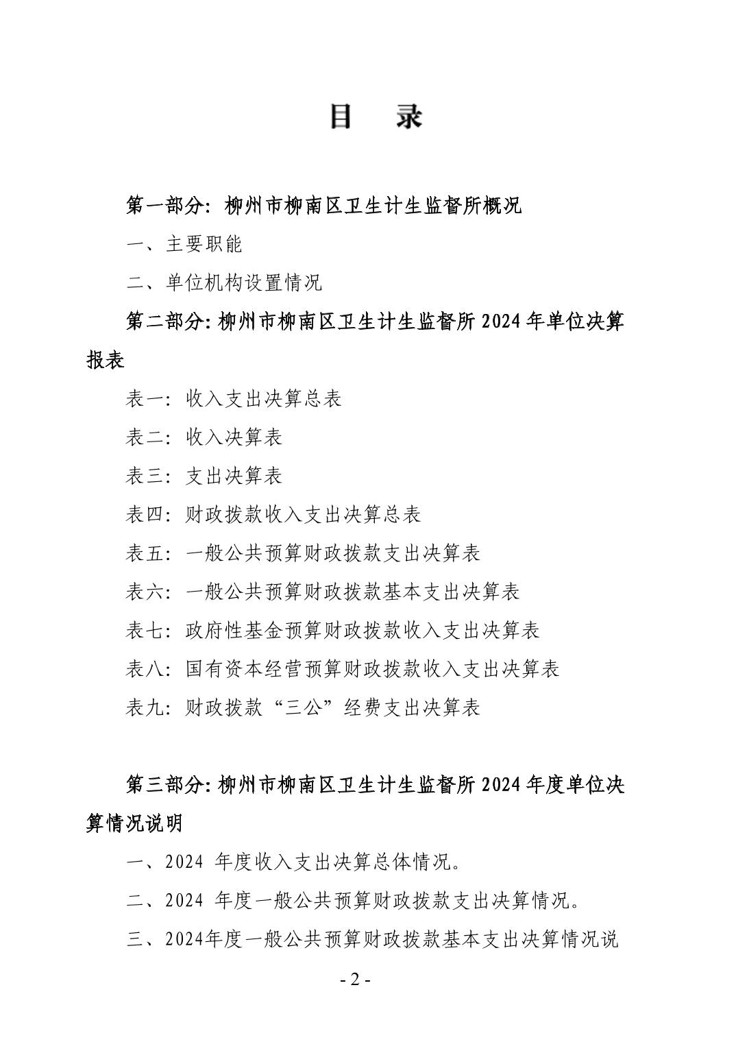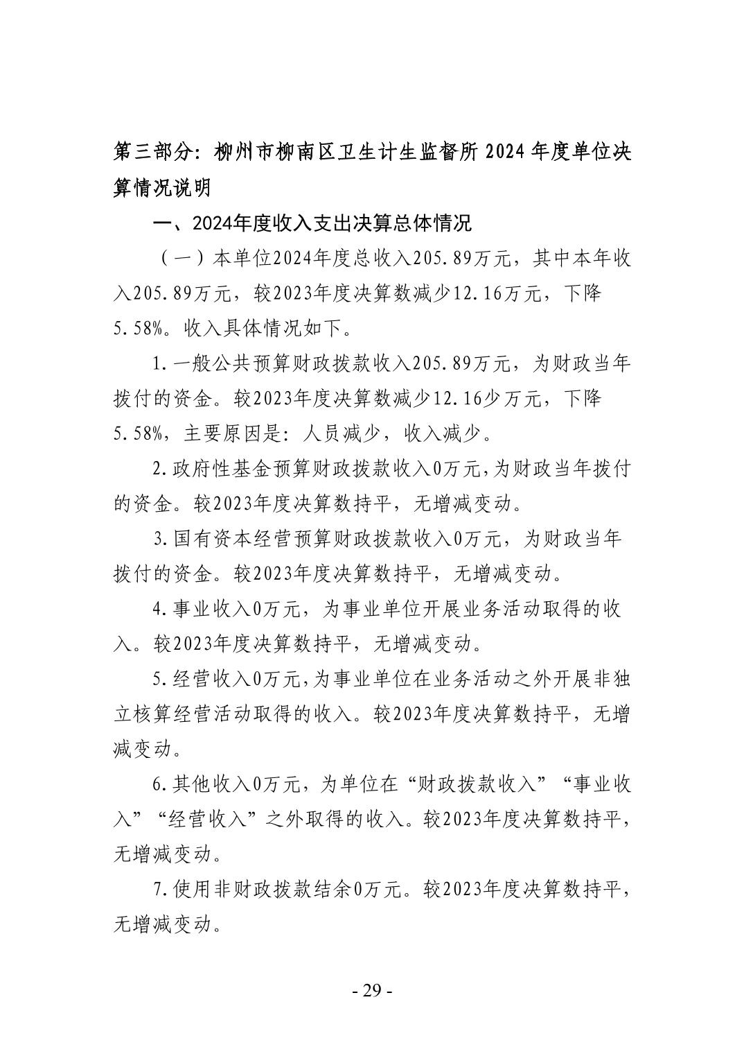 柳州市柳南区卫生计生监督所2024年度单位决算公开