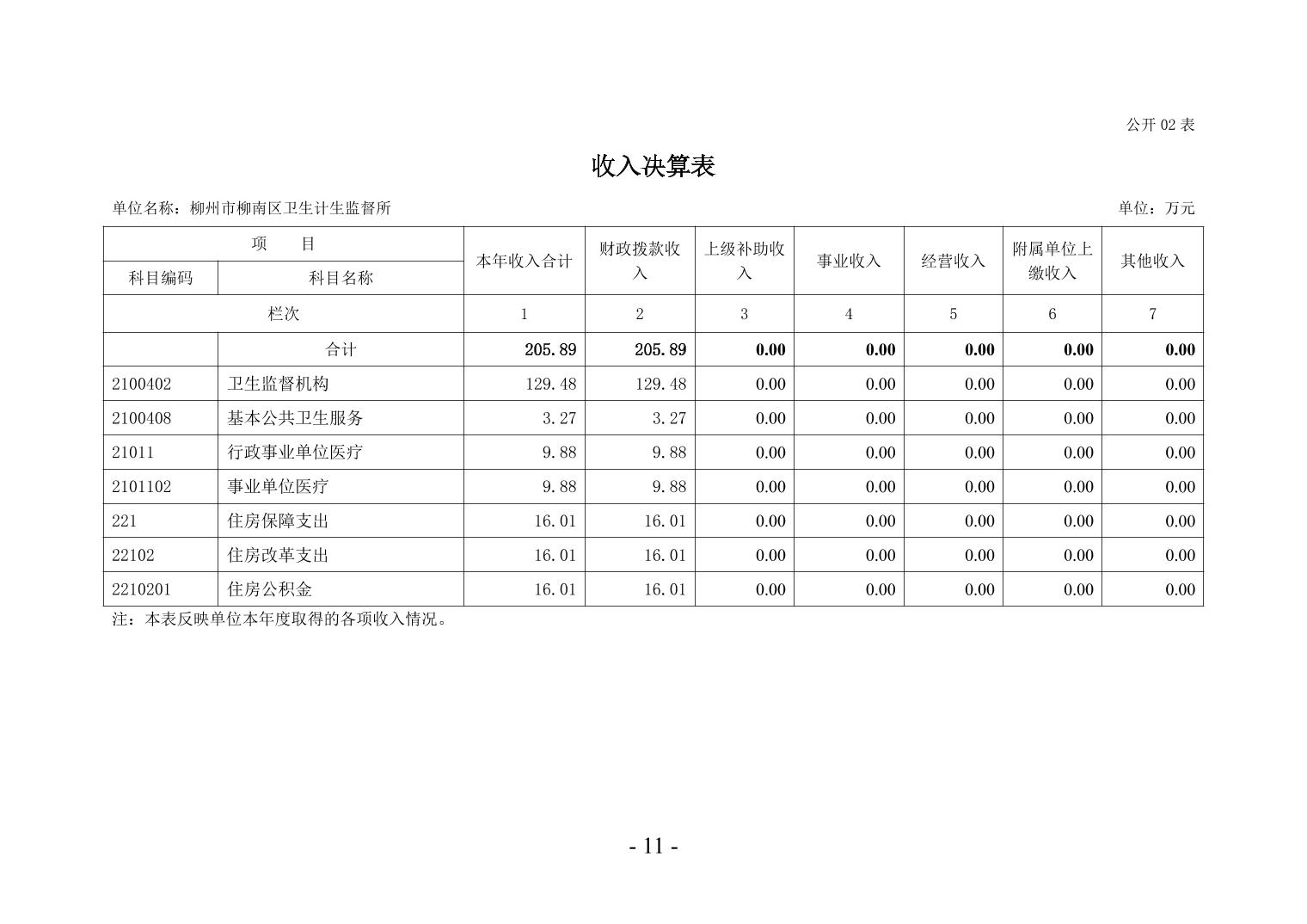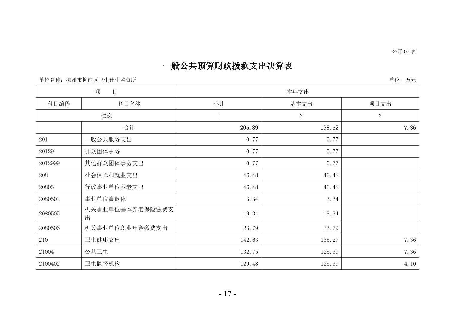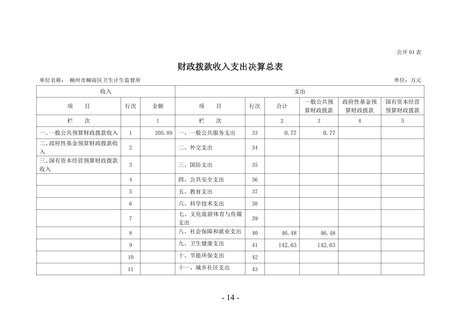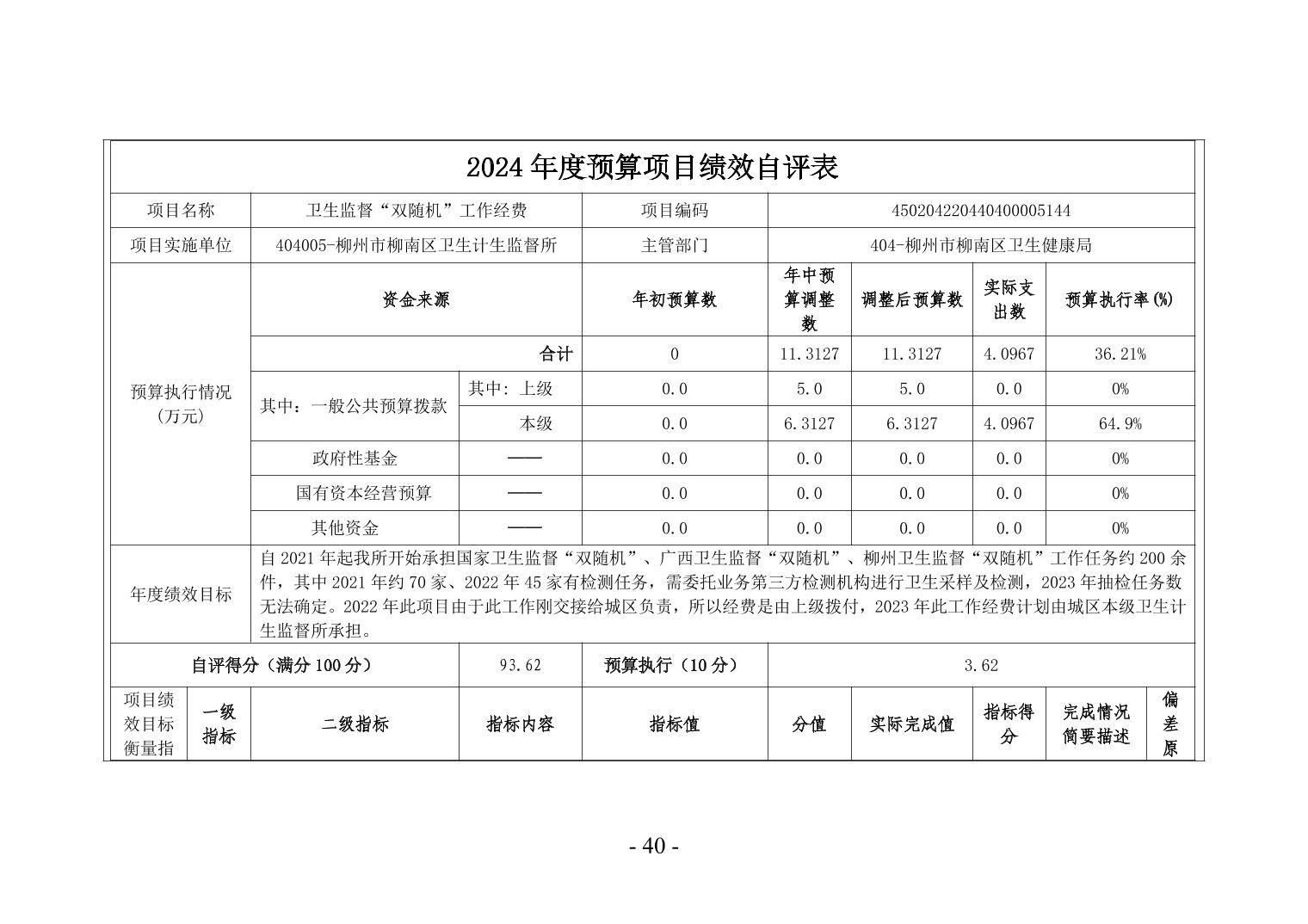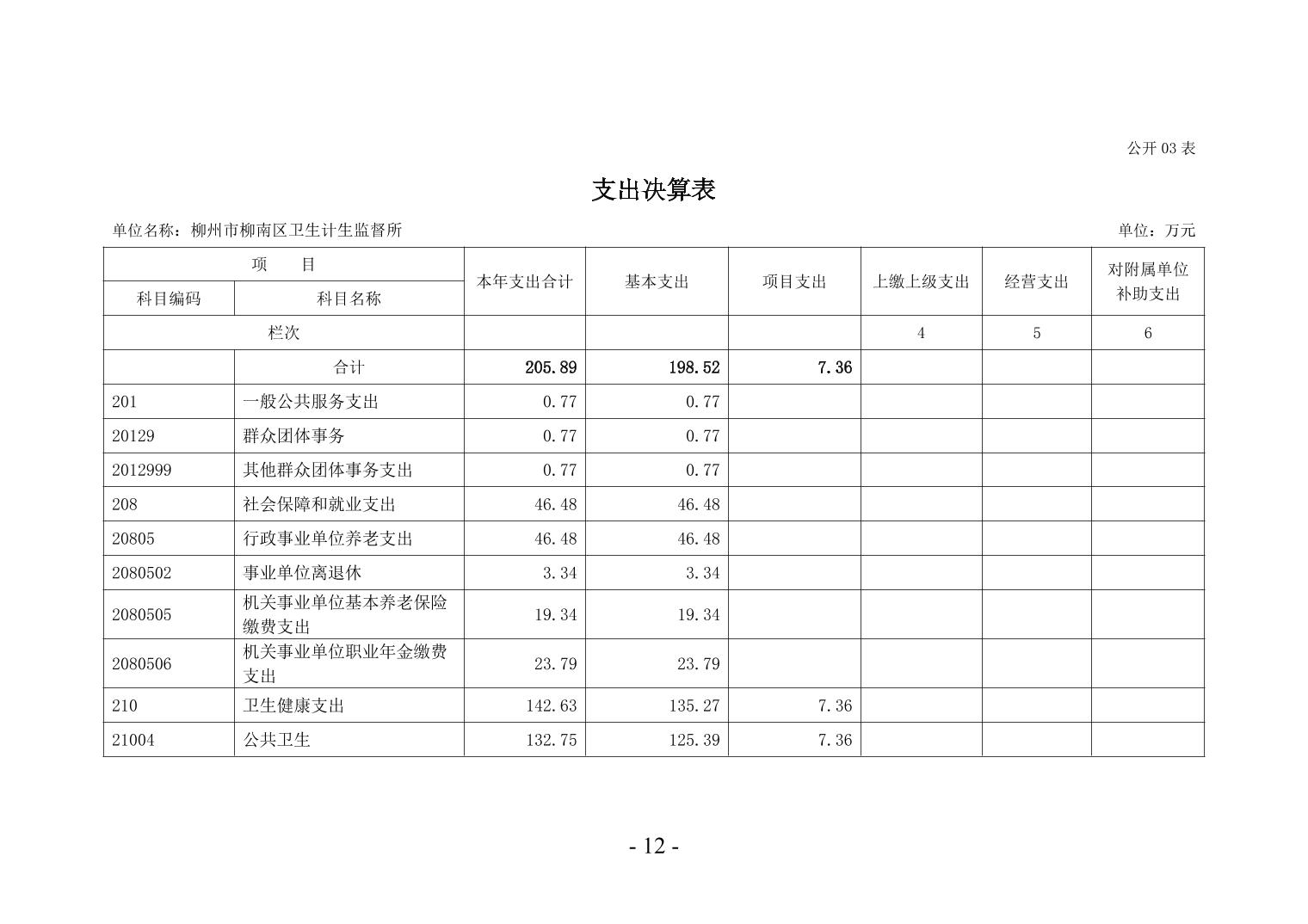 柳州市柳南区卫生计生监督所2024年度单位决算公开