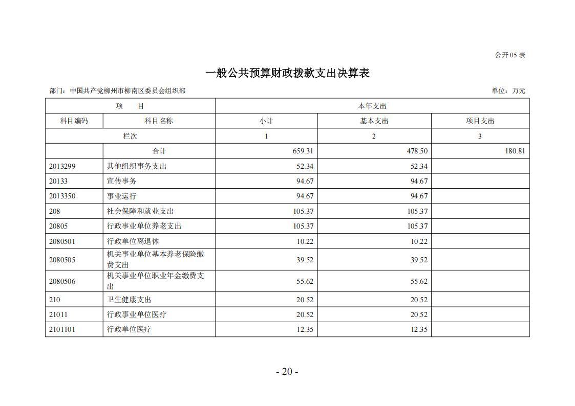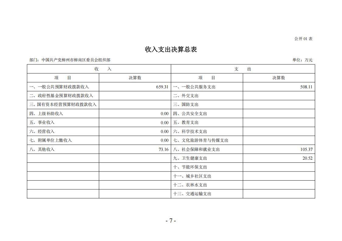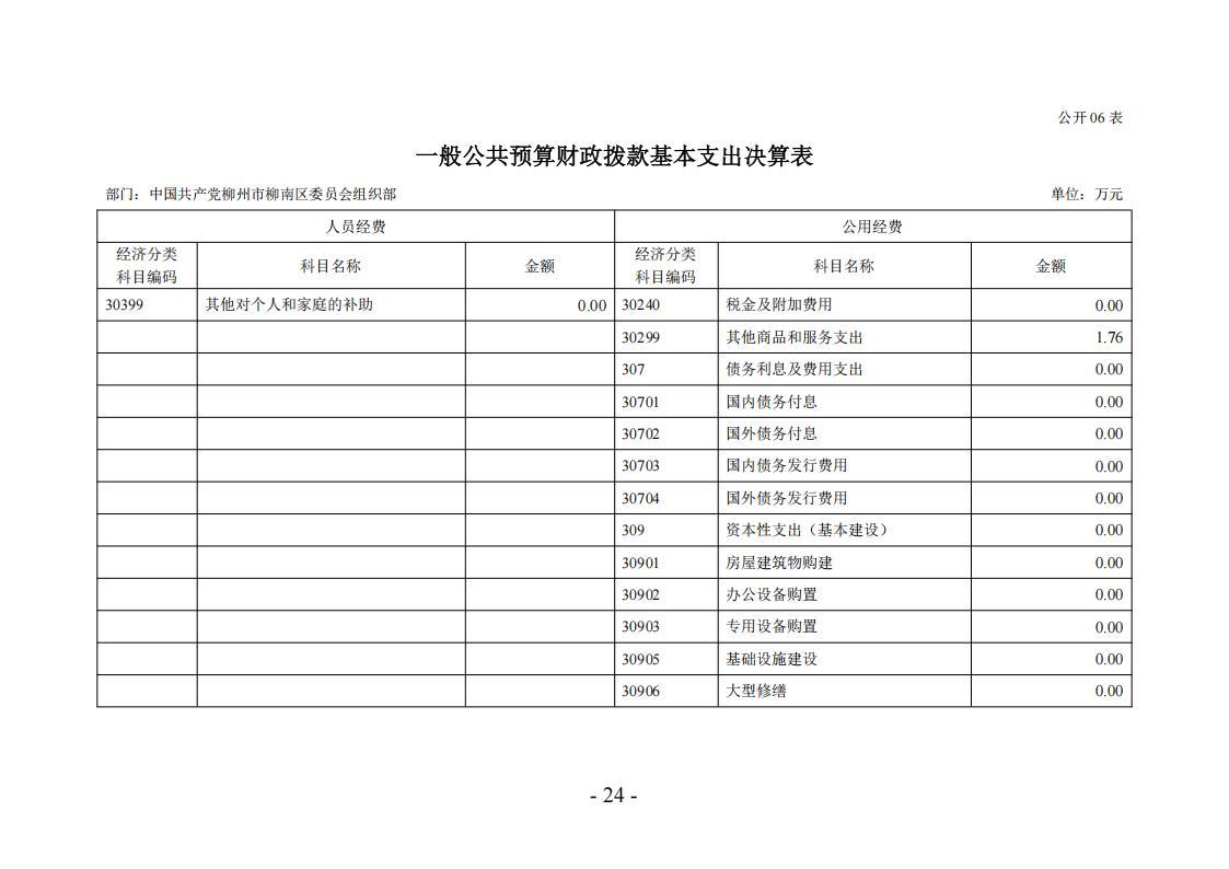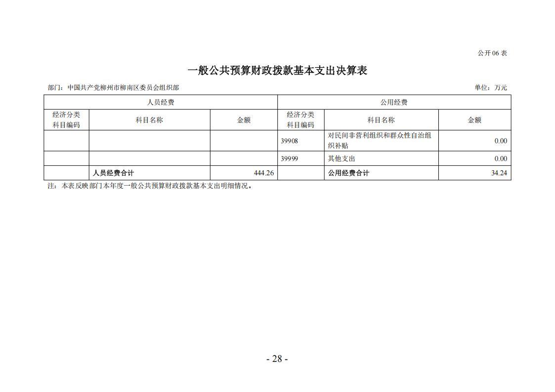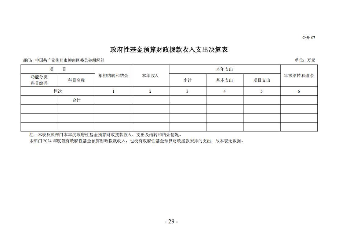 中国共产党柳州市柳南区委员会组织部2024年度部门决算公开