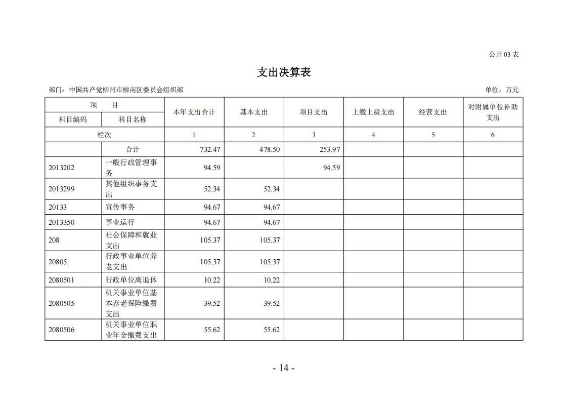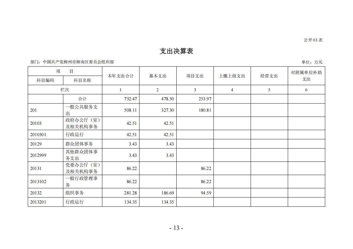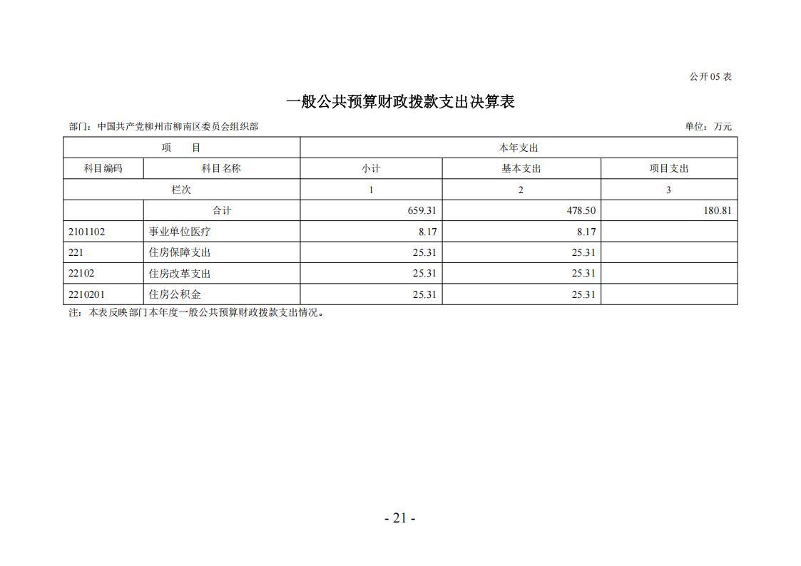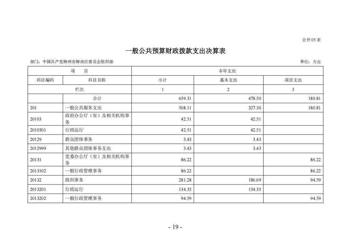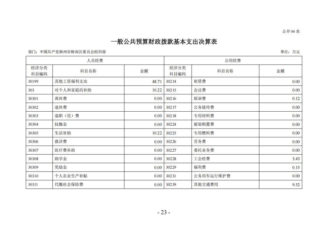 中国共产党柳州市柳南区委员会组织部2024年度部门决算公开