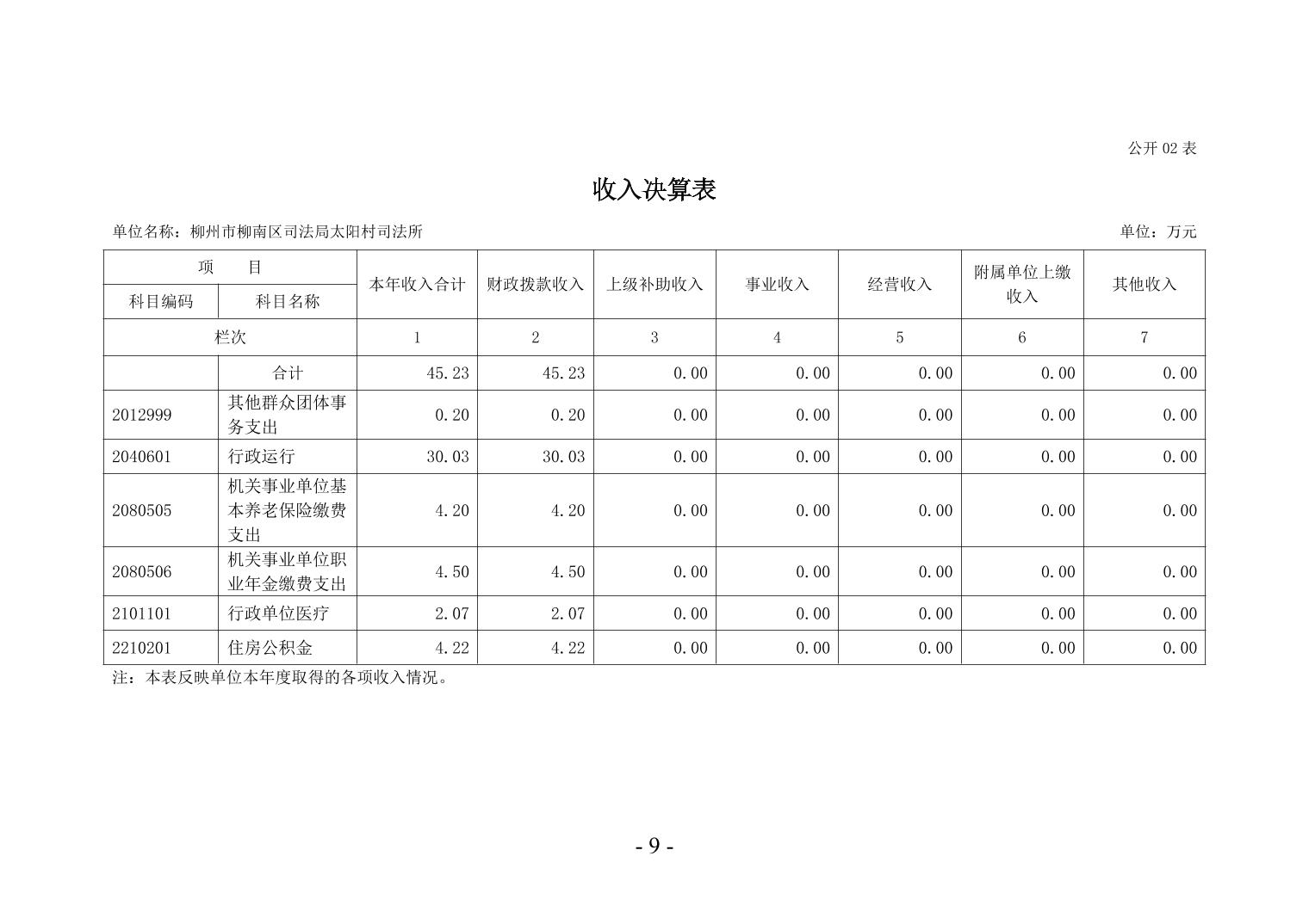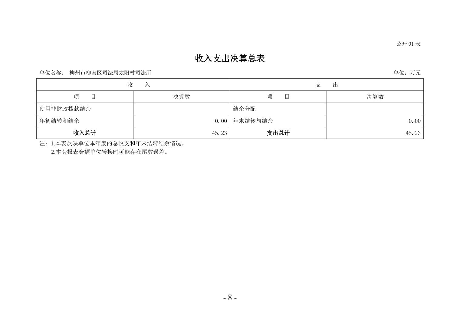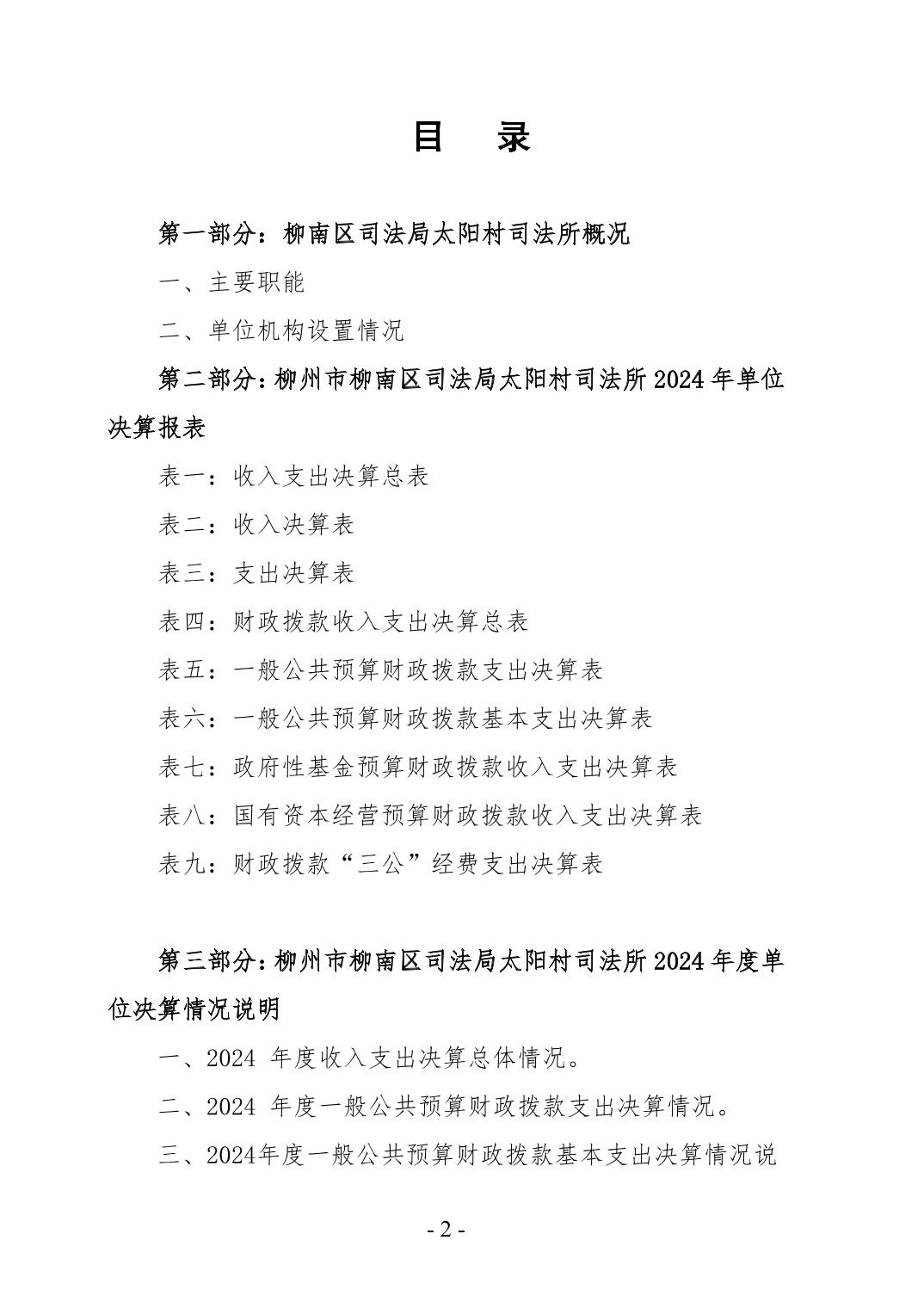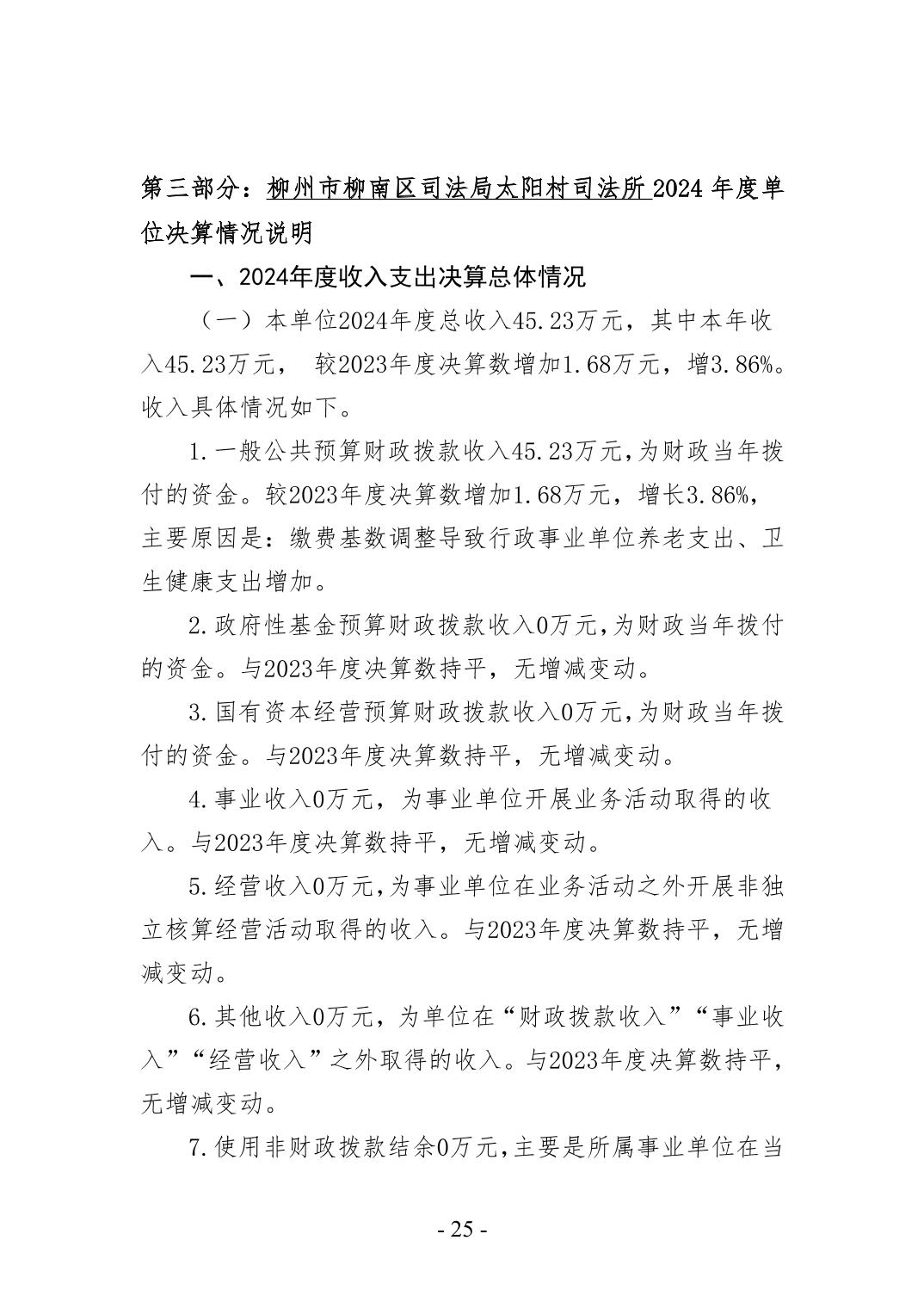 柳州市柳南区司法局太阳村司法所2024年度决算公开