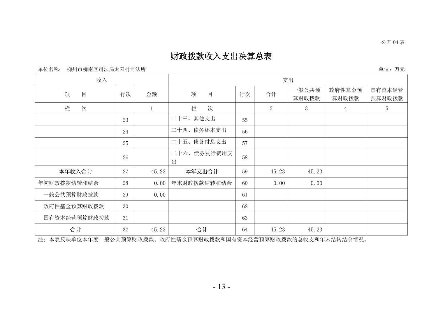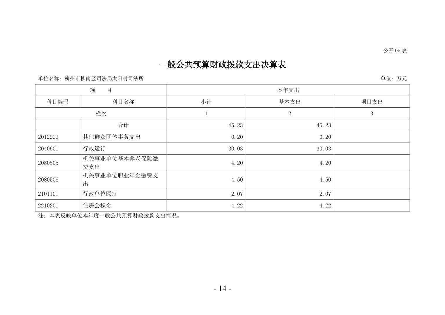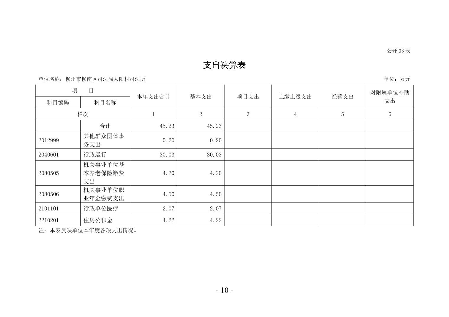 柳州市柳南区司法局太阳村司法所2024年度决算公开