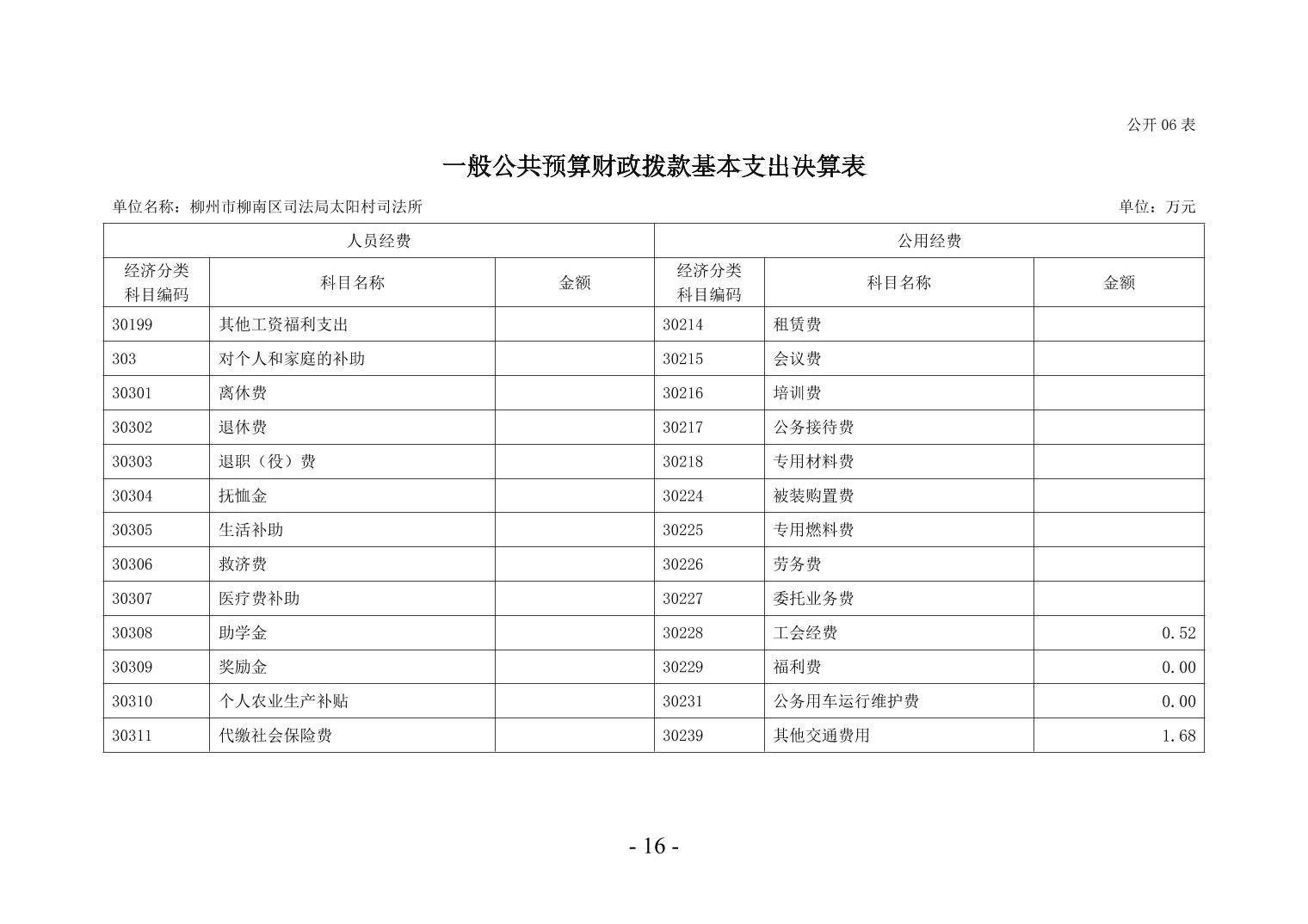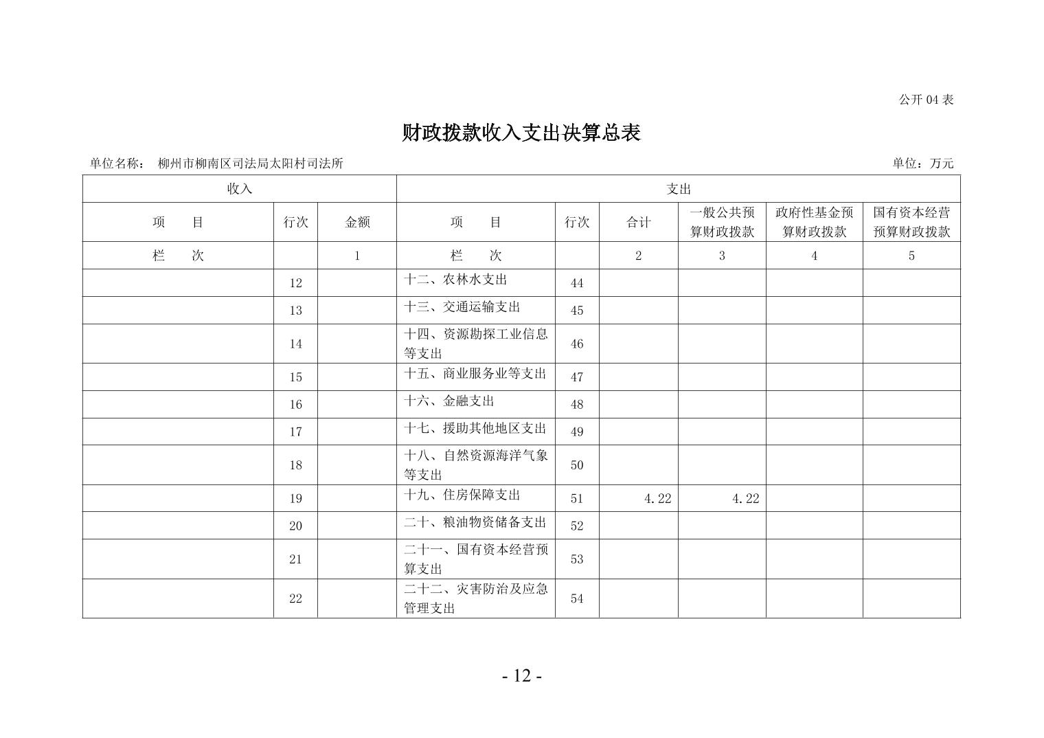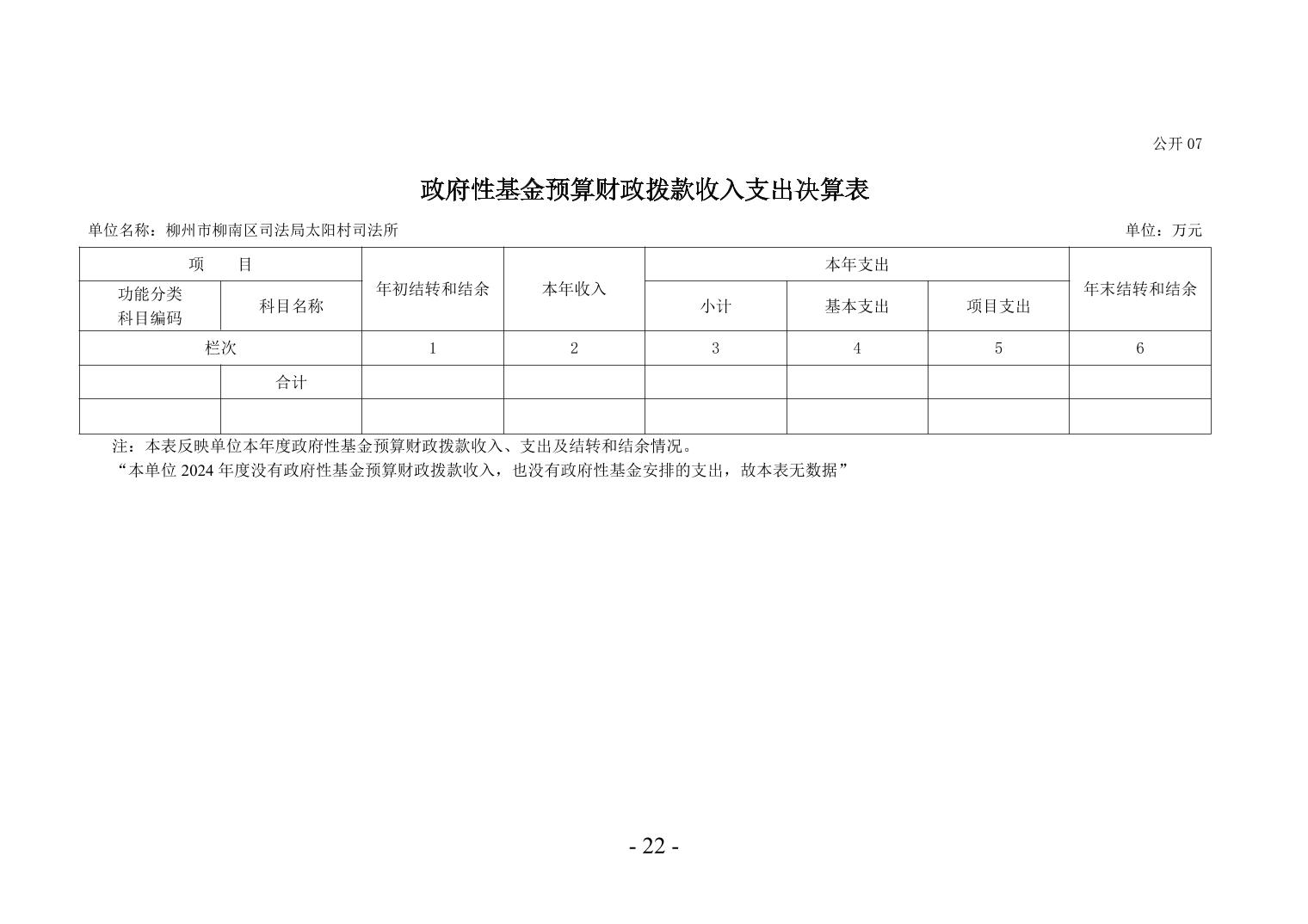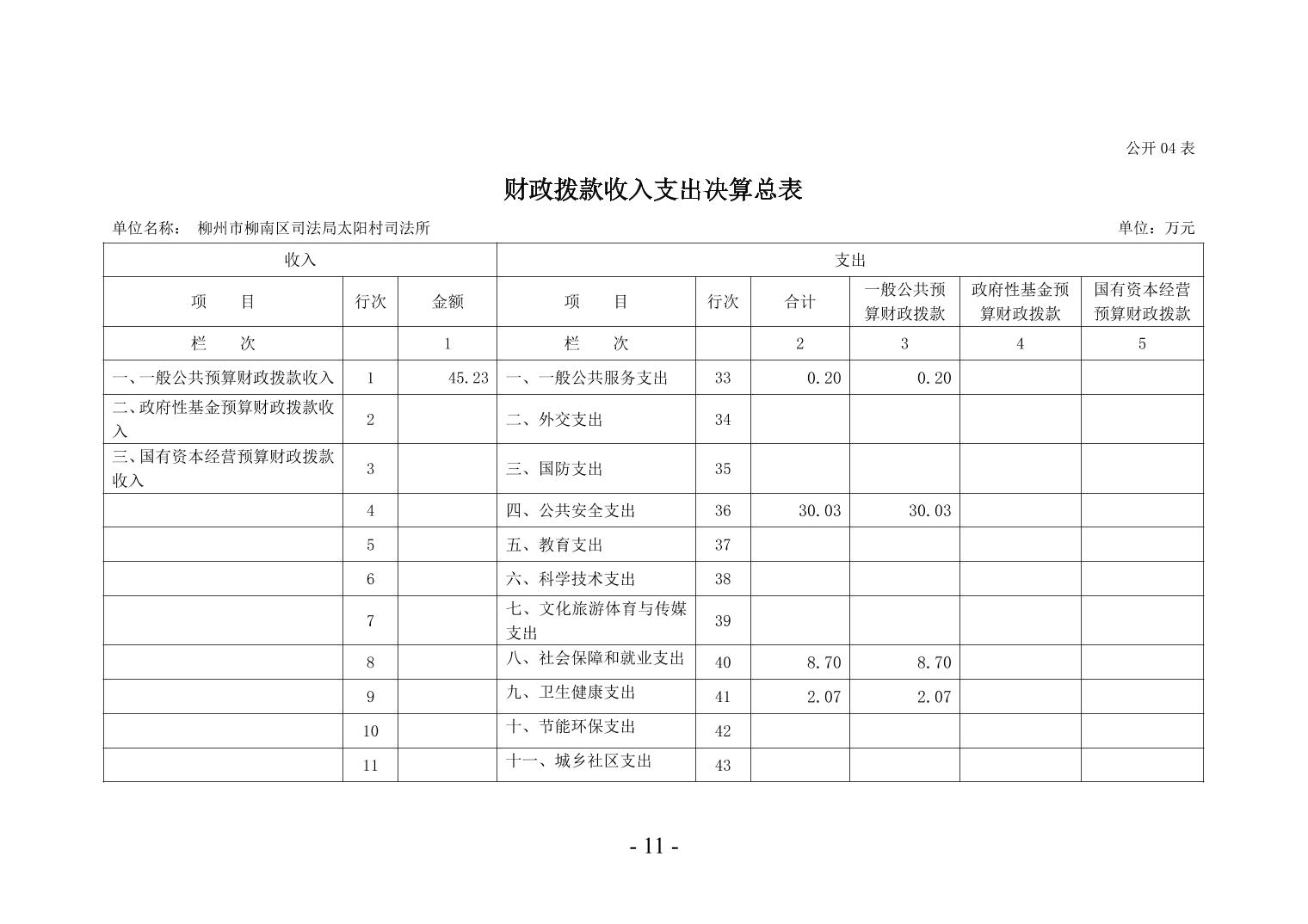 柳州市柳南区司法局太阳村司法所2024年度决算公开