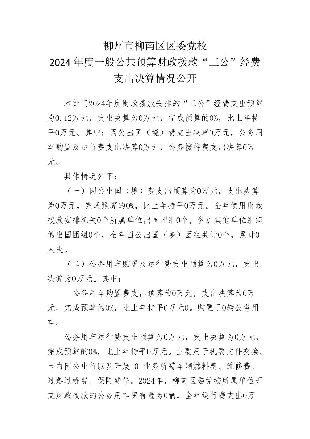 柳州市柳南区柳南区委党校2024年度一般公共预算财政拨款“三公”经费支出决算情况公开
