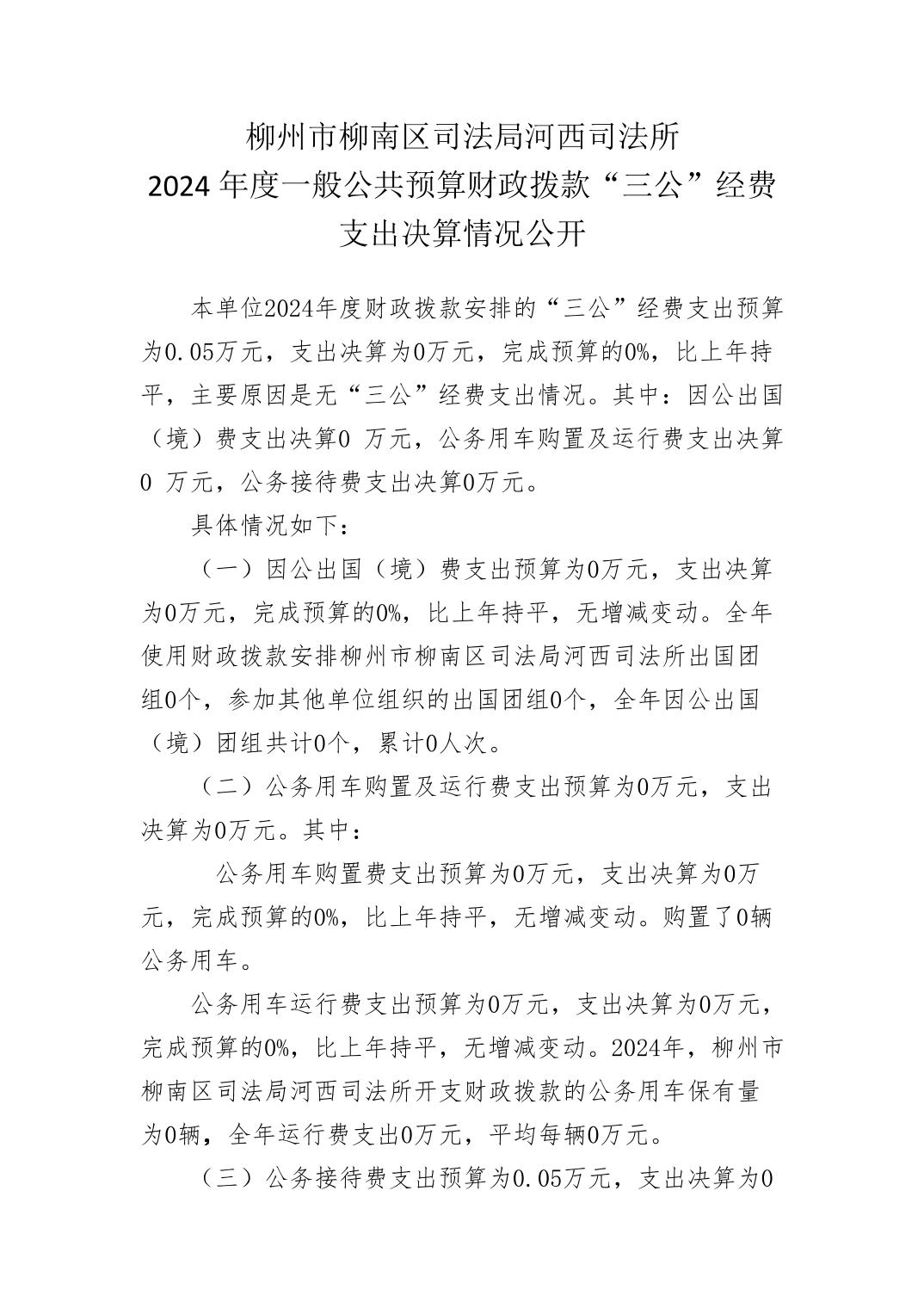 柳州市柳南区司法局河西司法所2024年度一般公共预算财政拨款“三公”经费支出决算情况公开