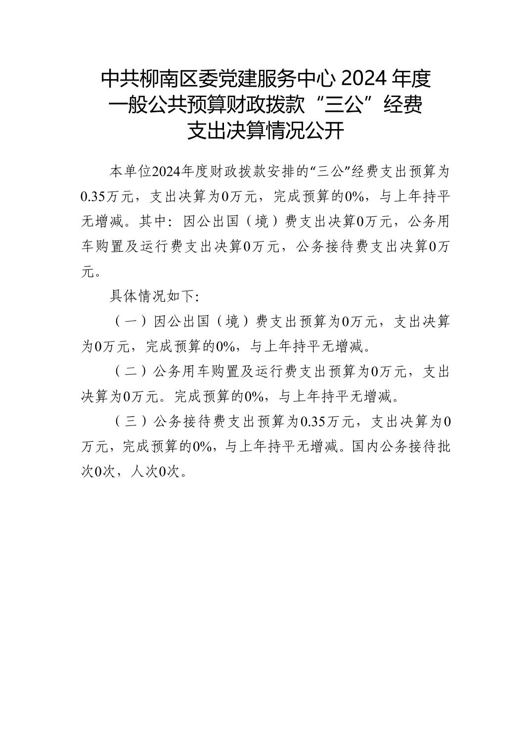 中国共产党柳南区委党建服务中心2024年度一般公共预算财政拨款“三公”经费支出决算情况公开