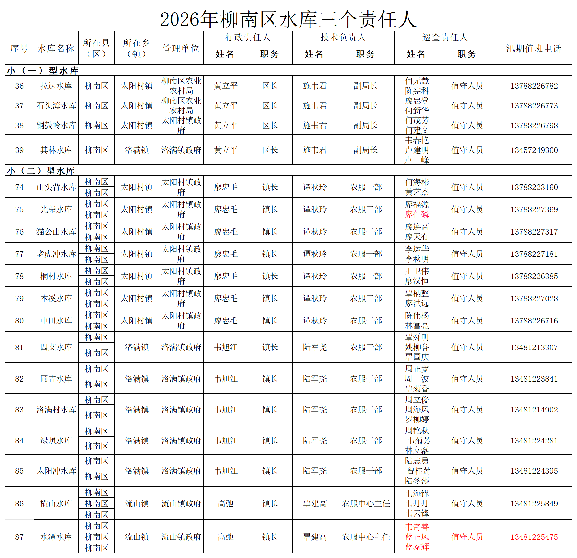 (柳南)2026年柳南区水库三个责任人