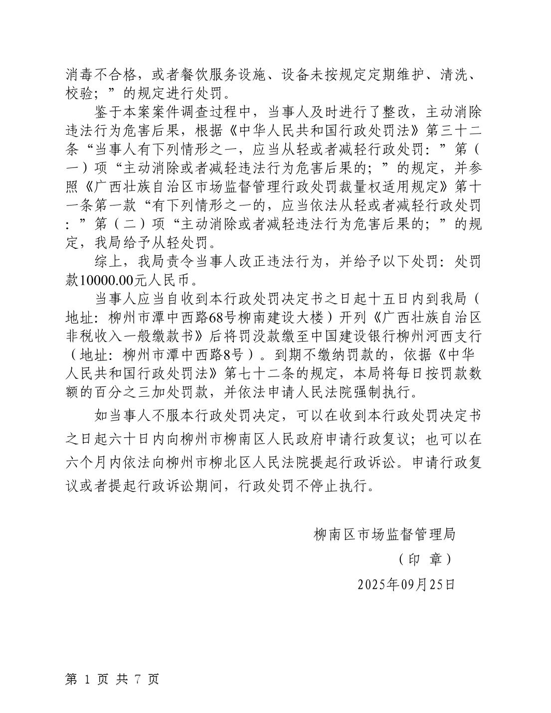 柳南区市场监督管理局行政处罚案件信息公开(2025年9月案件9.26)
