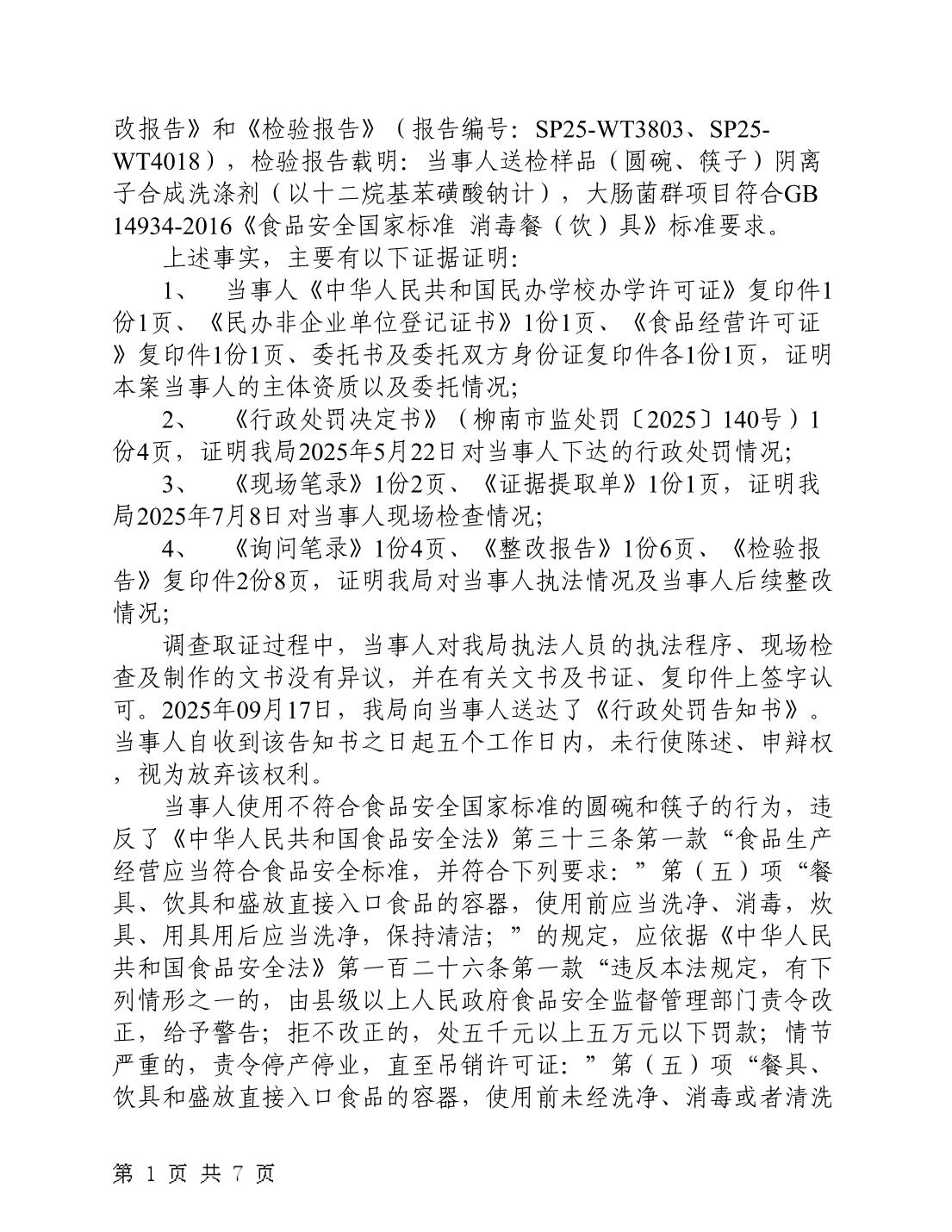 柳南区市场监督管理局行政处罚案件信息公开(2025年9月案件9.26)