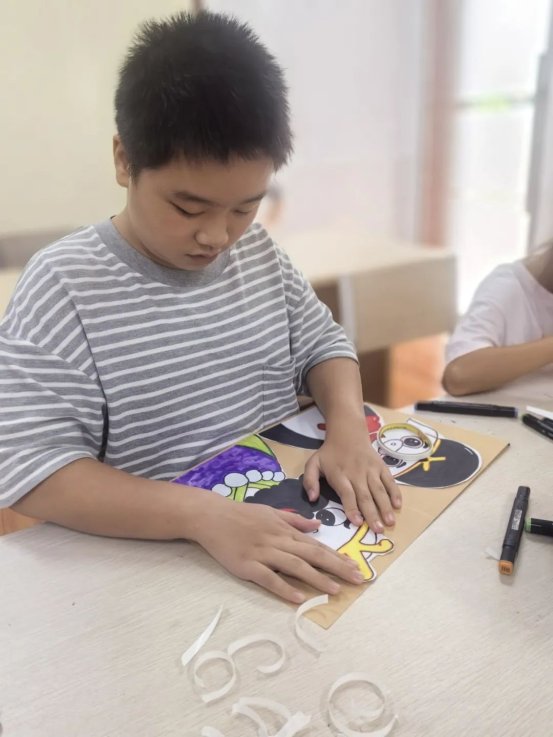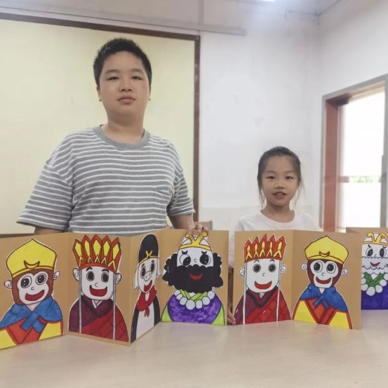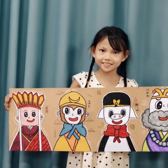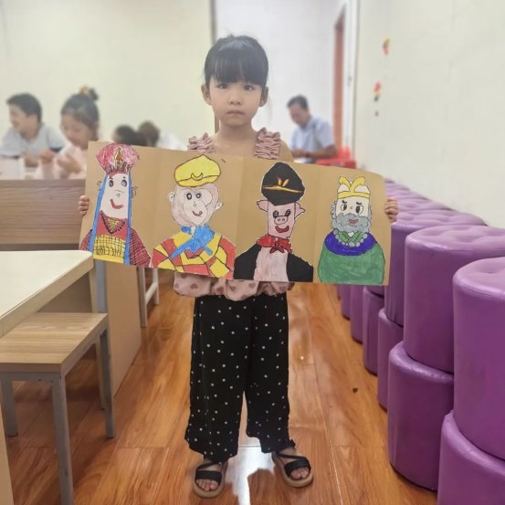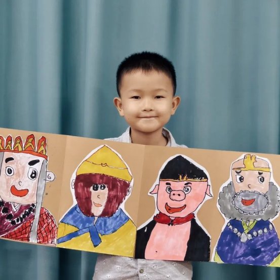 课堂上,老师不仅细致讲解水彩晕染技巧与色彩层次搭配,还创新引入剪贴、拼接等创作方式,为孩子们打开多元艺术大门。在老师的耐心引导下,孩子们充分释放想象力,将奇思妙想化作一幅幅绚丽作品:有的绘制出祥云环绕的传统云肩图案,精致典雅;有的创作童趣盎然的《西游记》折页绘本,生动鲜活。画纸上,红与蓝交融、黄与绿碰撞,晕染出斑斓世界;教室里,孩子们时而眉头紧锁专注创作,时而露出会心笑容,专注与喜悦交织成最动人的画面。小小的画笔,不仅让他们描绘出心中故事,更在创作过程中学会了耐心、细致与自我表达。