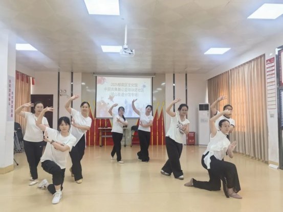 本次培训由专业舞蹈教师蒋瑜媛授课,内容涵盖古典舞基础身韵、软开与控制力训练、动作节奏与气息节奏的配合等多个方面。课堂氛围温润而专注,学员们用一次次认真练习,将“立如芍药、行如游龙”的舞姿演绎得愈发灵动自然。从初识到沉浸,从生涩到舒展,舞蹈成为她们身与心之间最美的联结。