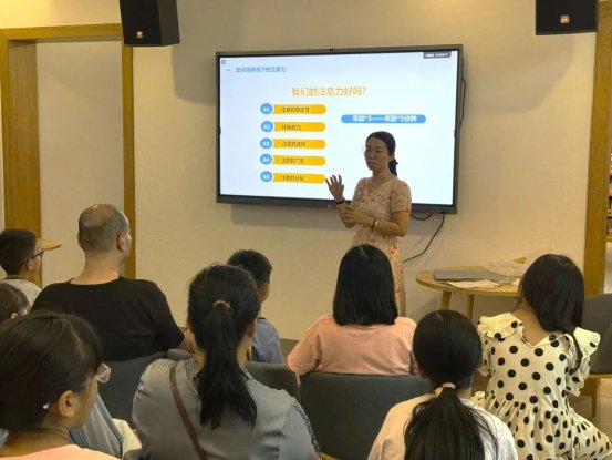 在讲座中,均悦老师从“学习力的核心构成”切入,强调注意力、记忆力、理解力三者之间的相互作用。她结合新学期孩子们常见的学习状态,指出提高学习力的关键不在于死记硬背,而是方法与习惯的养成。通过案例分析和现场示范,老师向家长们展示了如何在日常学习与生活中渗透训练,例如利用分阶段目标提升孩子的自我管理能力,用思维导图帮助梳理知识框架,用游戏化方式激发学习兴趣。