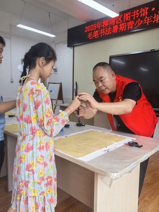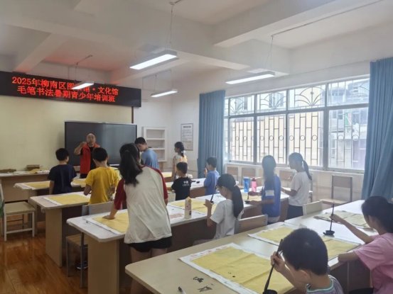 墨香袅袅润童心,笔墨传承续新篇。为大力弘扬中华优秀传统文化,让青少年在暑期感受书法艺术的独特魅力,2025年7月15日至7月20日,柳南区图书馆联合柳南区文化馆精心举办的 “毛笔书法暑期青少年班” 圆满落幕。这场为期六天的书法盛宴,吸引了辖区内众多青少年踊跃参与,为孩子们的暑期生活增添了一抹浓郁的文化色彩。