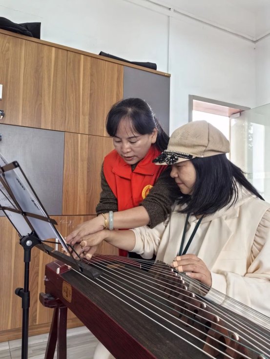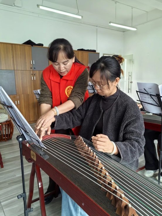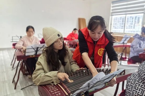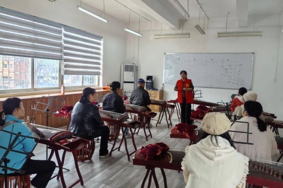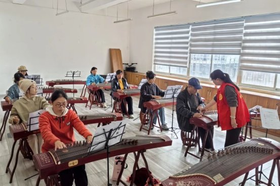 课堂上,老师带领学员完成经典曲目《云水禅心》片段的练习,帮助学员初步掌握乐曲情感表达与风格把控。经过6次课程,学员从“零基础”逐步熟悉古筝演奏基础,实现了传统民乐技能的初步入门,同时加深了对民族文化的了解。
