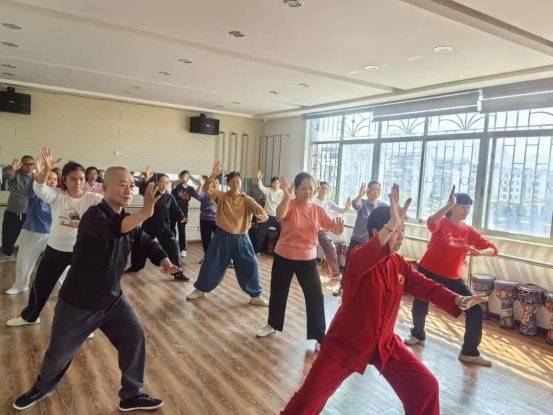 同时,黄波老师引入腹式呼吸法,引导学员在动作舒展时吸气、发力时呼气,让呼吸与动作形成“一动一息”的配合,不少学员反馈“练习时明显感觉情绪变舒缓了”。