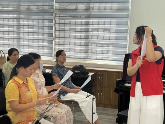在课堂上,授课教师江媛媛以专业的教学方法和细致的指导,带领学员们循序渐进地学习声乐。从认识发声部位、掌握气息技巧,到理解音高节拍、进行歌曲演绎,学员们在不断训练中收获成长。课堂氛围生动而充实,歌声或高亢嘹亮,或婉转悠扬,尽显声乐之美。