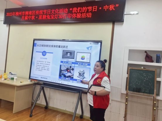 当中秋的皎洁月光邂逅前沿的 3D 打印技术,会碰撞出怎样的文化火花?2025年9 月30日下午,柳南区图书馆 “月满中秋・星糖兔宝灯 3D 打印体验” 活动,用 “传统 + 科技” 的独特打开方式,为参与者们打造了一场难忘的中秋文化盛宴,镌刻下满是温度与巧思的节日记忆。
