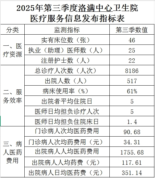 2025年第三季度医疗服务信息发布指标表(洛满中心卫生院)