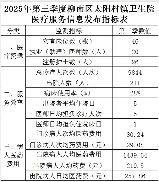 2025年第三季度医疗服务信息发布指标表(太阳村镇卫生院)