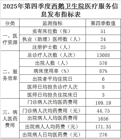 2025年第四季度西鹅卫生院医疗服务信息发布指标表