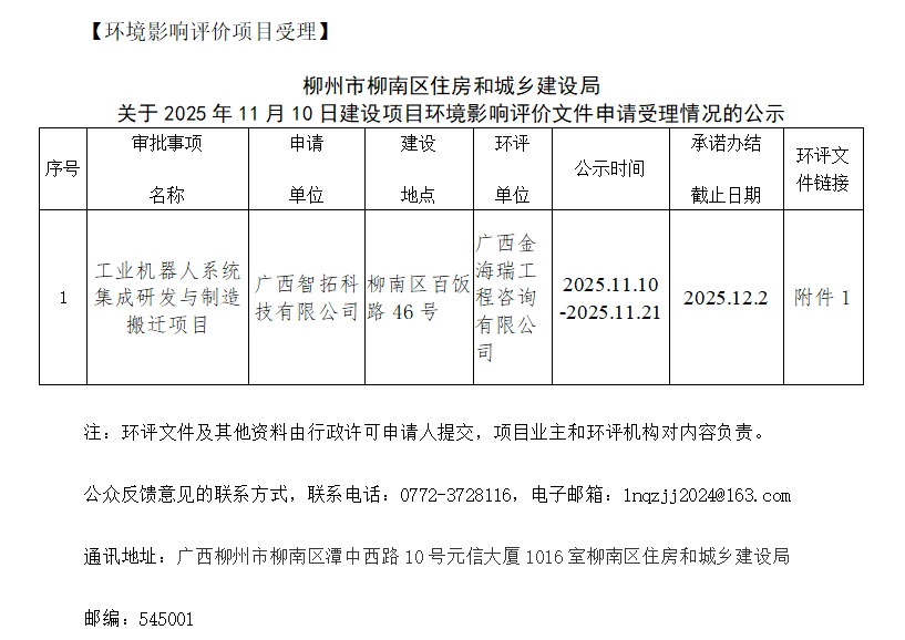 2025.11.10工业机器人系统集成研发与制造搬迁项目受理公示