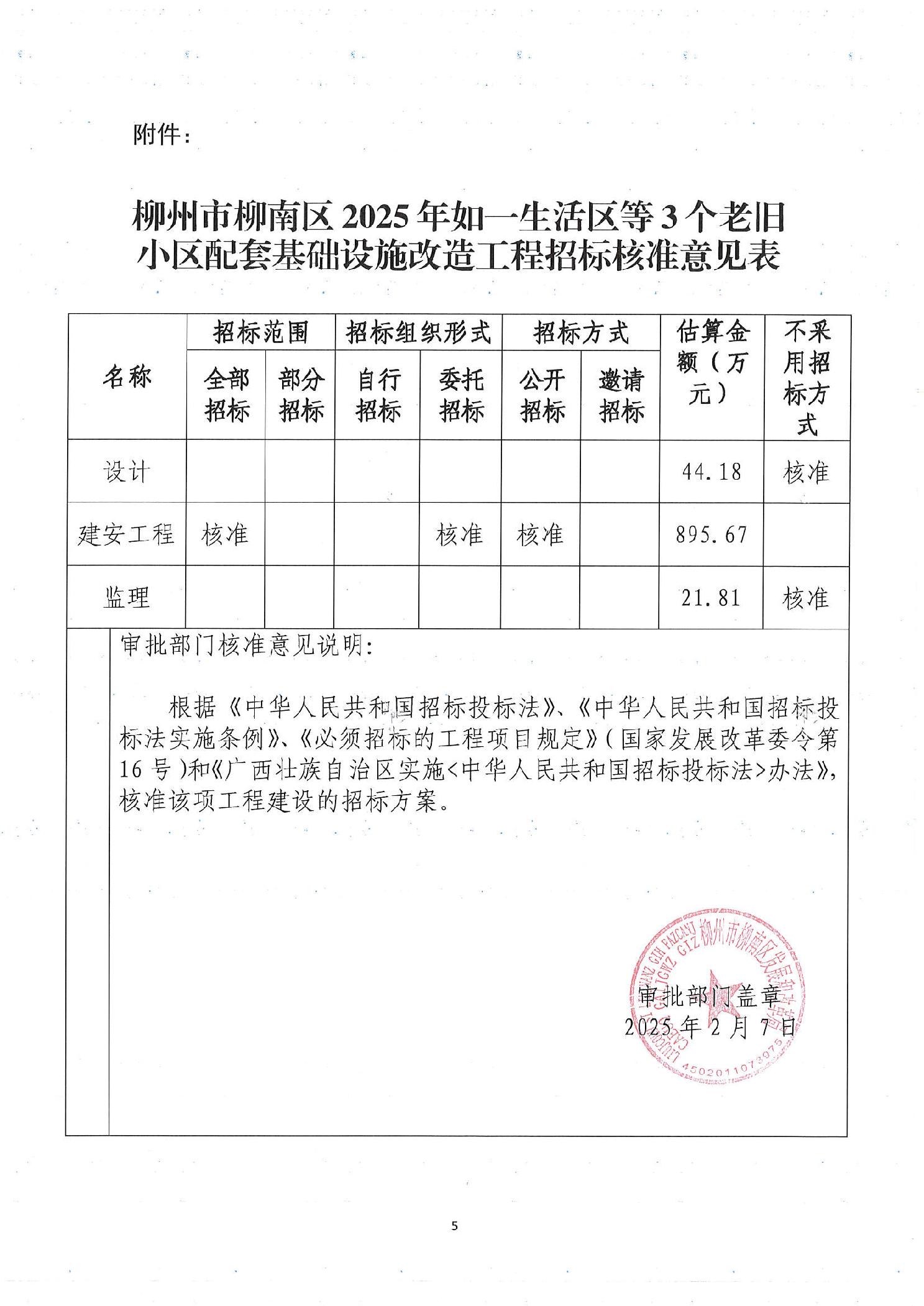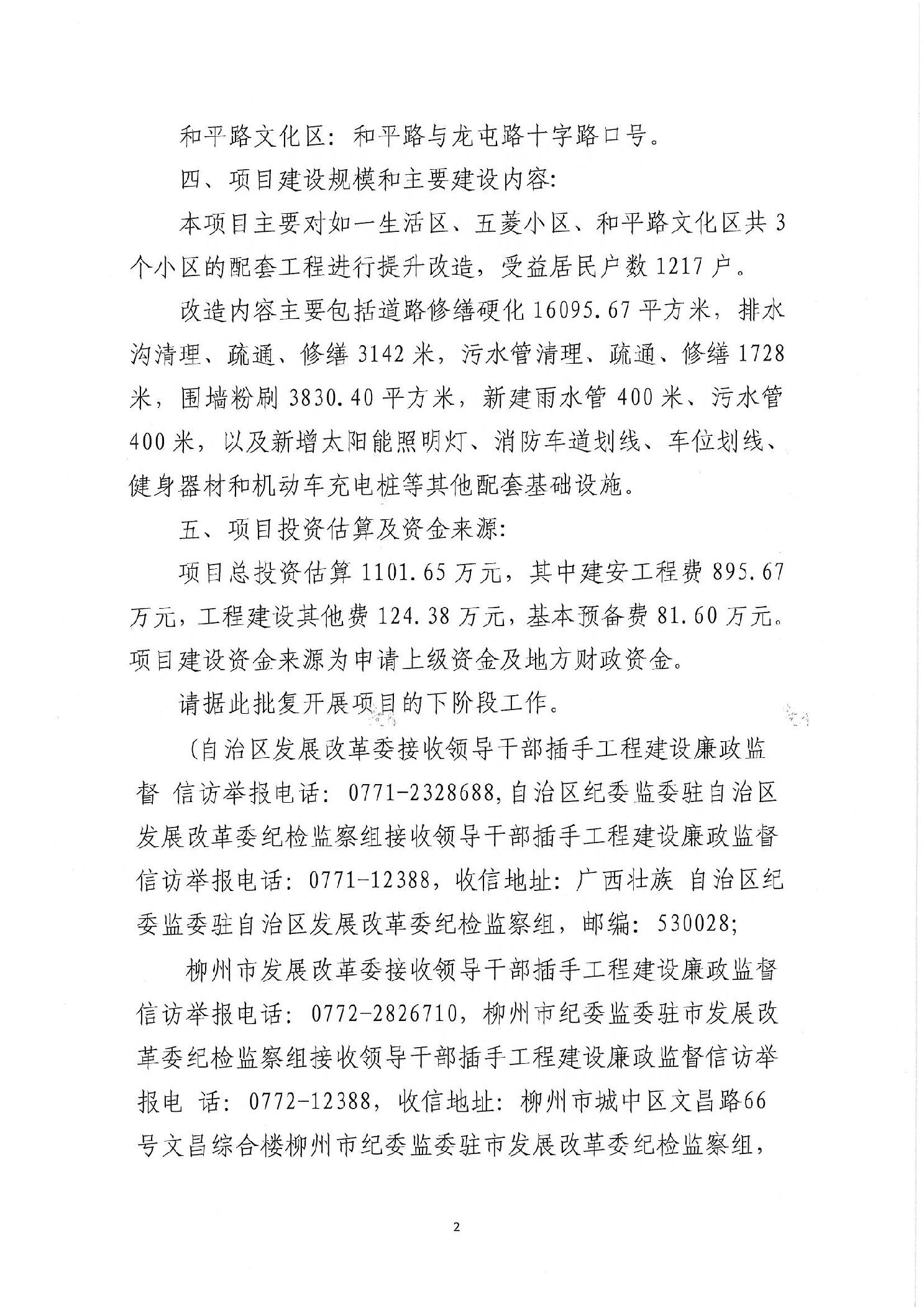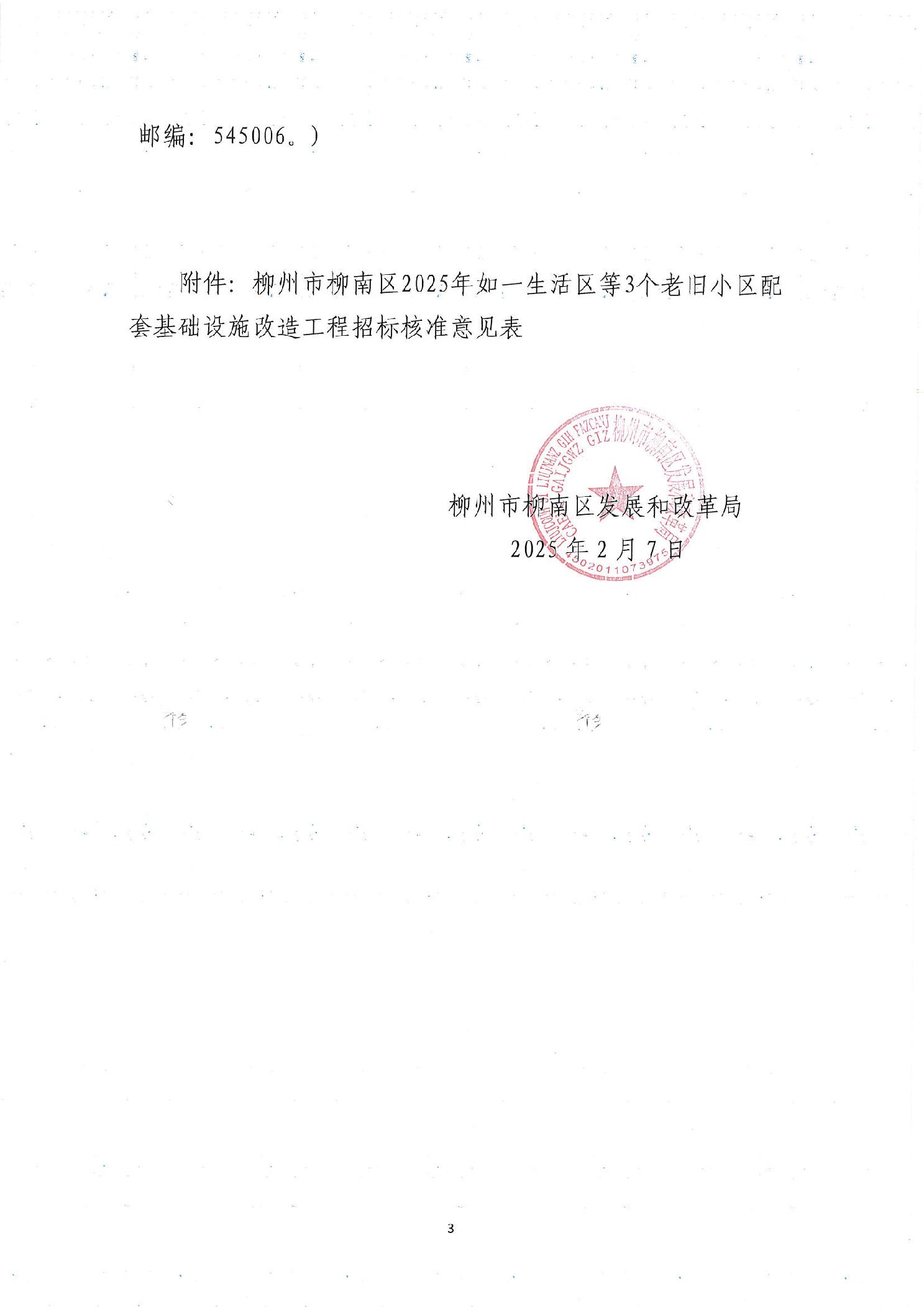 柳南发改规划〔2025〕6号关于柳州市柳南区2025年如一生活区等3个老旧小区配套基础设施改造工程可行性研究报告的批复