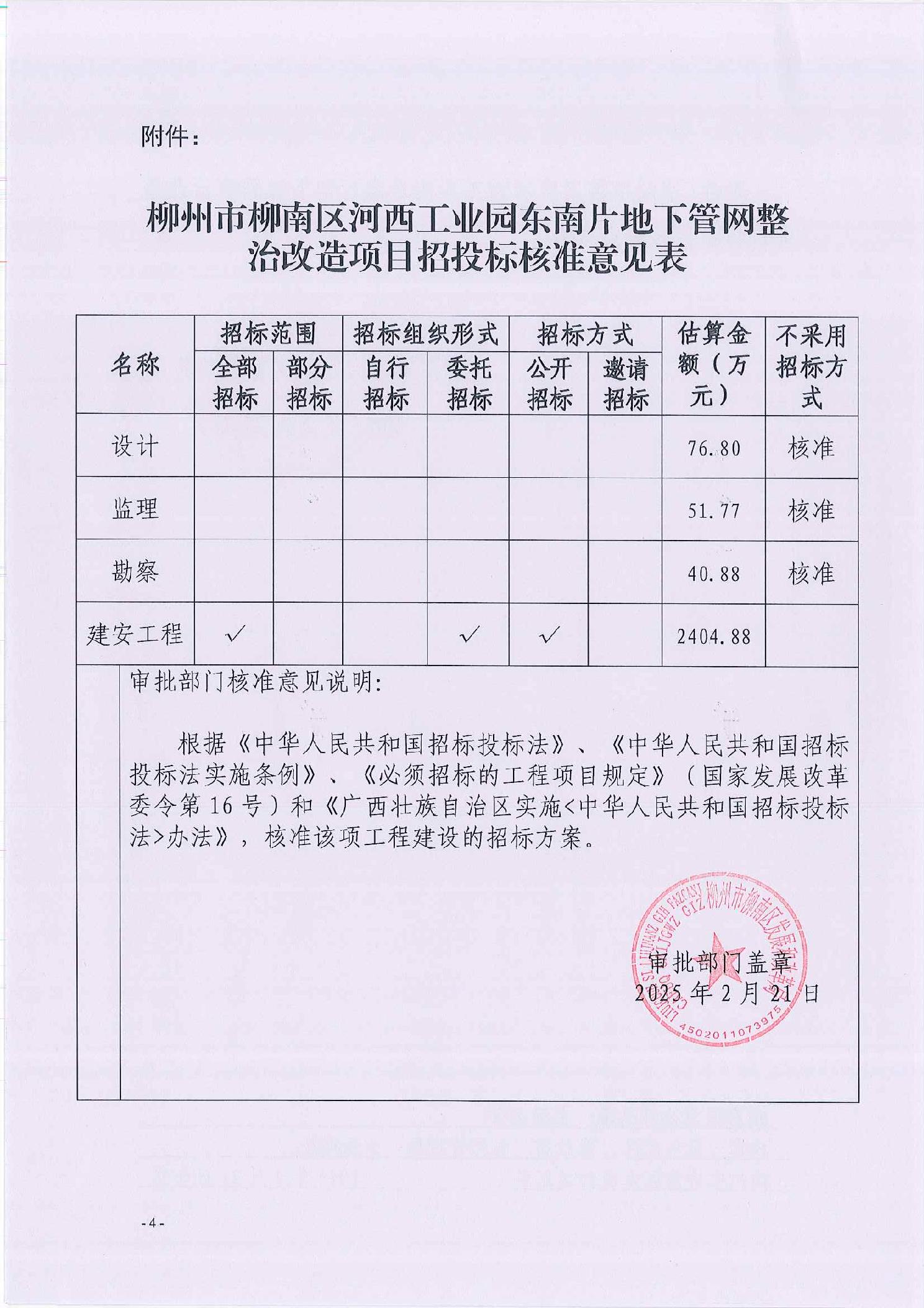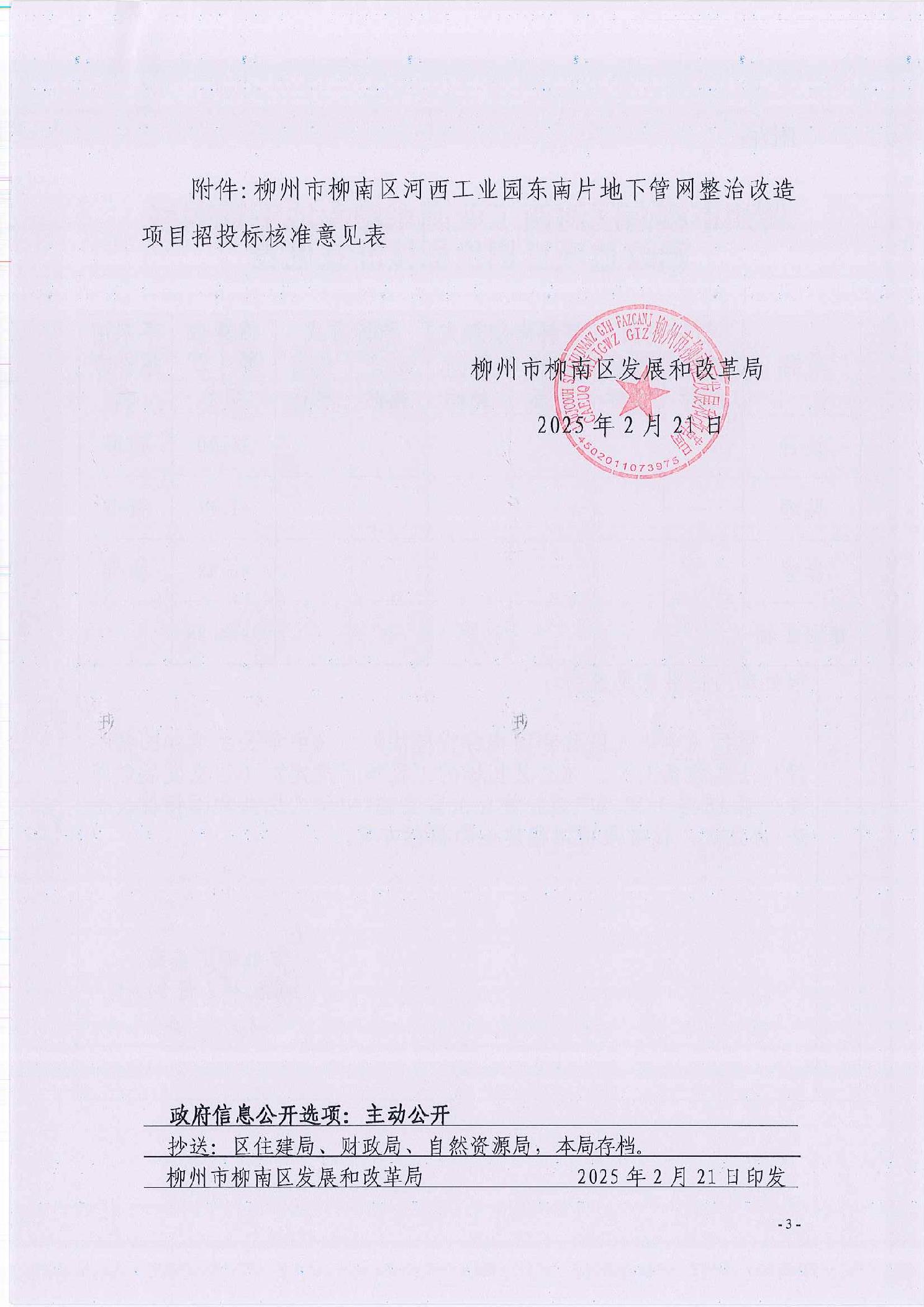 柳南发改规划[2025]12号关于柳州市柳南区河西工业园东南片地下管网整治改造项目可行性研究报告的批复