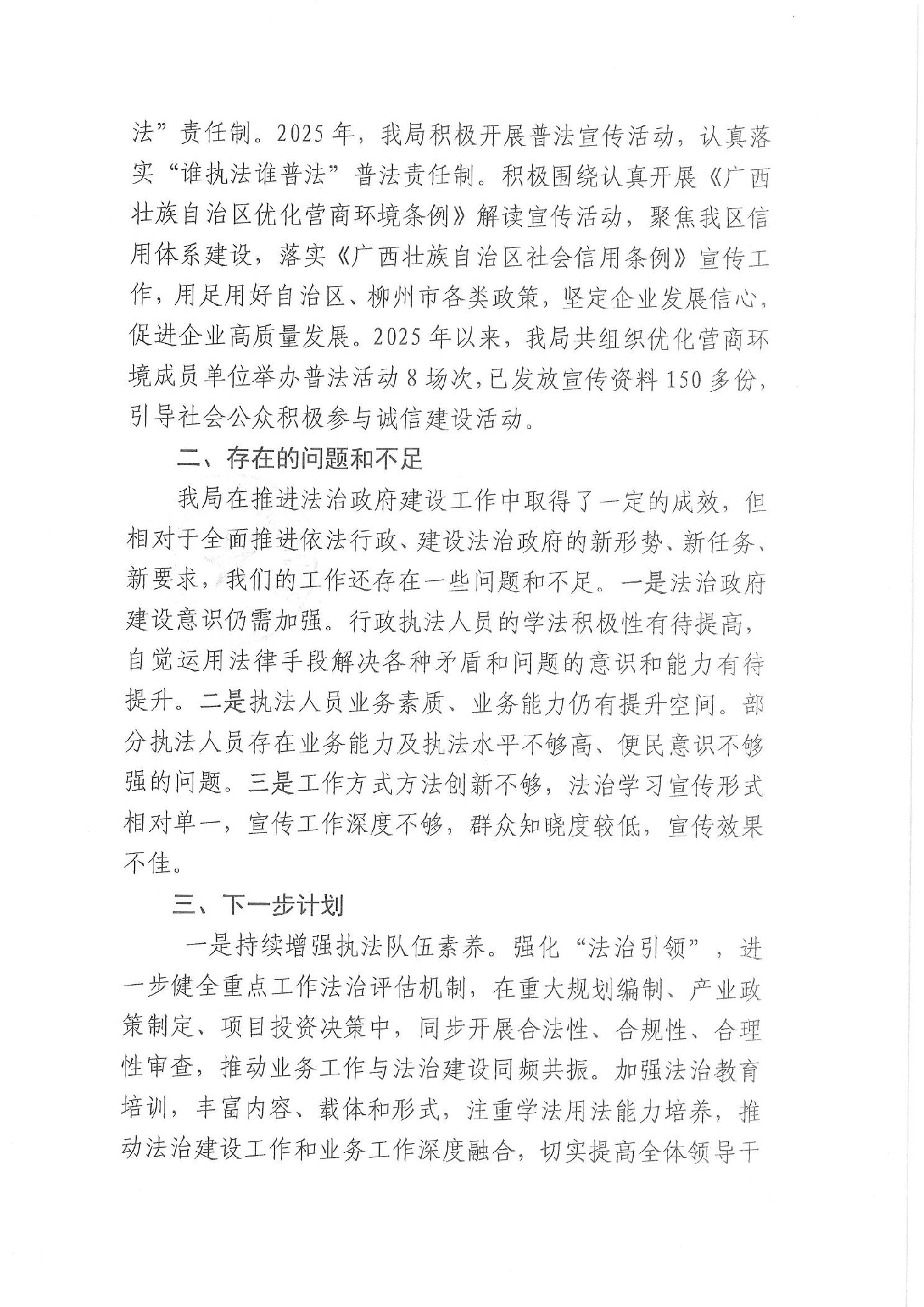 柳南区发改局2025年法治政府建设年度报告