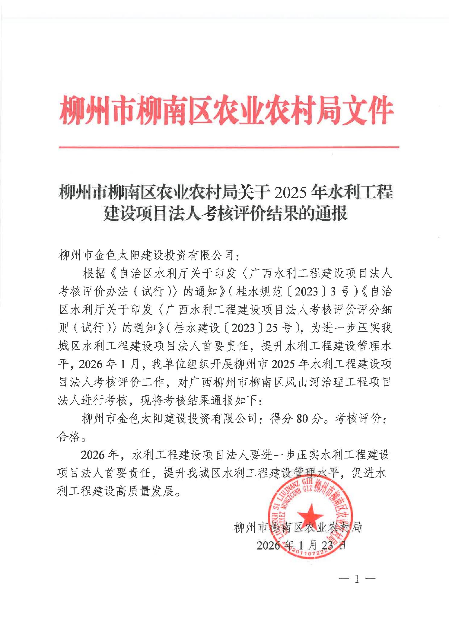 柳州市柳南区农业农村局关于2025年水利工程建设项目法人考核评价结果的通报